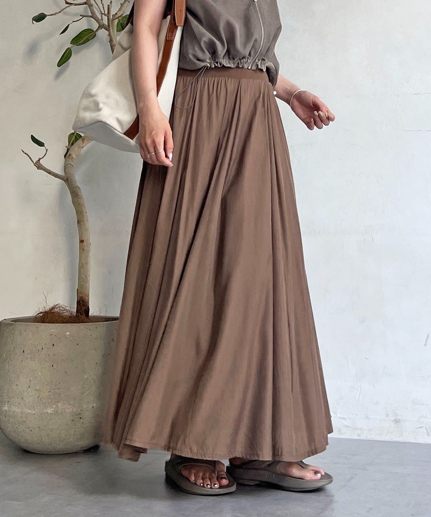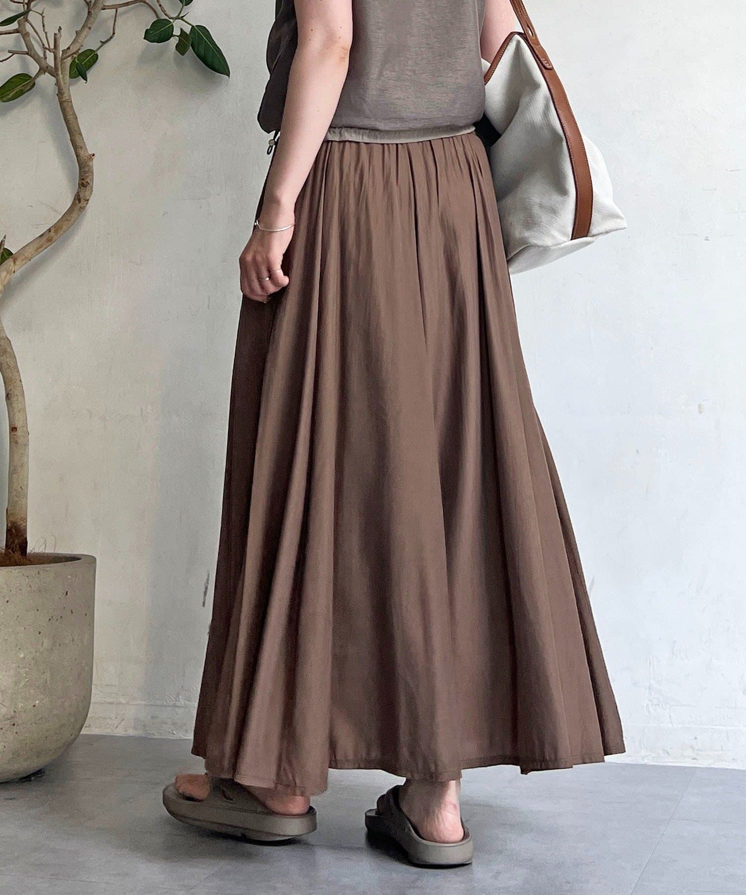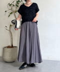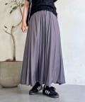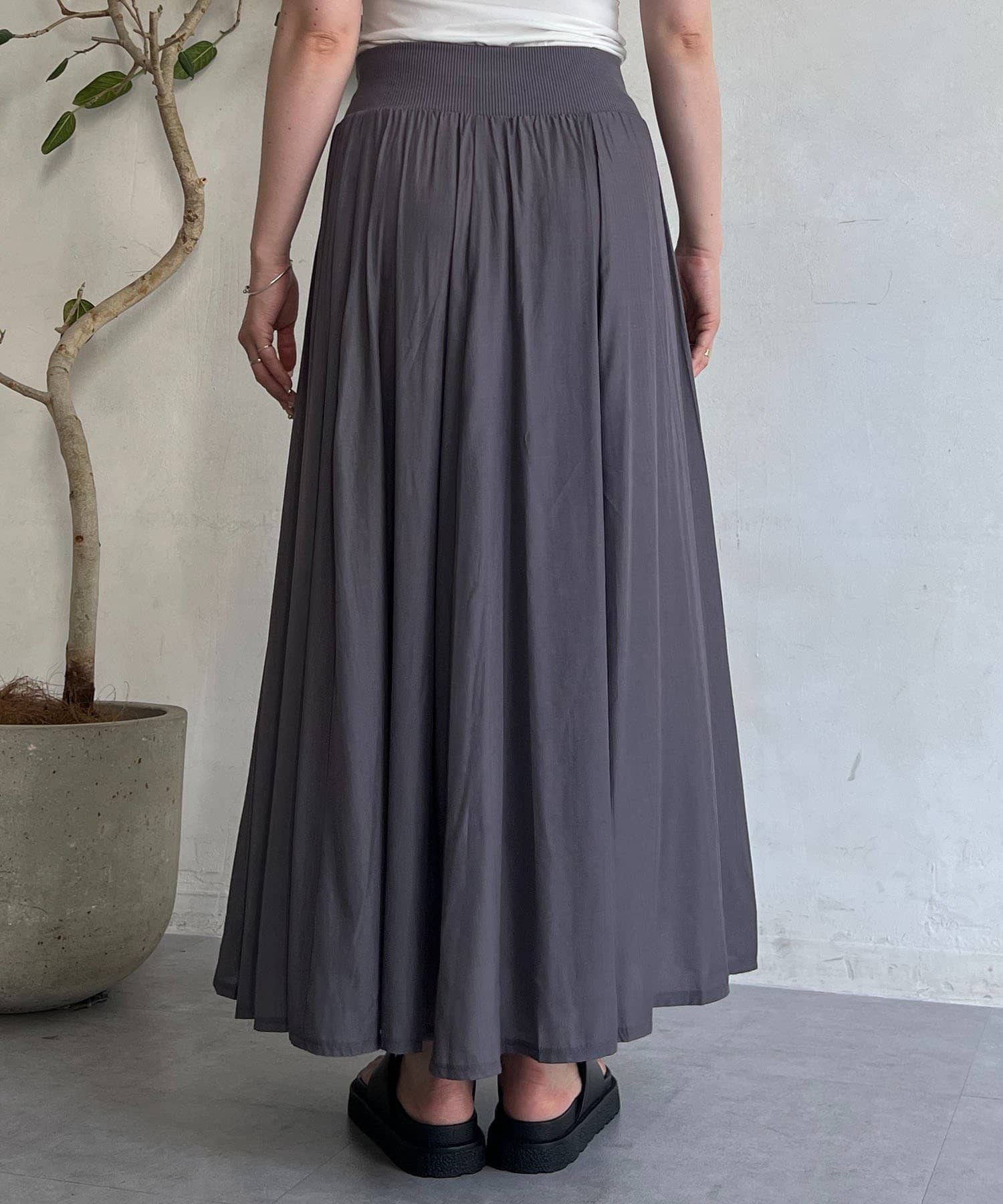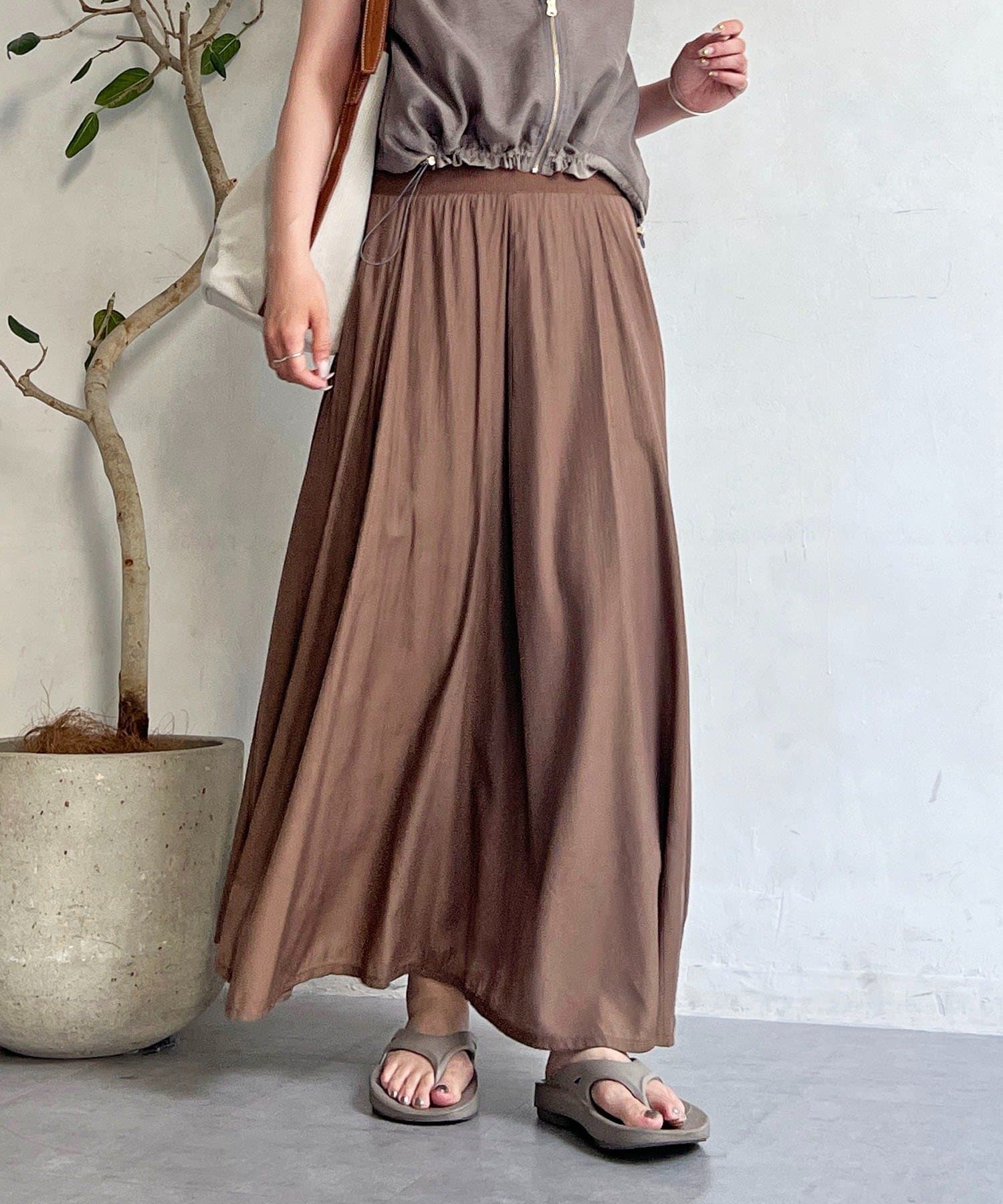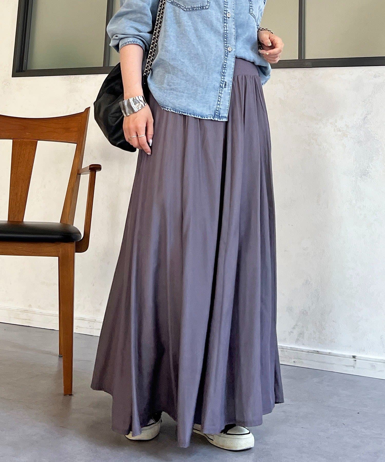 ・ほんのりツヤ感のある素材で作られたフレアスカート