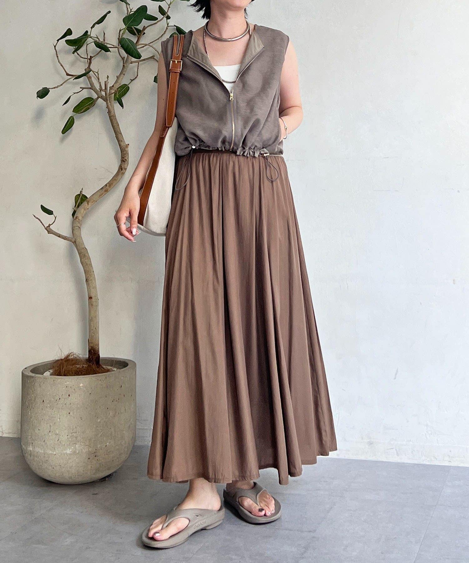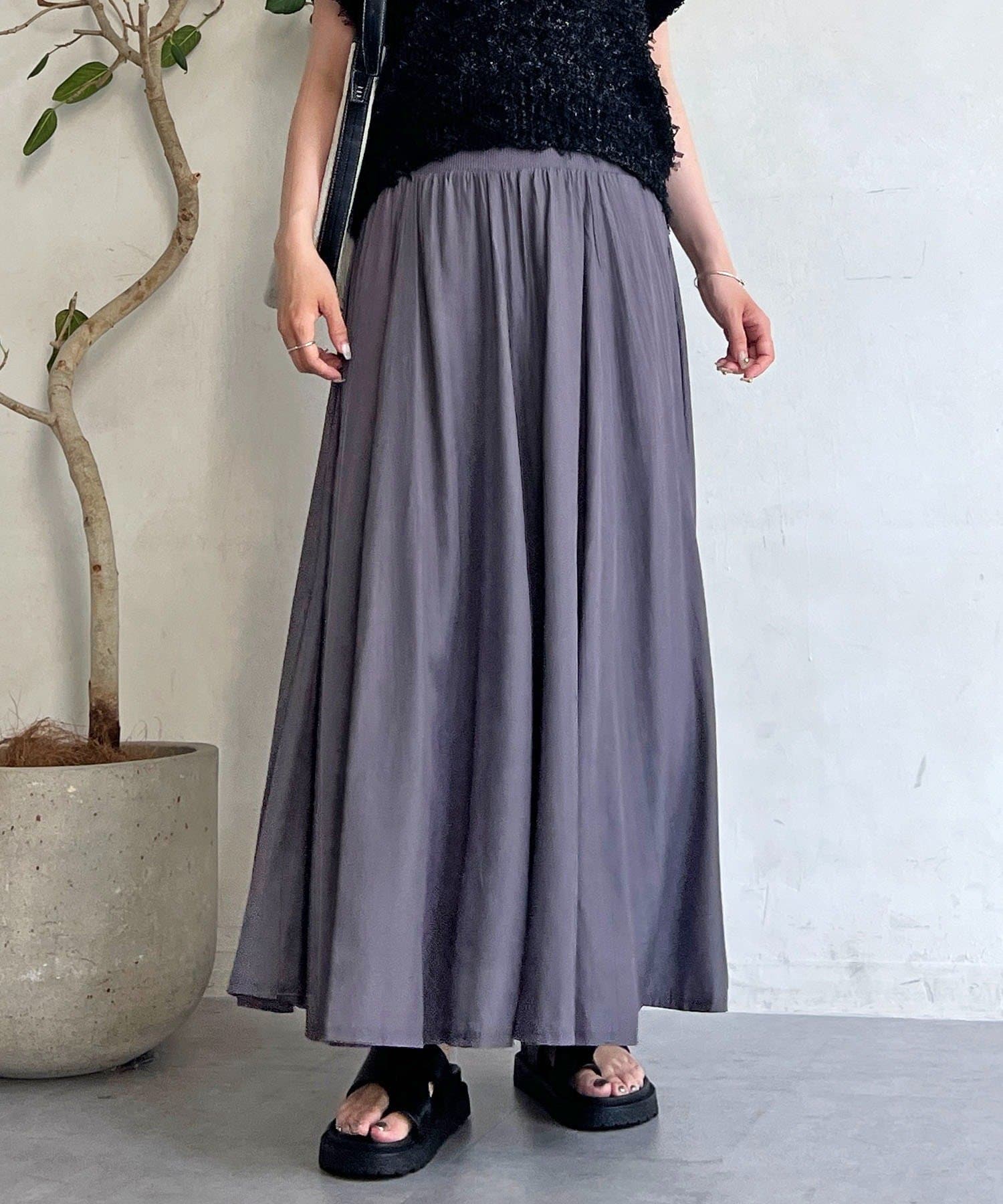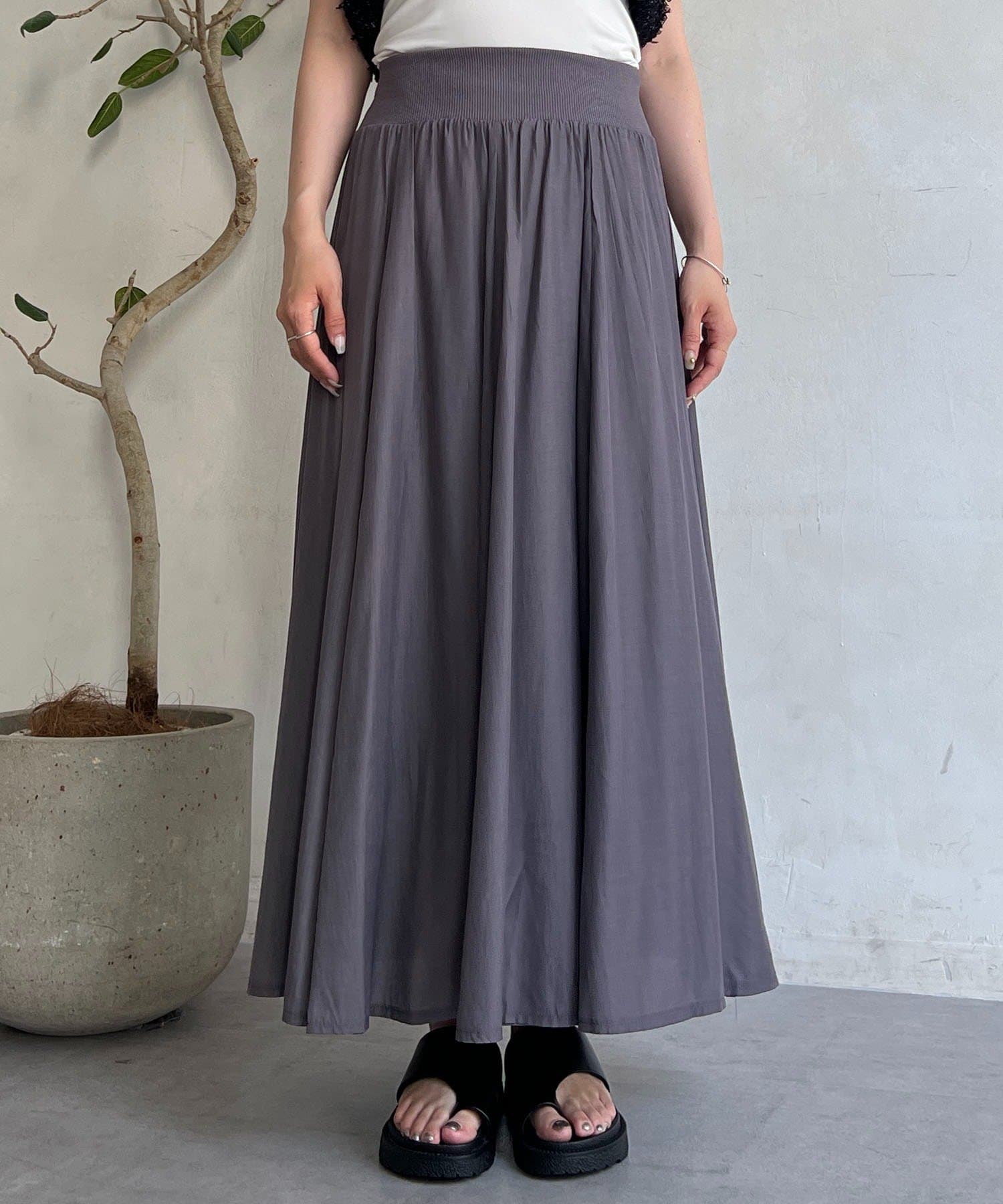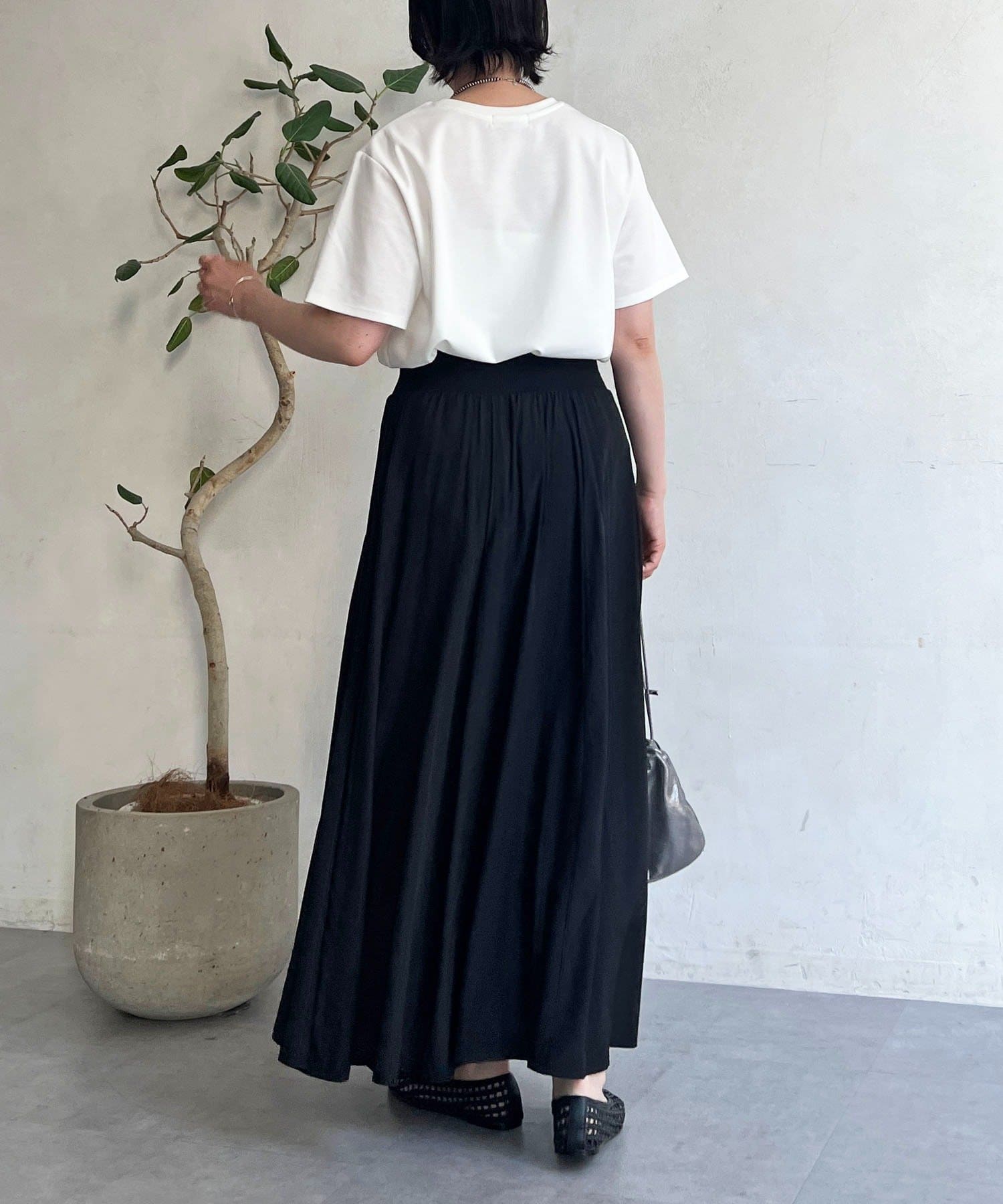 ・ほんのりツヤ感のある素材で作られたフレアスカート