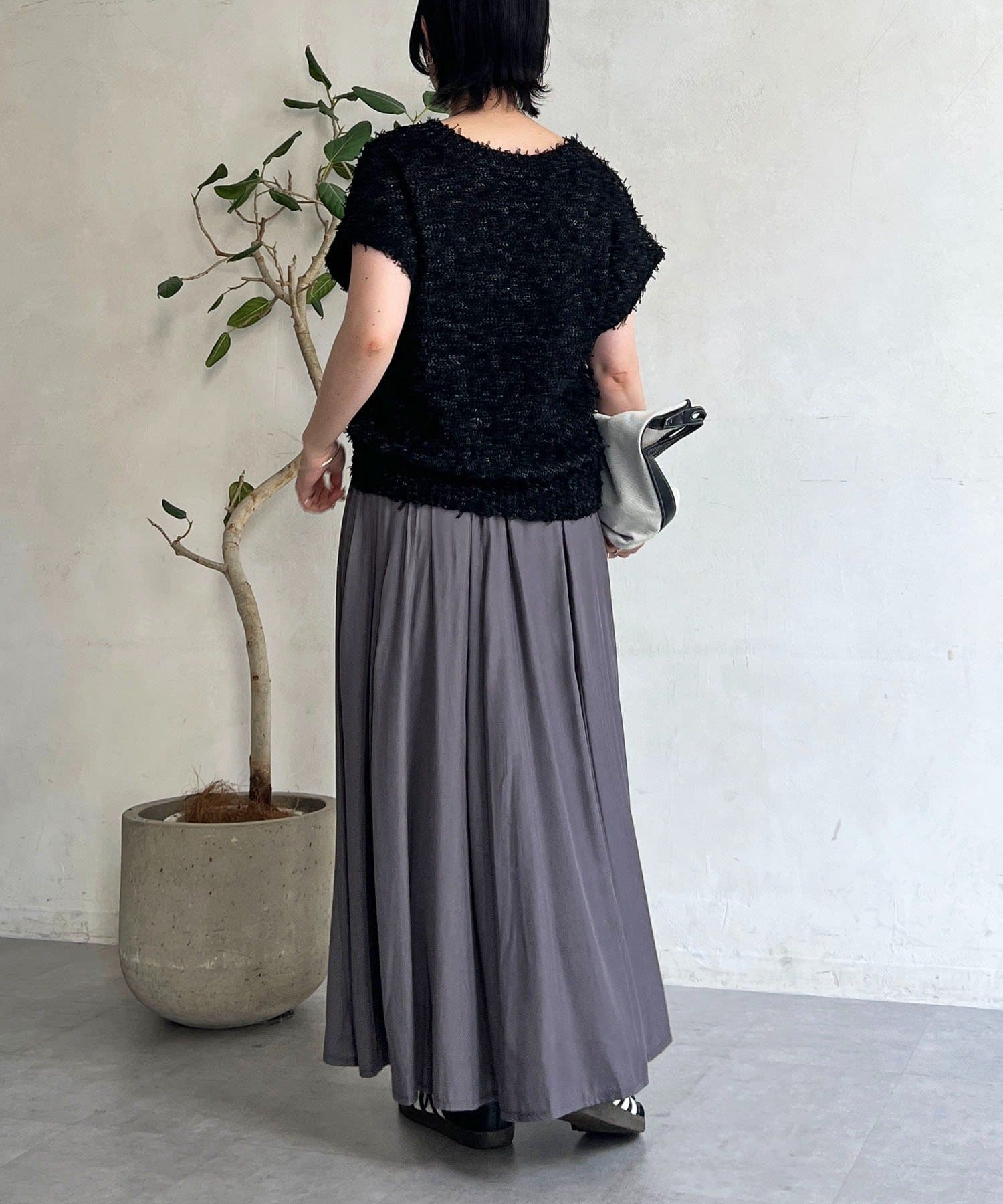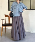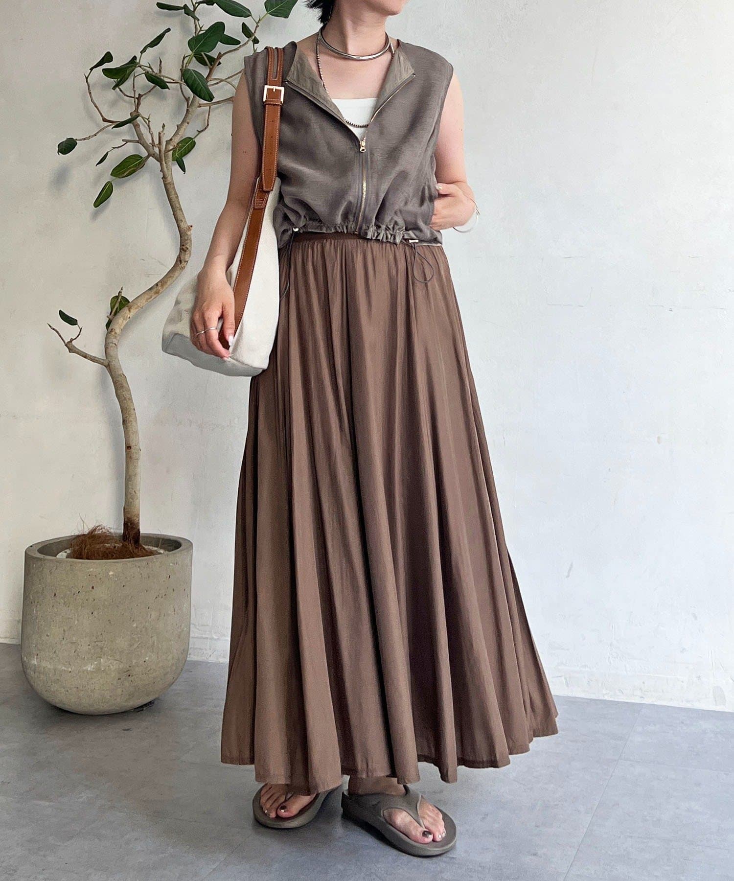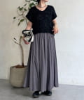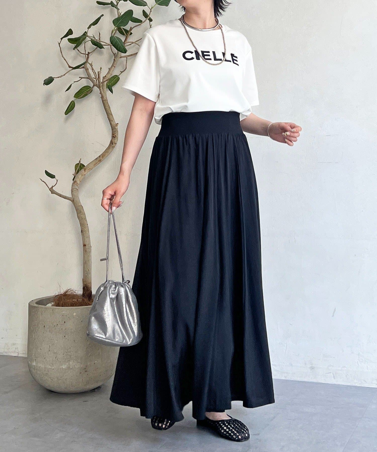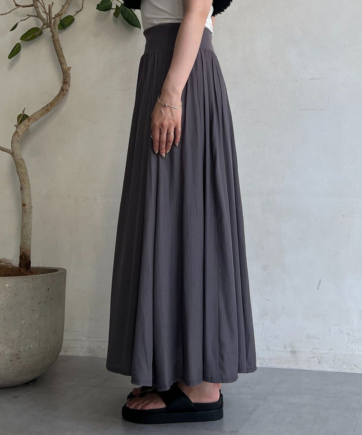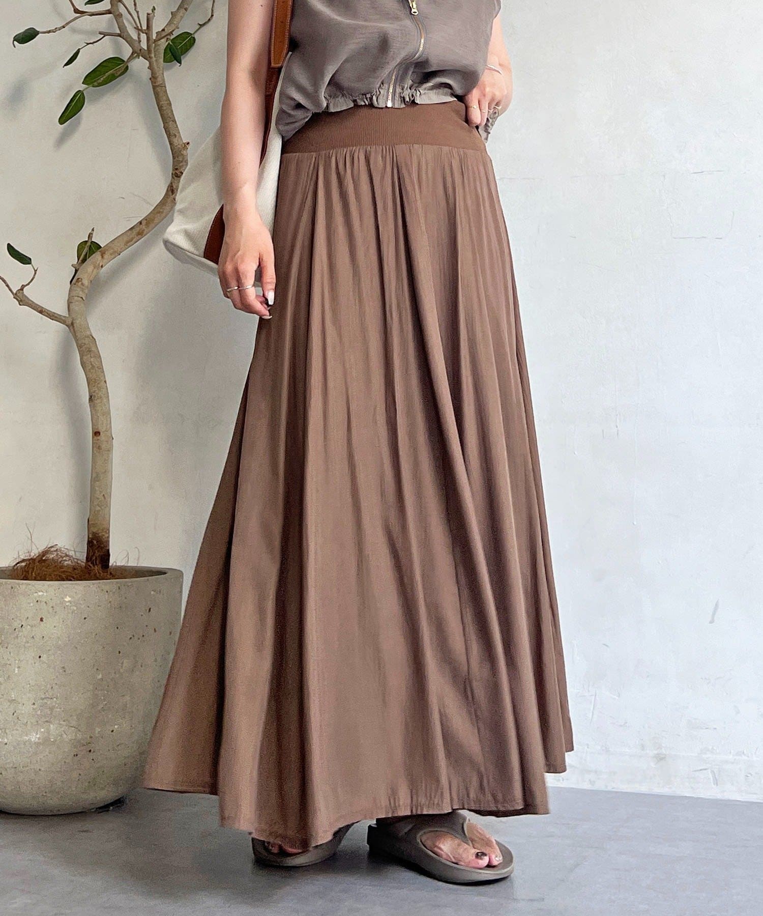 ・ほんのりツヤ感のある素材で作られたフレアスカート