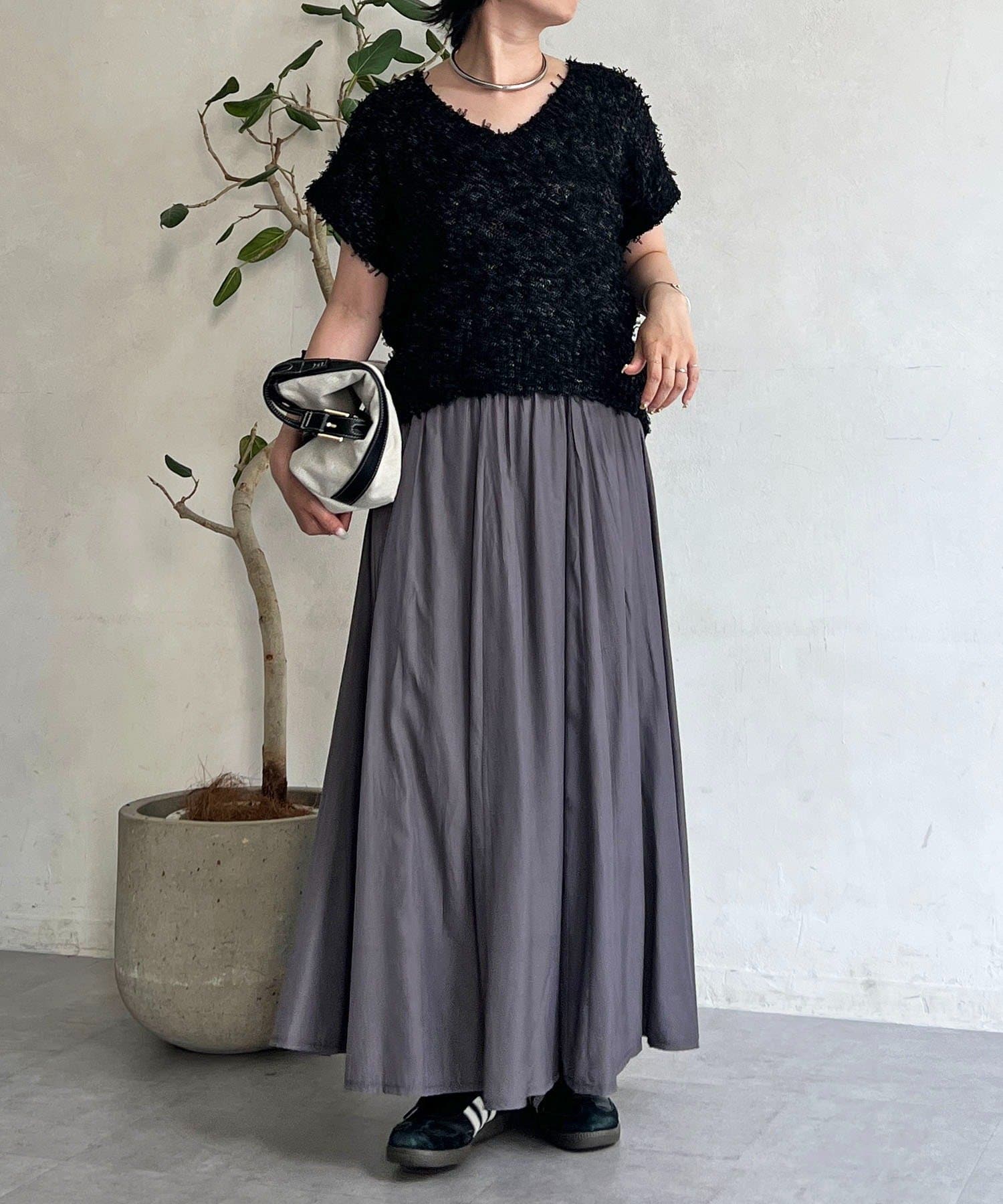 ・フレアに広がるデザインでフェミニンに合わせられる◎