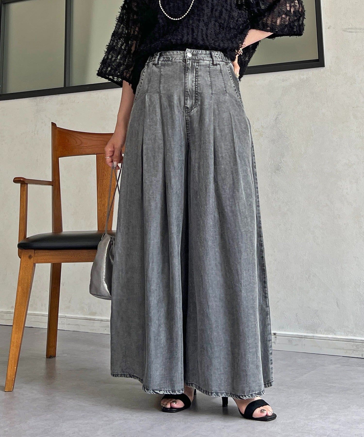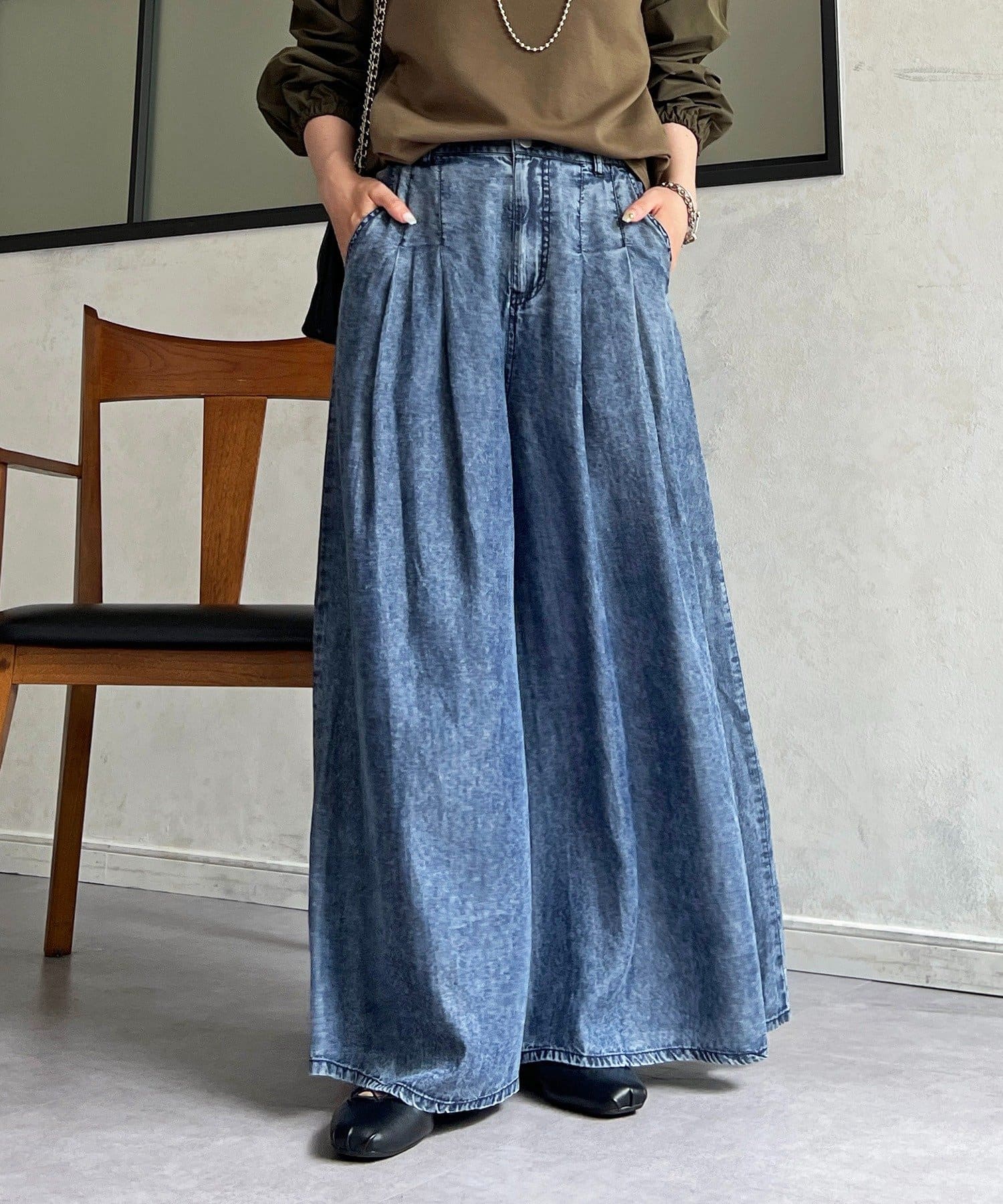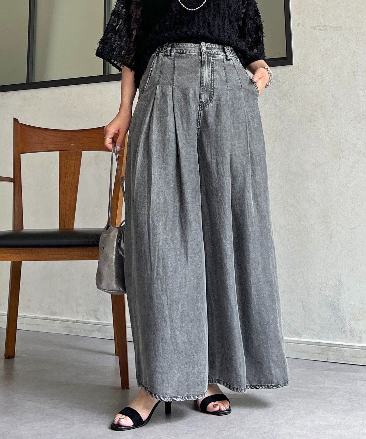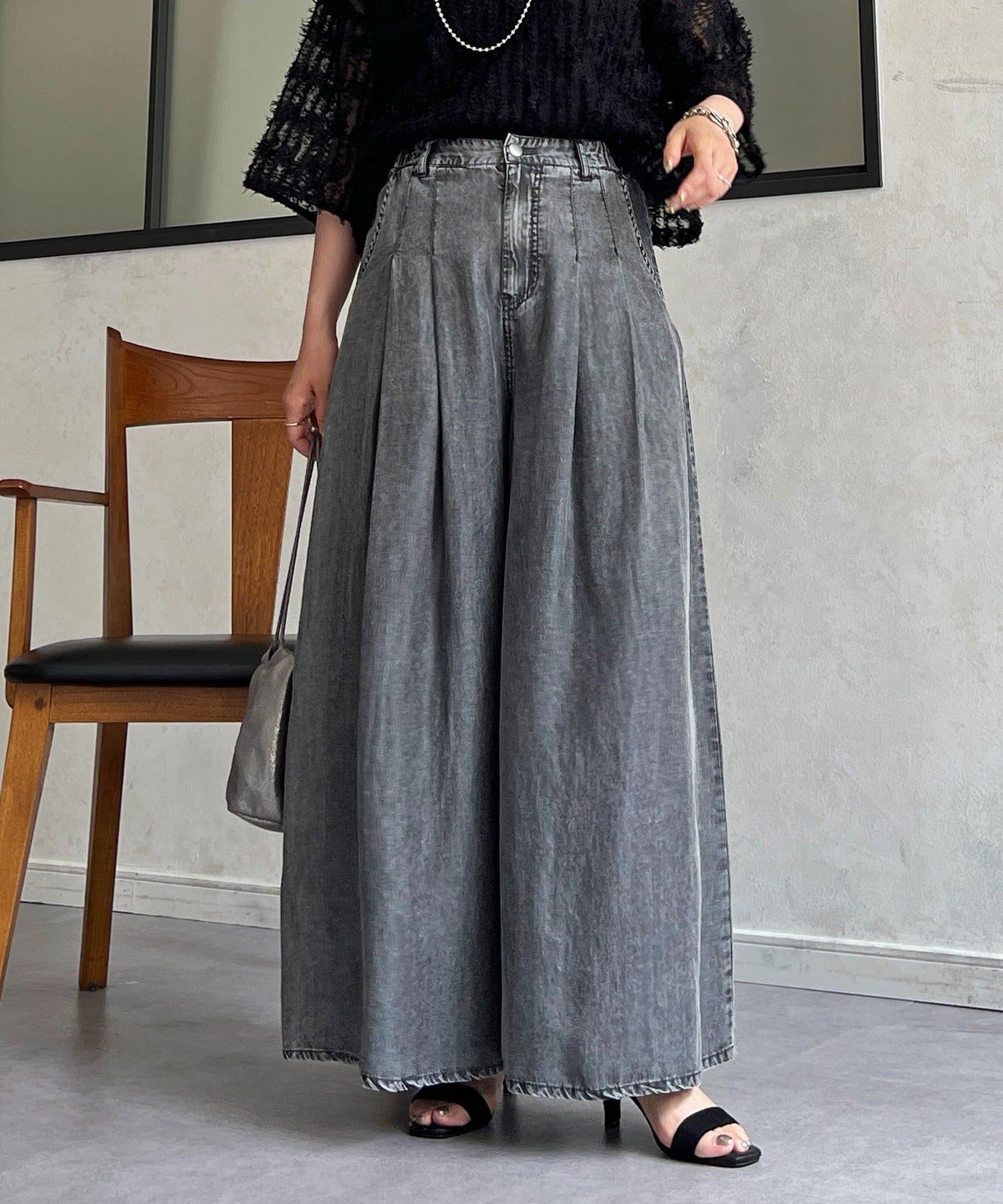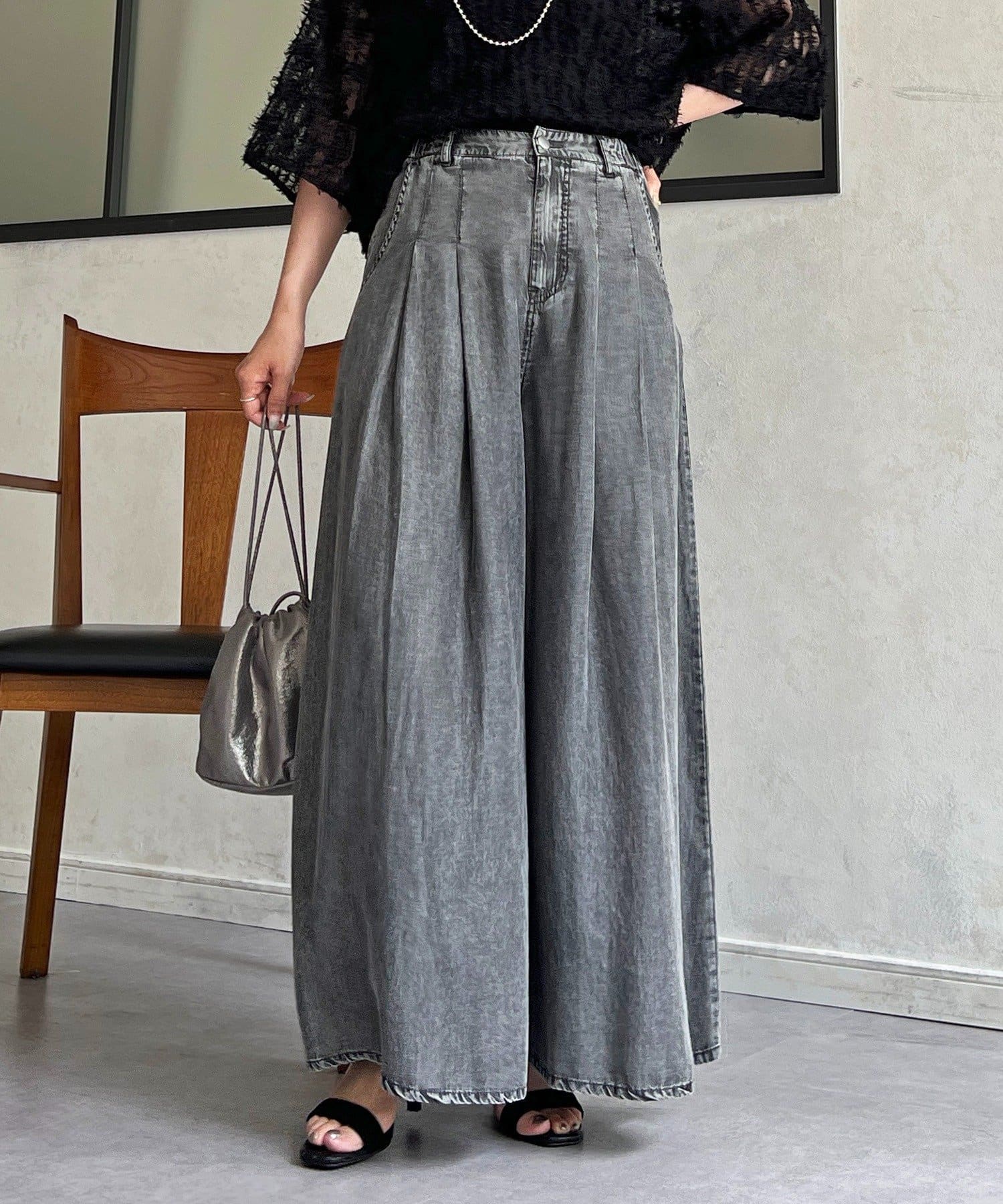 ・フロントタックで立体感を出した、ワイドシルエットパンツは履くだけで着映え◎