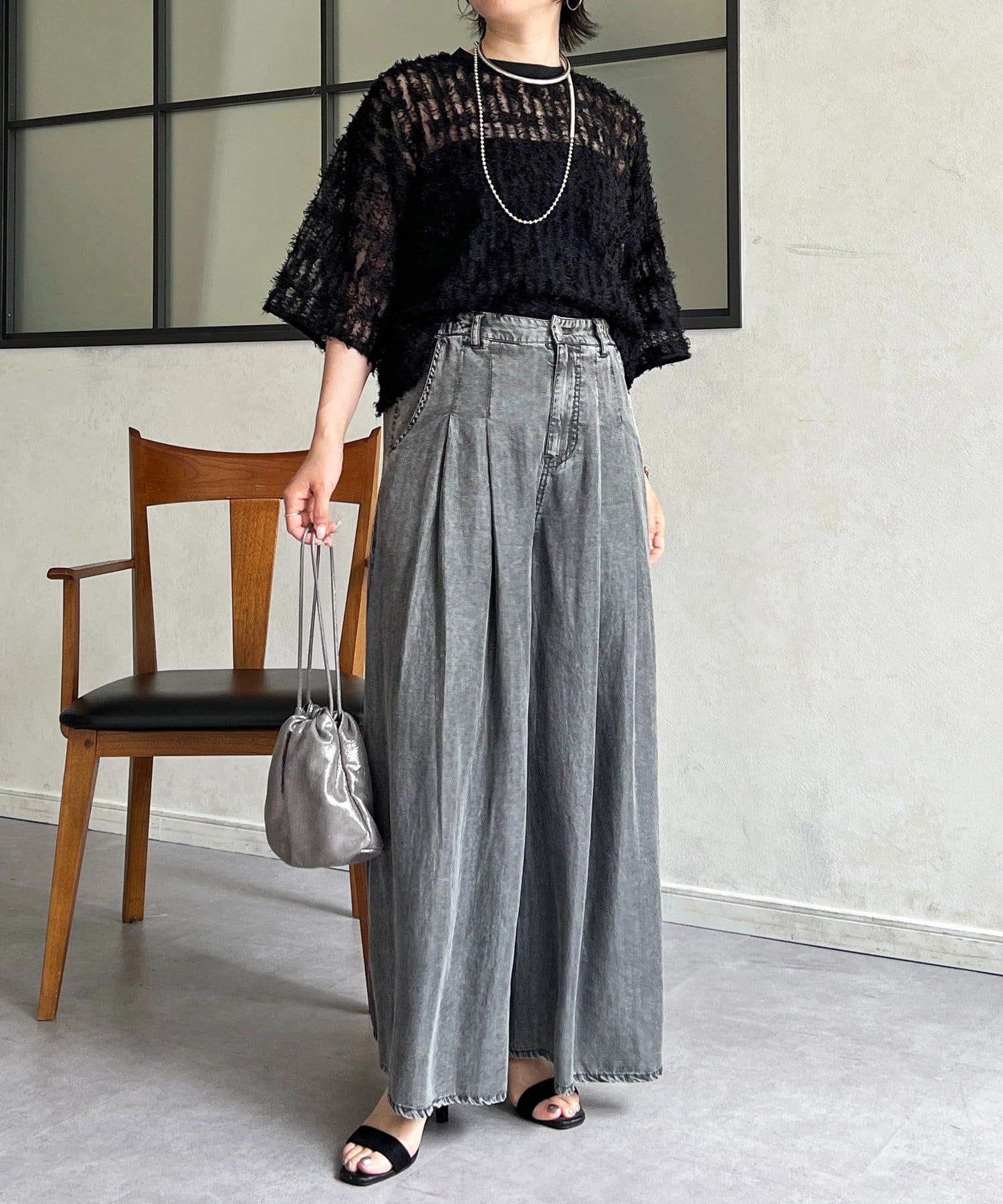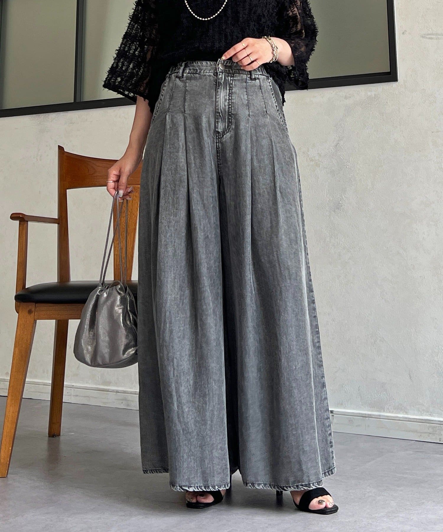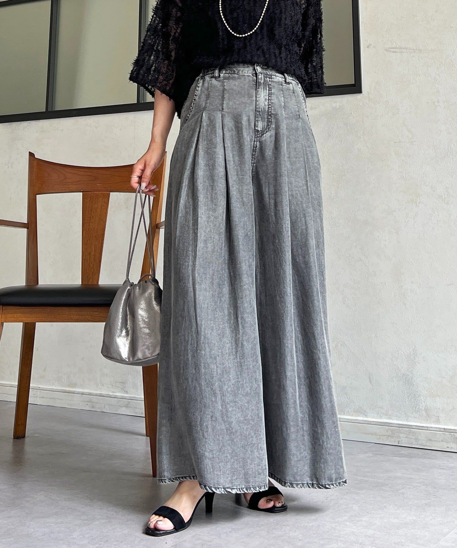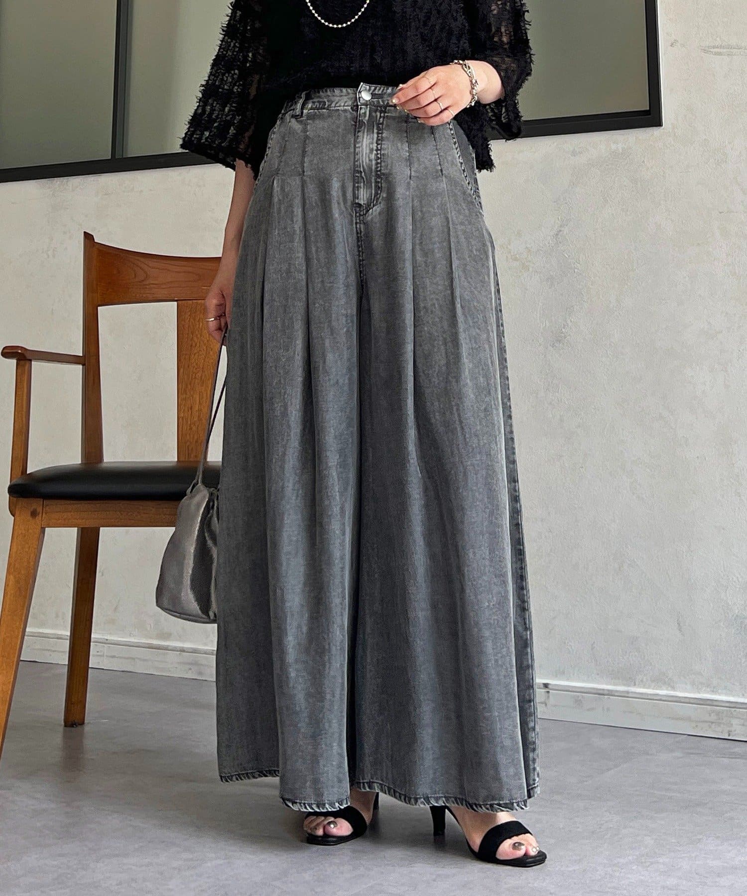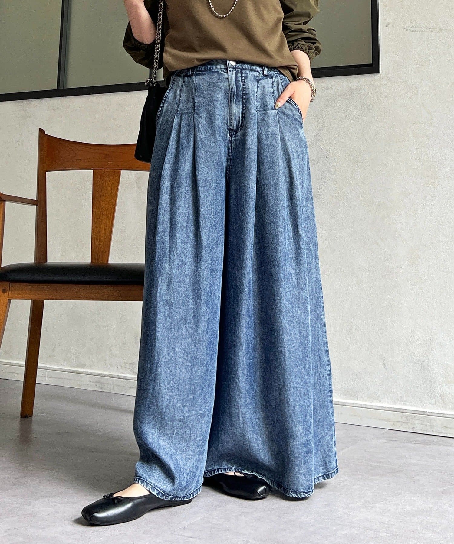 ・フロントタックで立体感を出した、ワイドシルエットパンツは履くだけで着映え◎