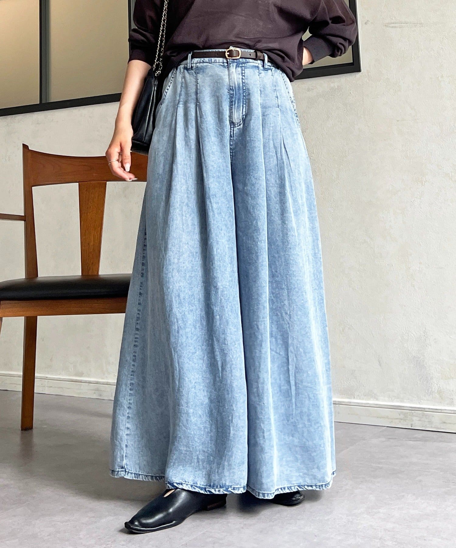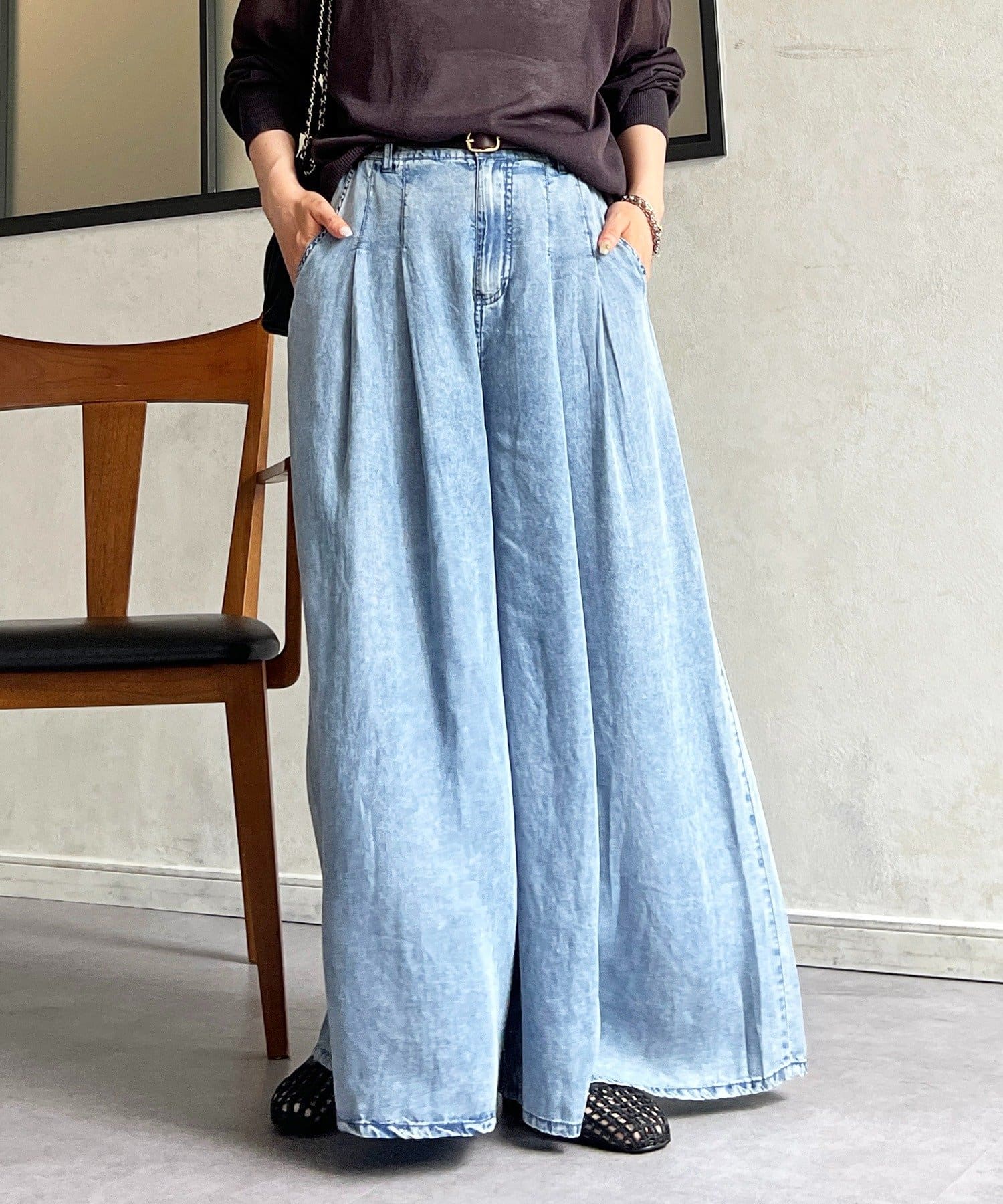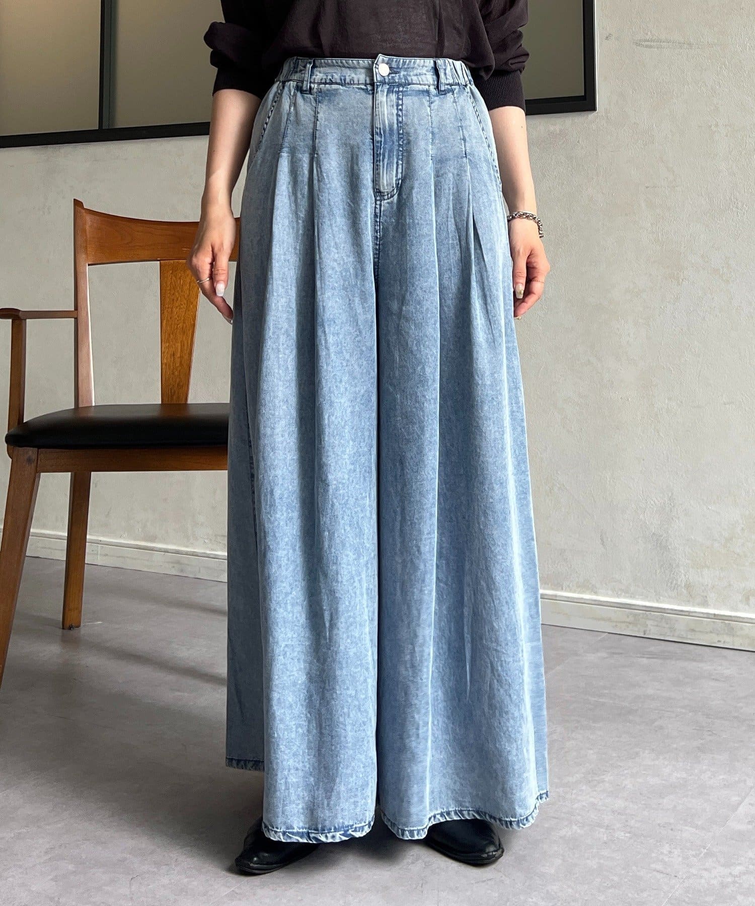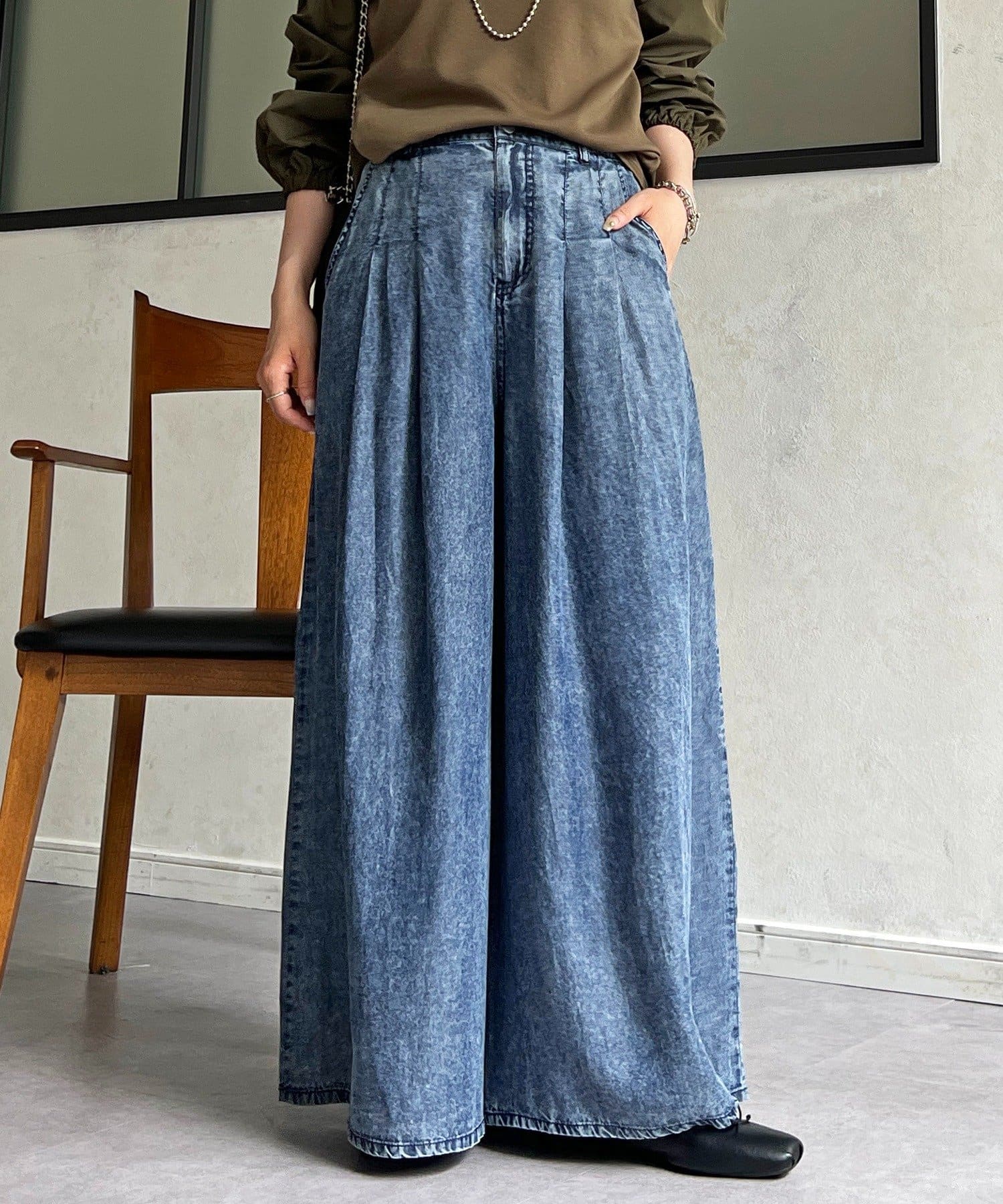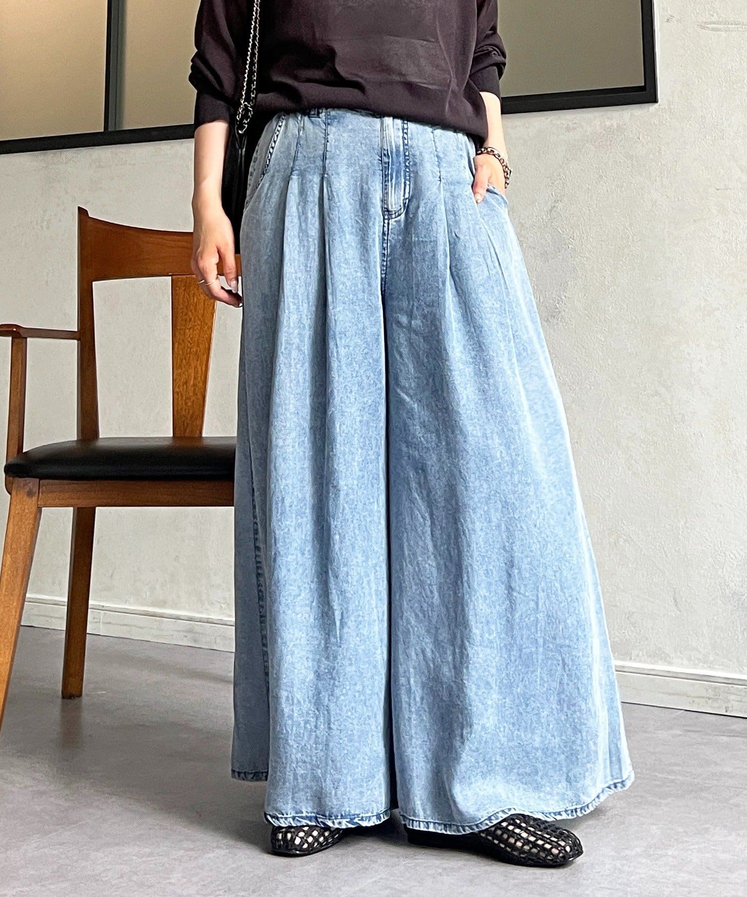 ・フロントタックで立体感を出した、ワイドシルエットパンツは履くだけで着映え◎