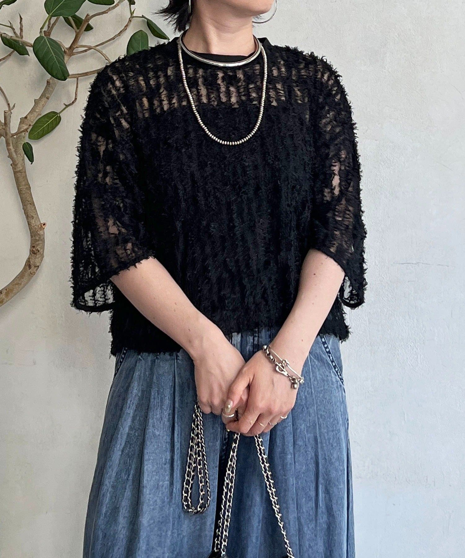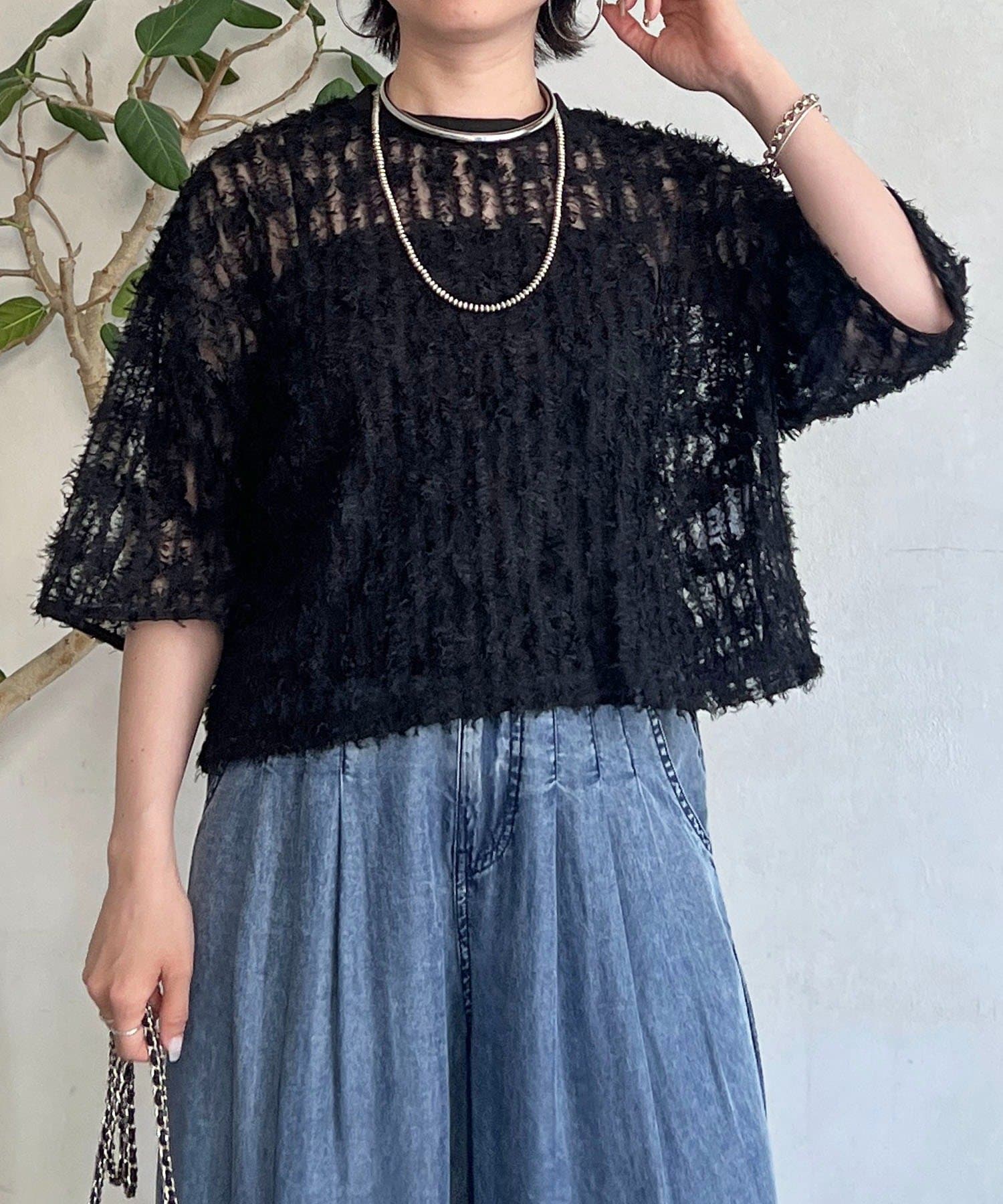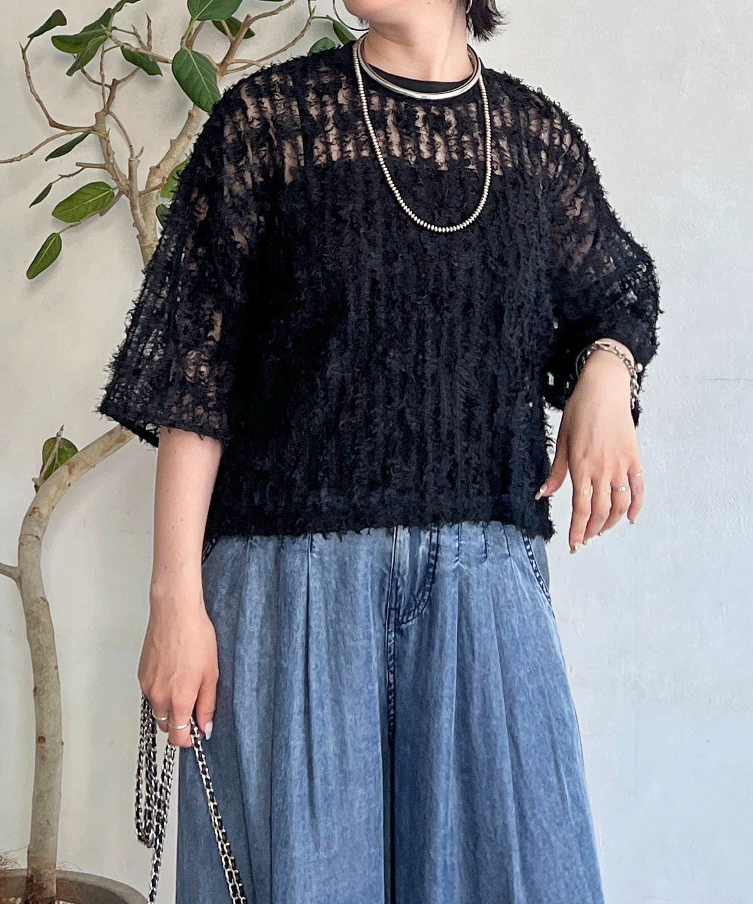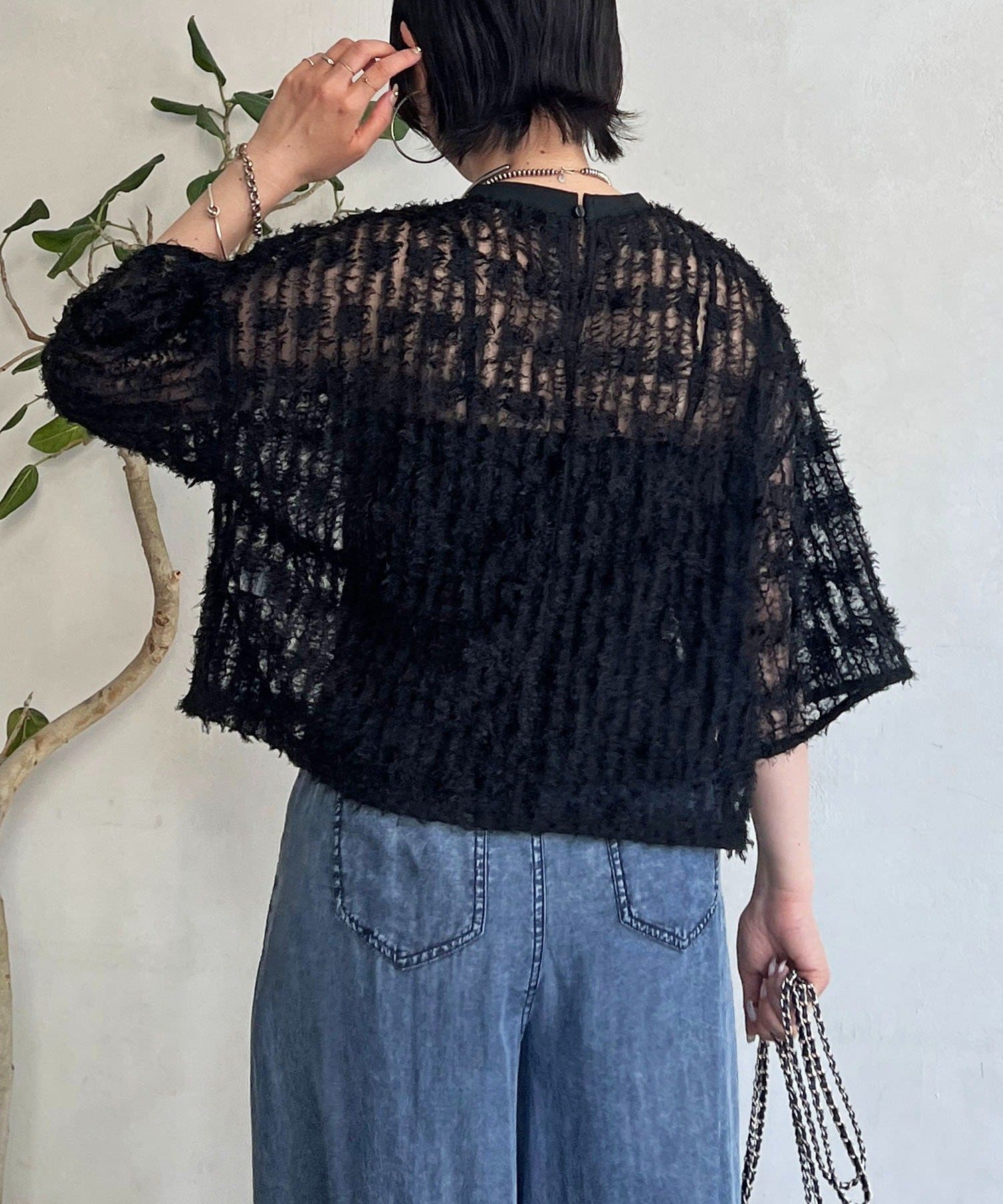 抜け感とトレンド感あふれるシアーフリンジトップス