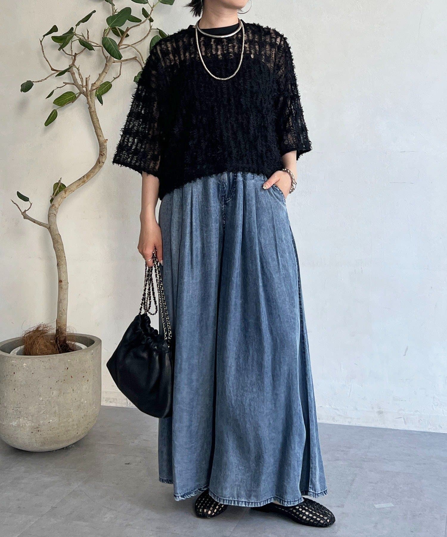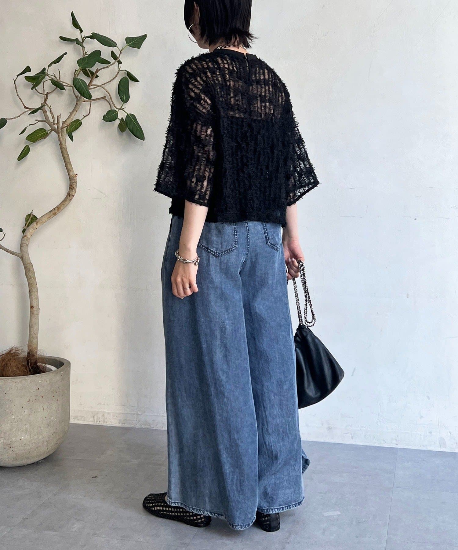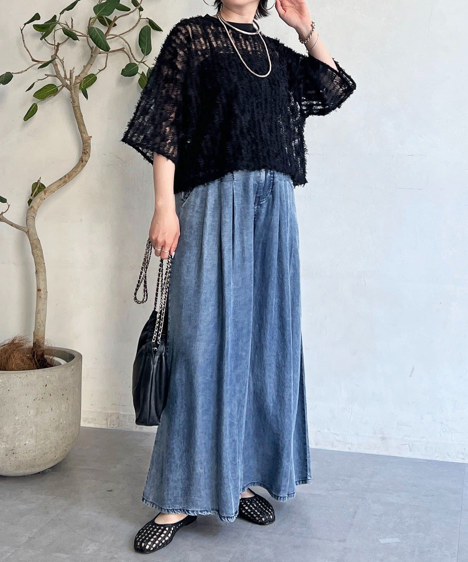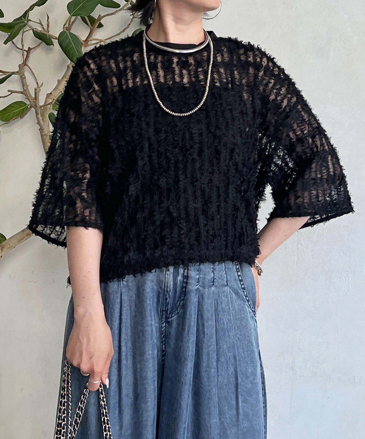 抜け感とトレンド感あふれるシアーフリンジトップス