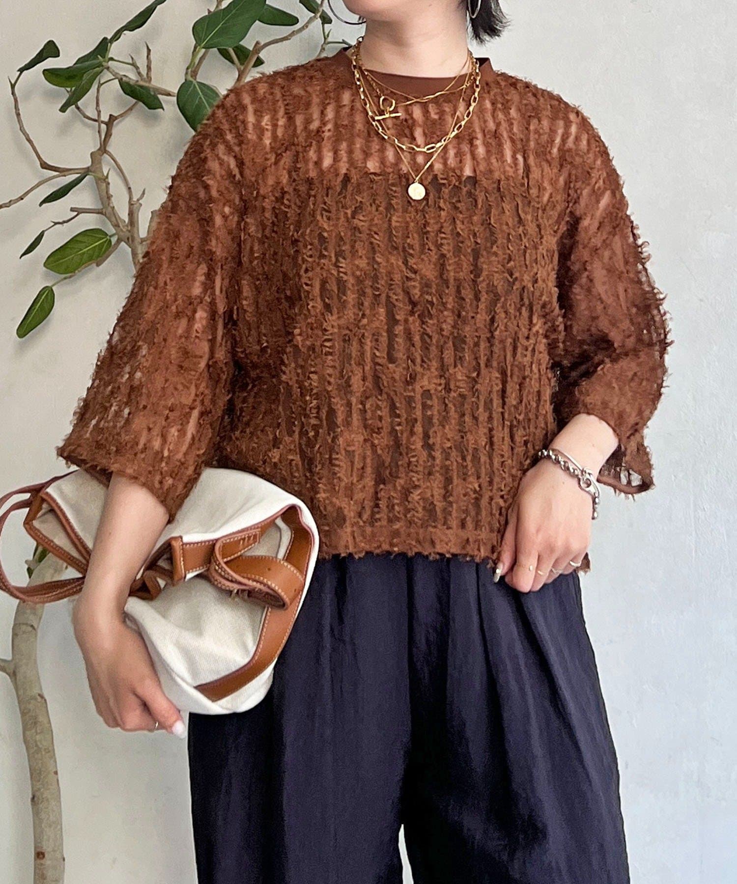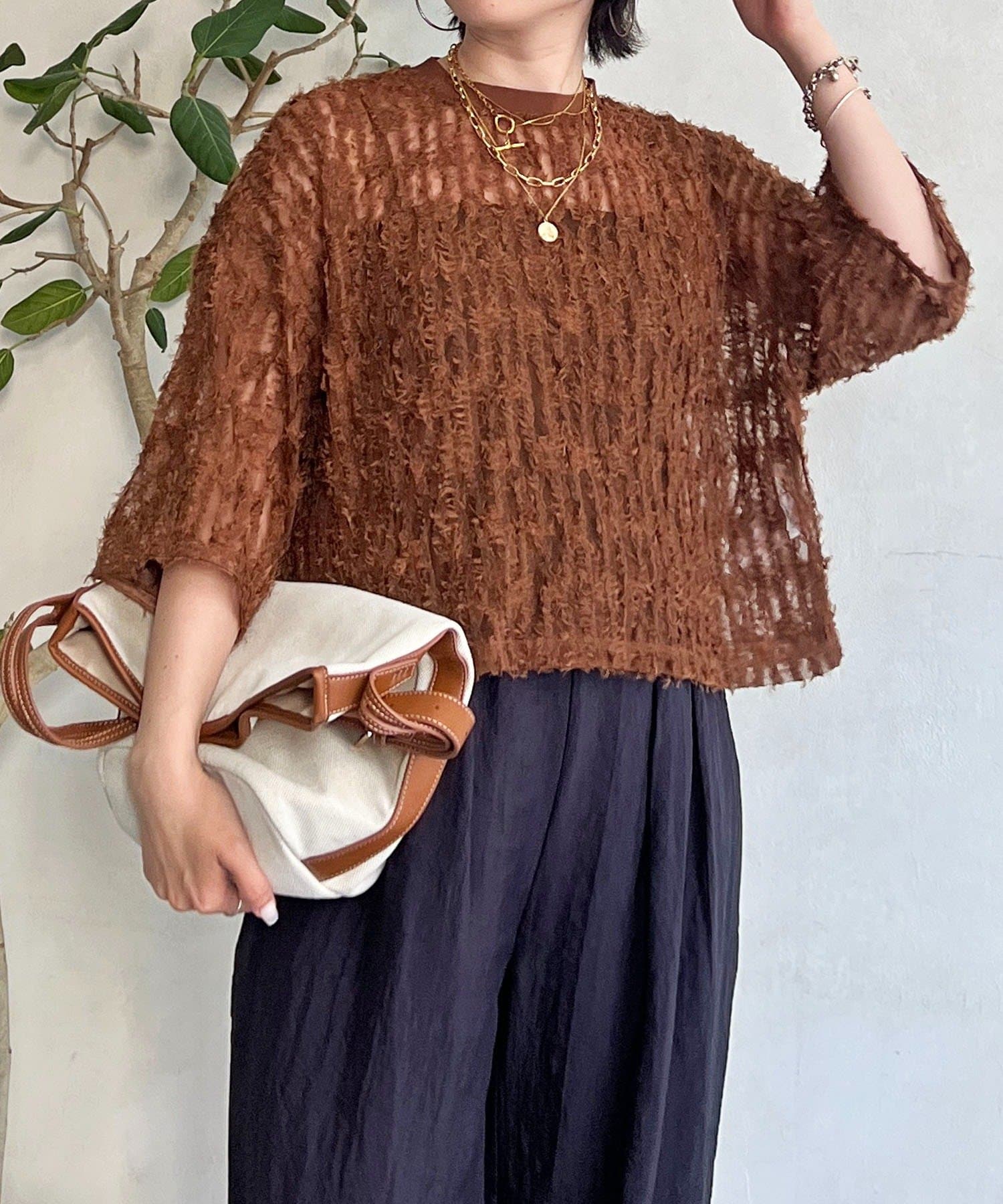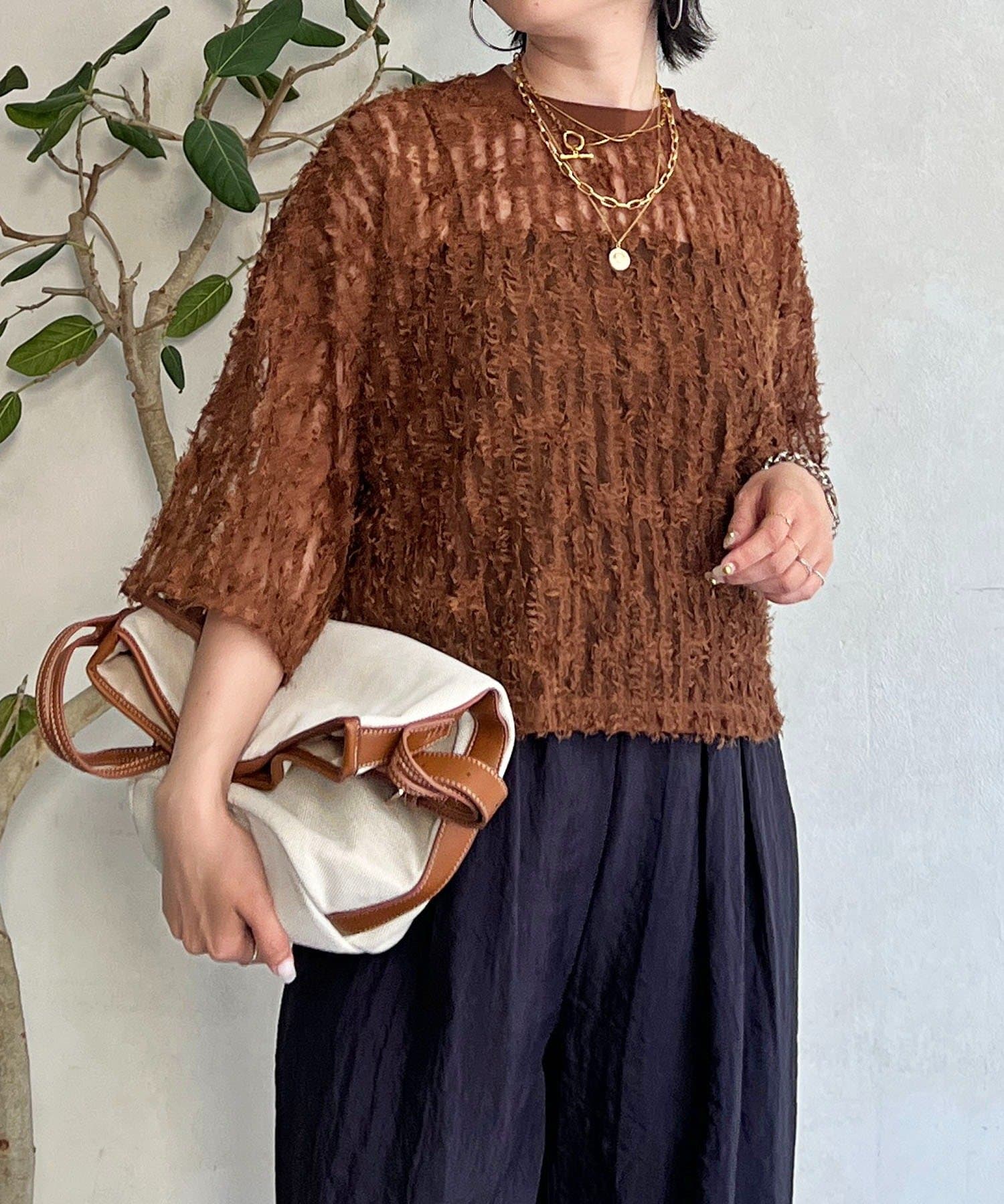 ・シアーな透け感で女性らしさもあり、インナーでレイヤードスタイルも楽しめる