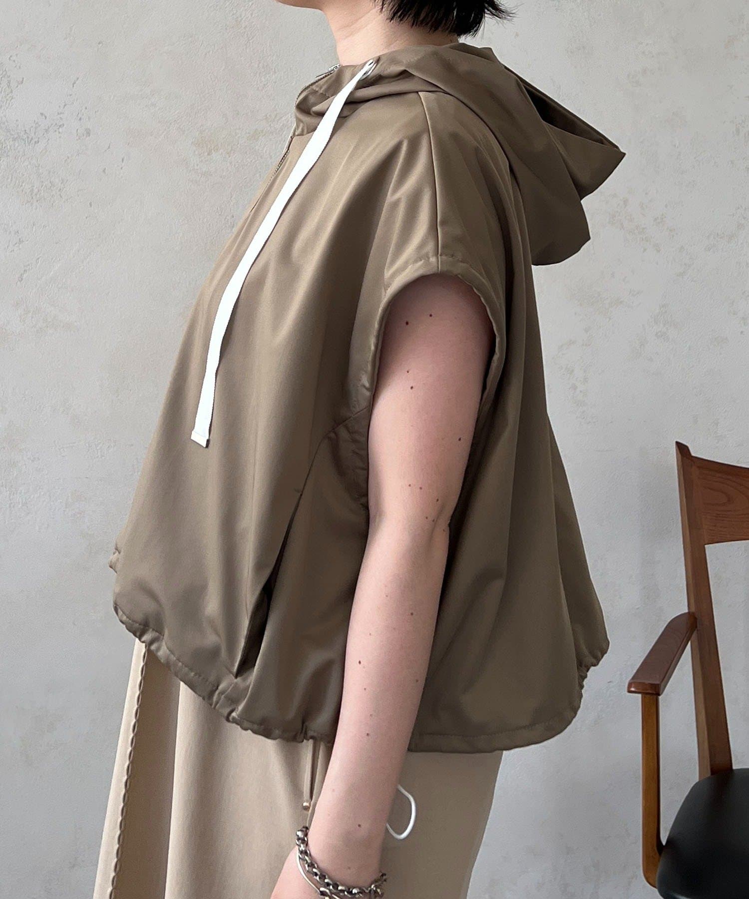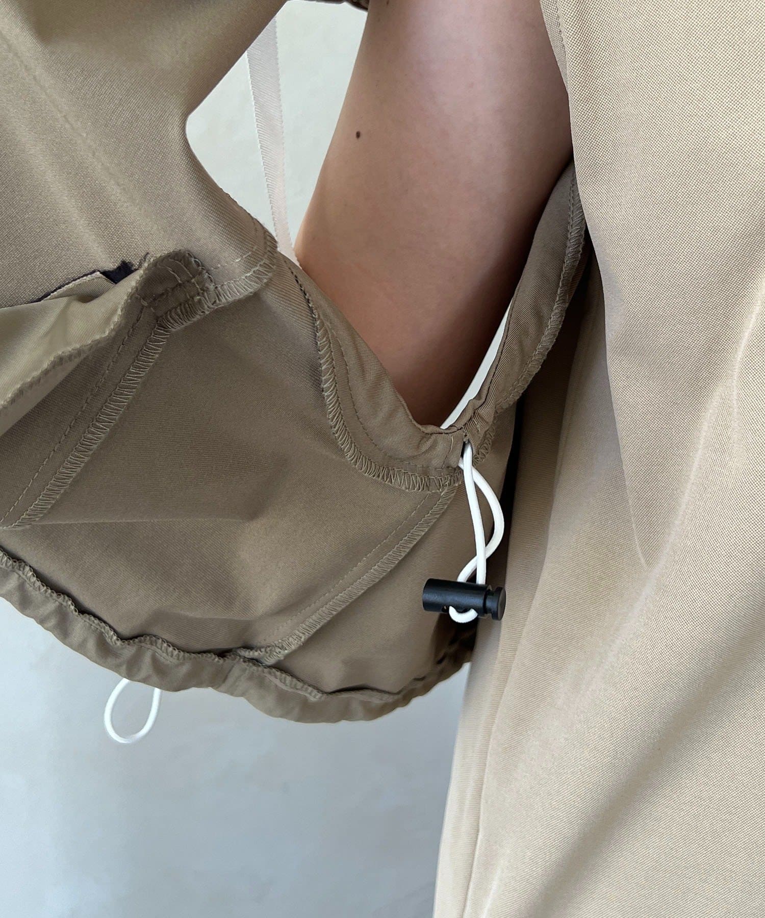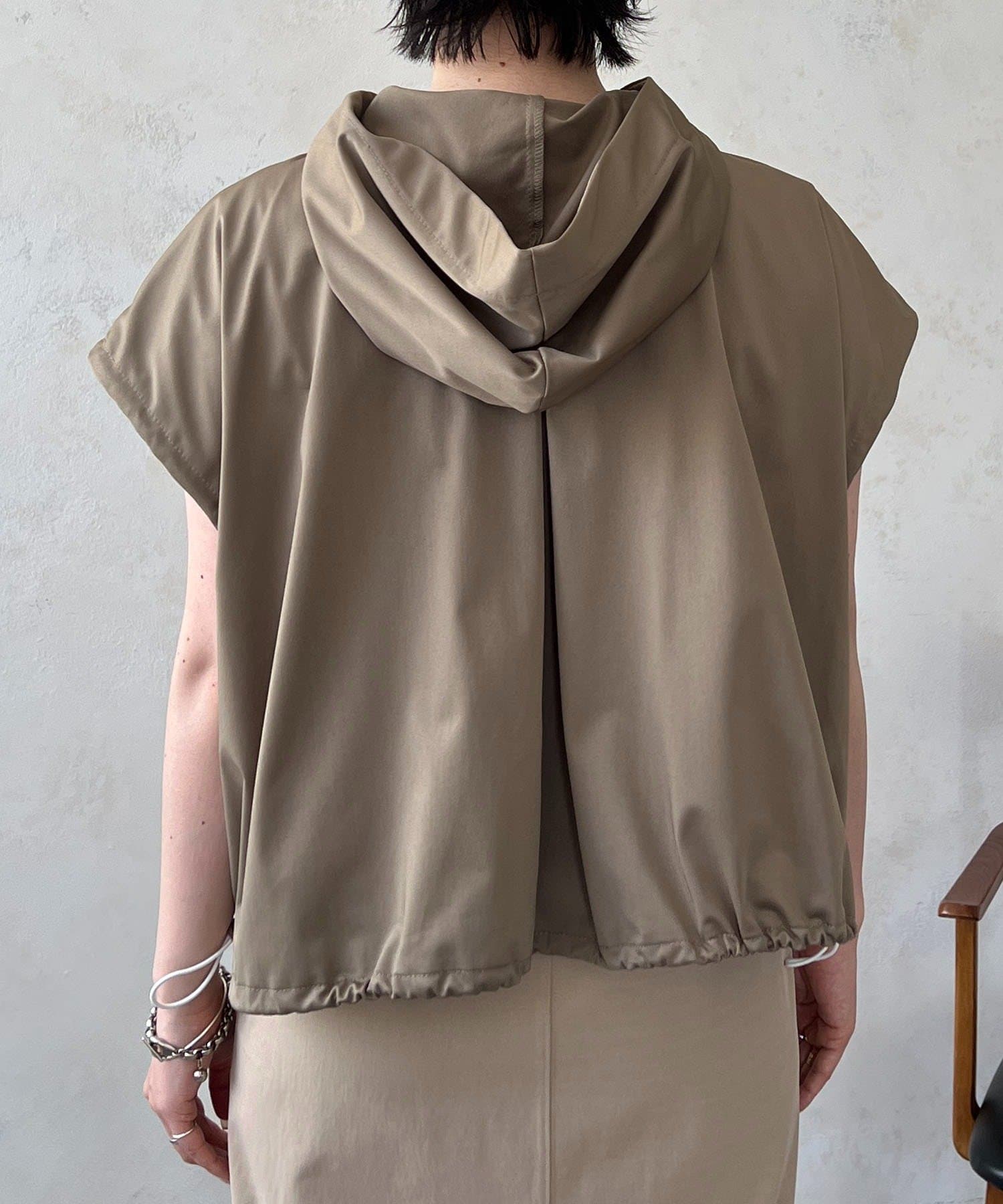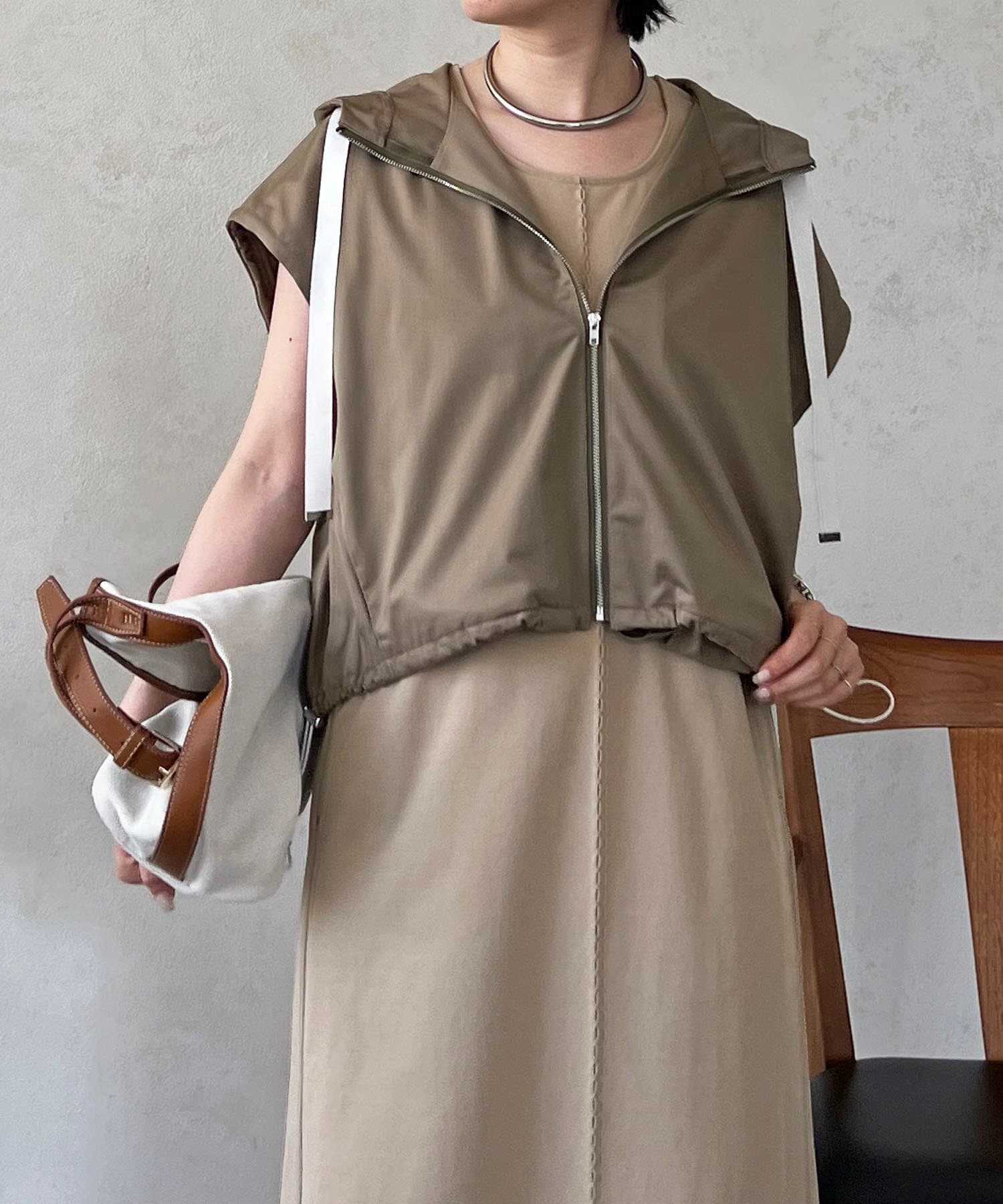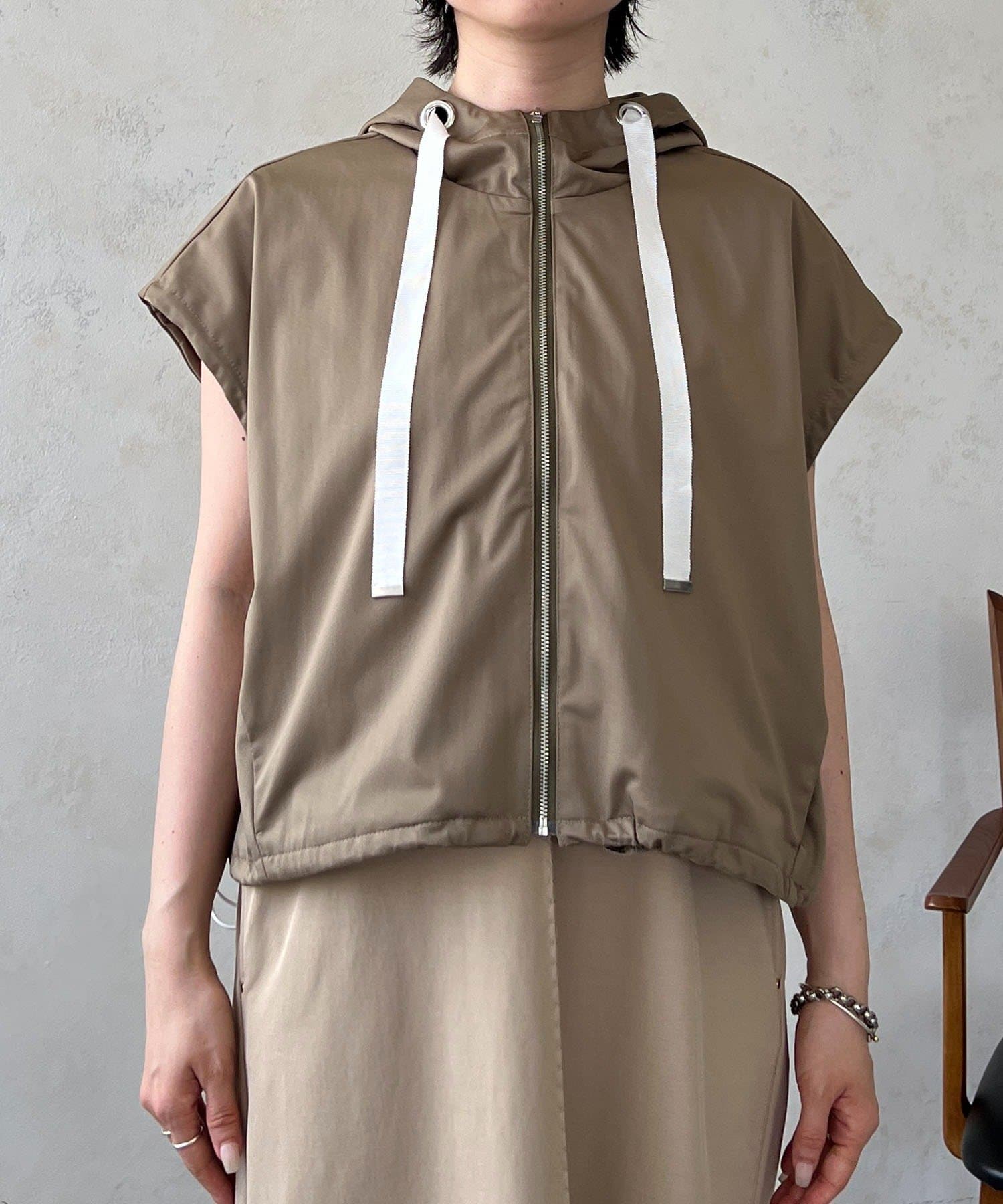 ・袖や裾のドロストでお好みの形に調節可能なジップ付きベスト