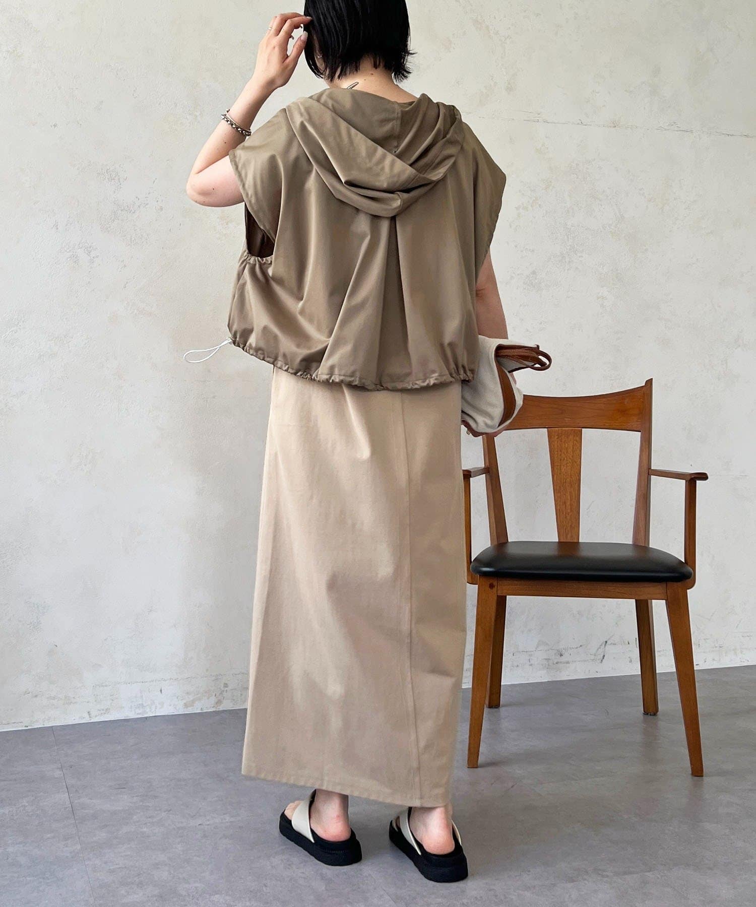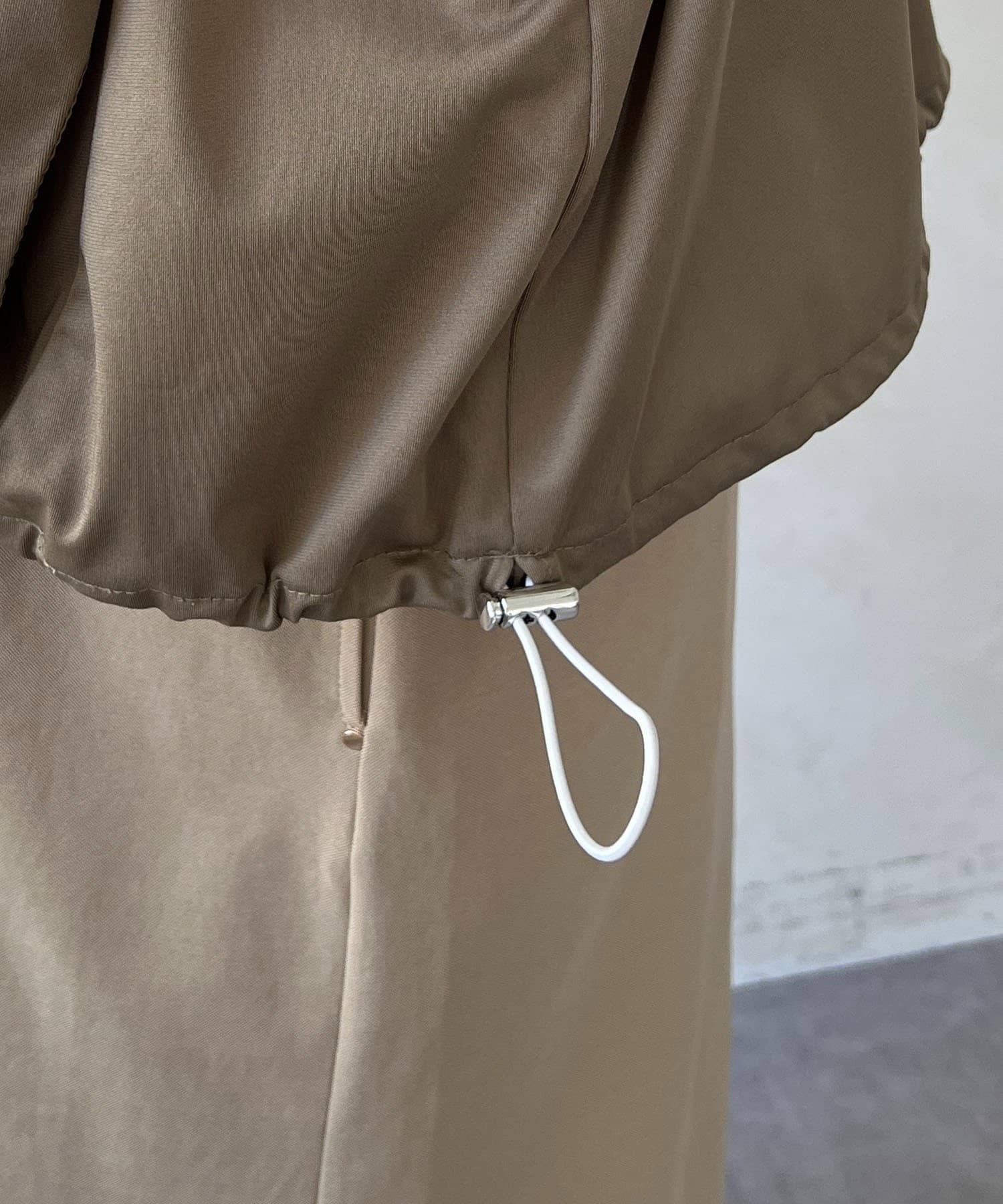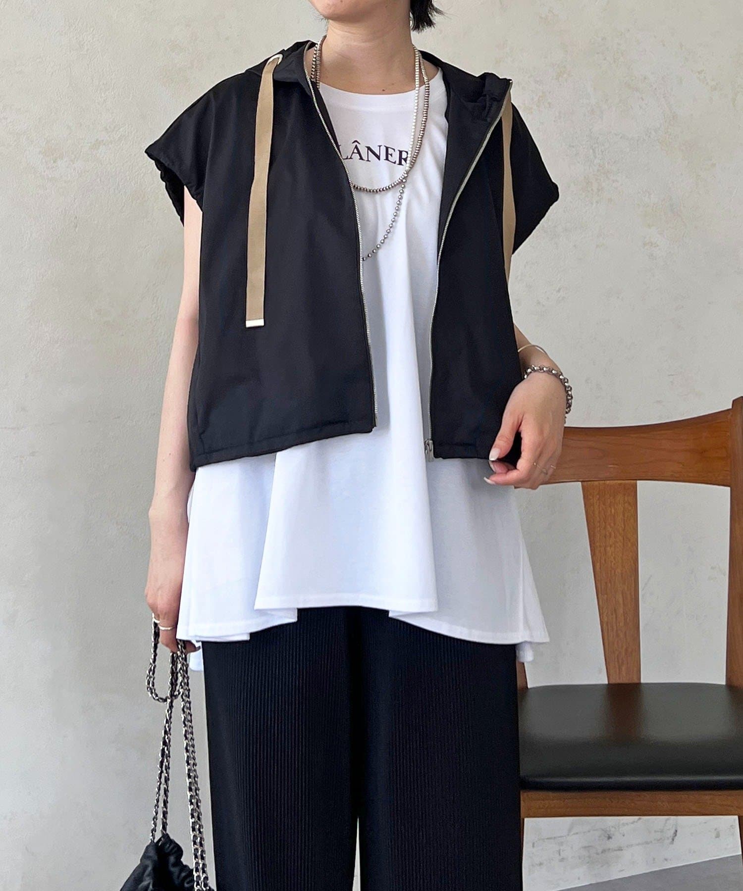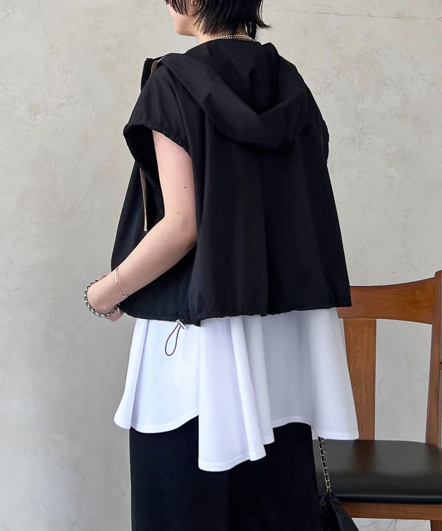 ・袖や裾のドロストでお好みの形に調節可能なジップ付きベスト