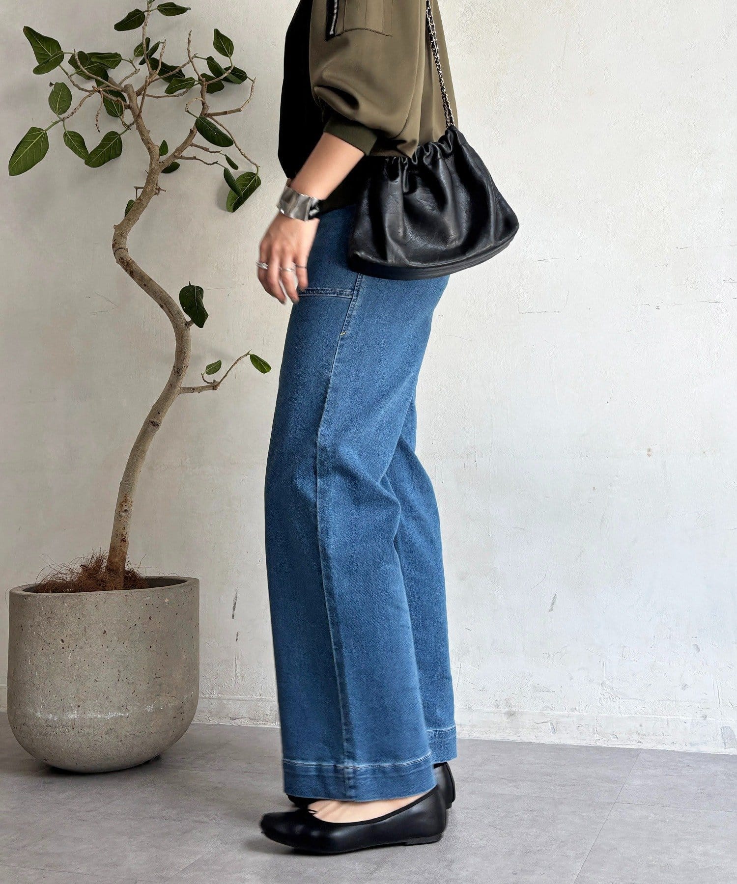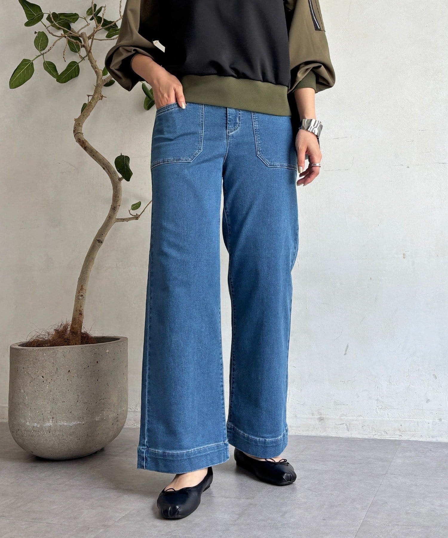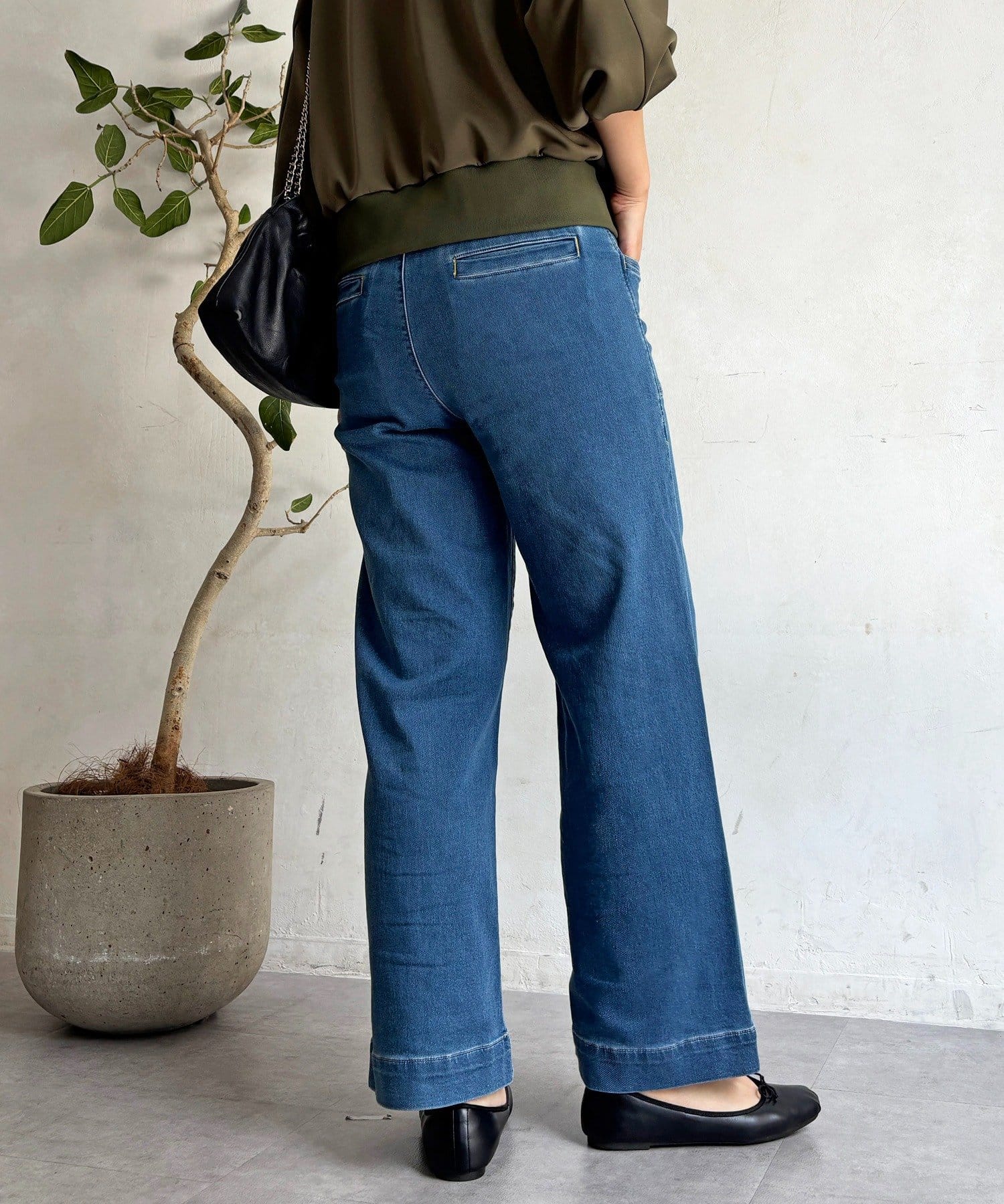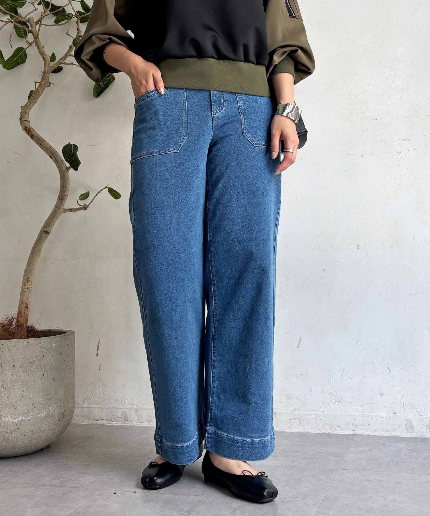 ・ストレッチが効いて伸縮性抜群の、太めストレートシルエット
