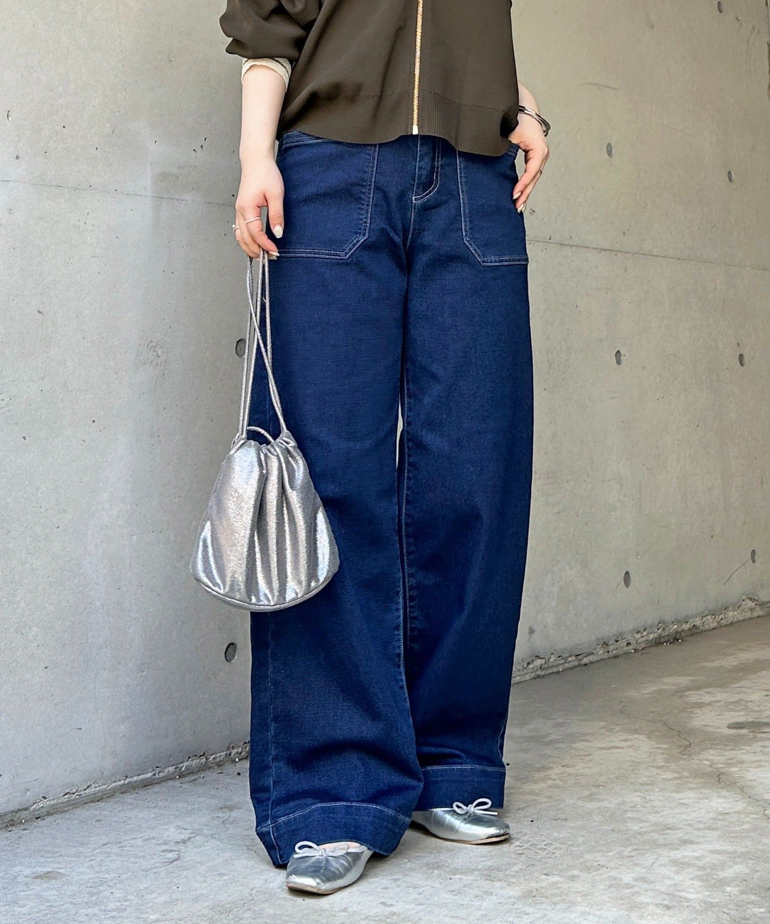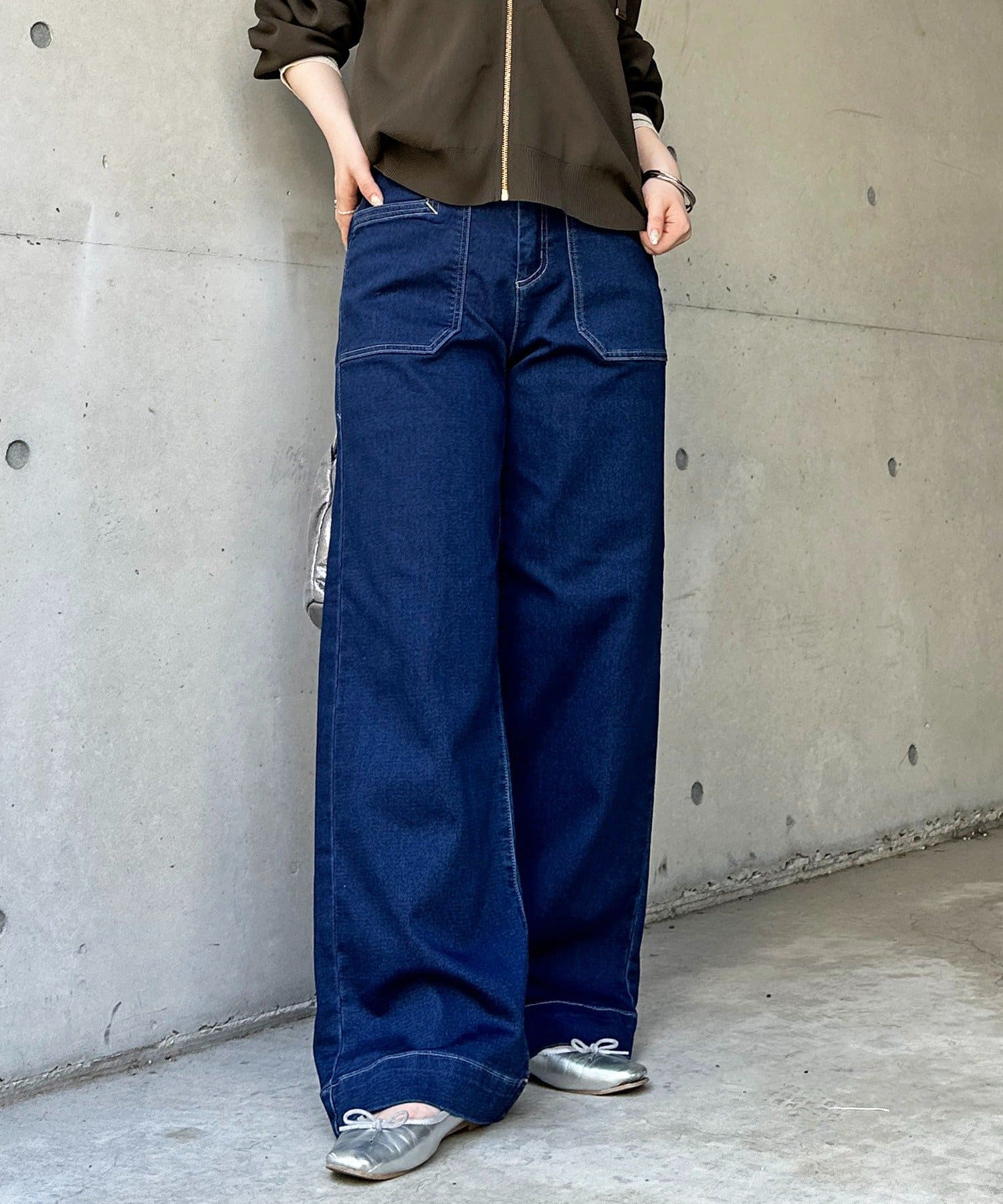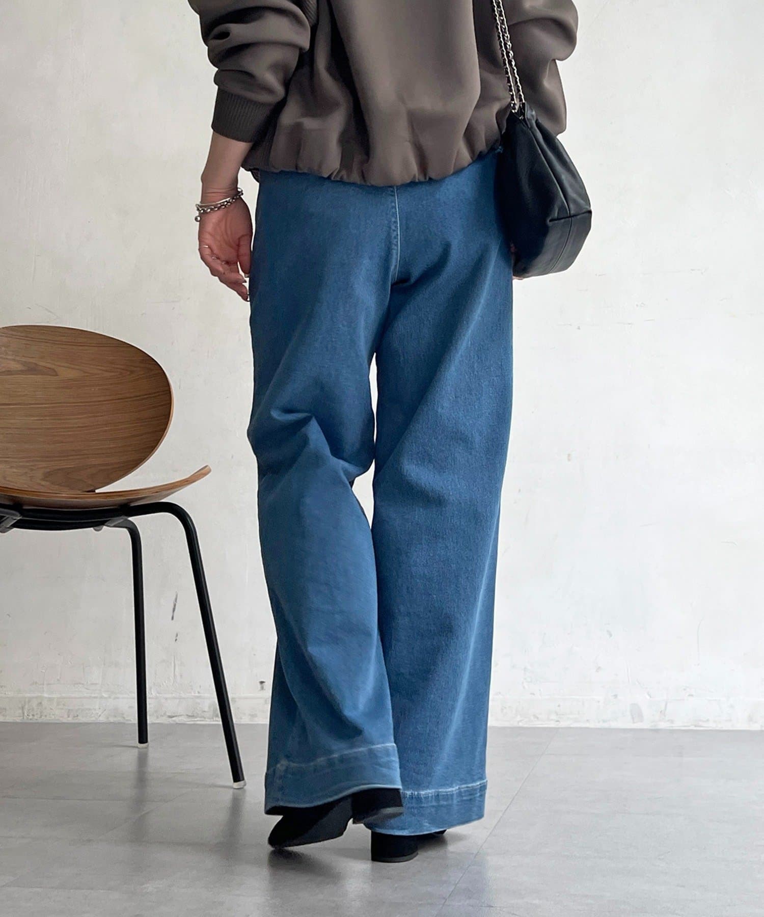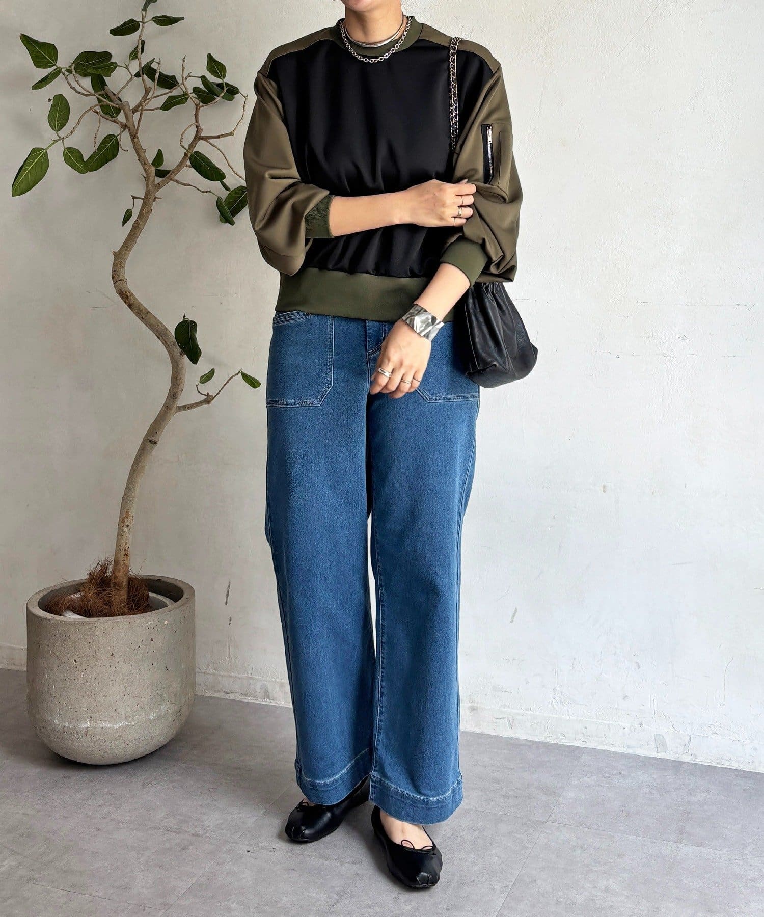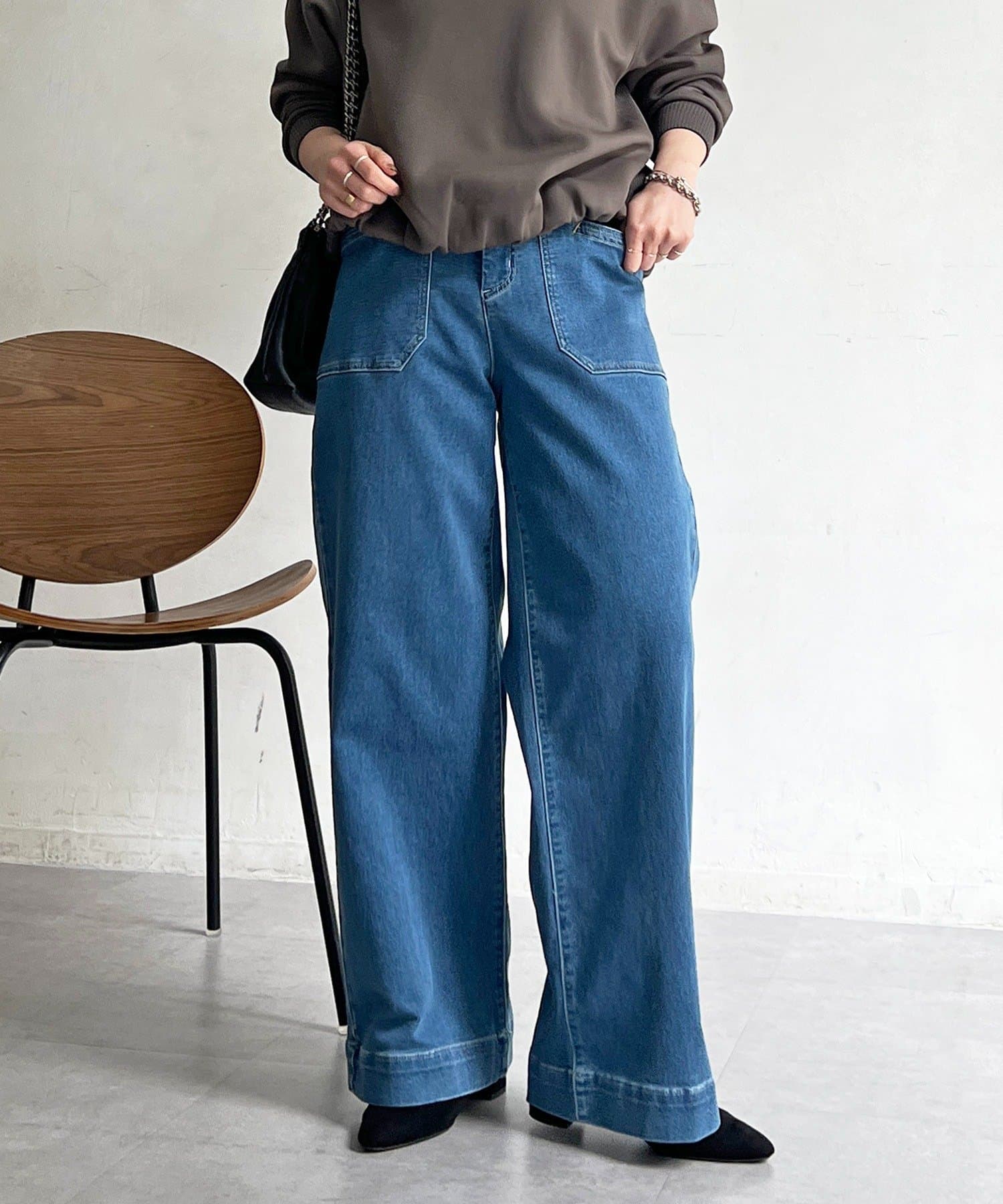 ・ストレッチが効いて伸縮性抜群の、太めストレートシルエット