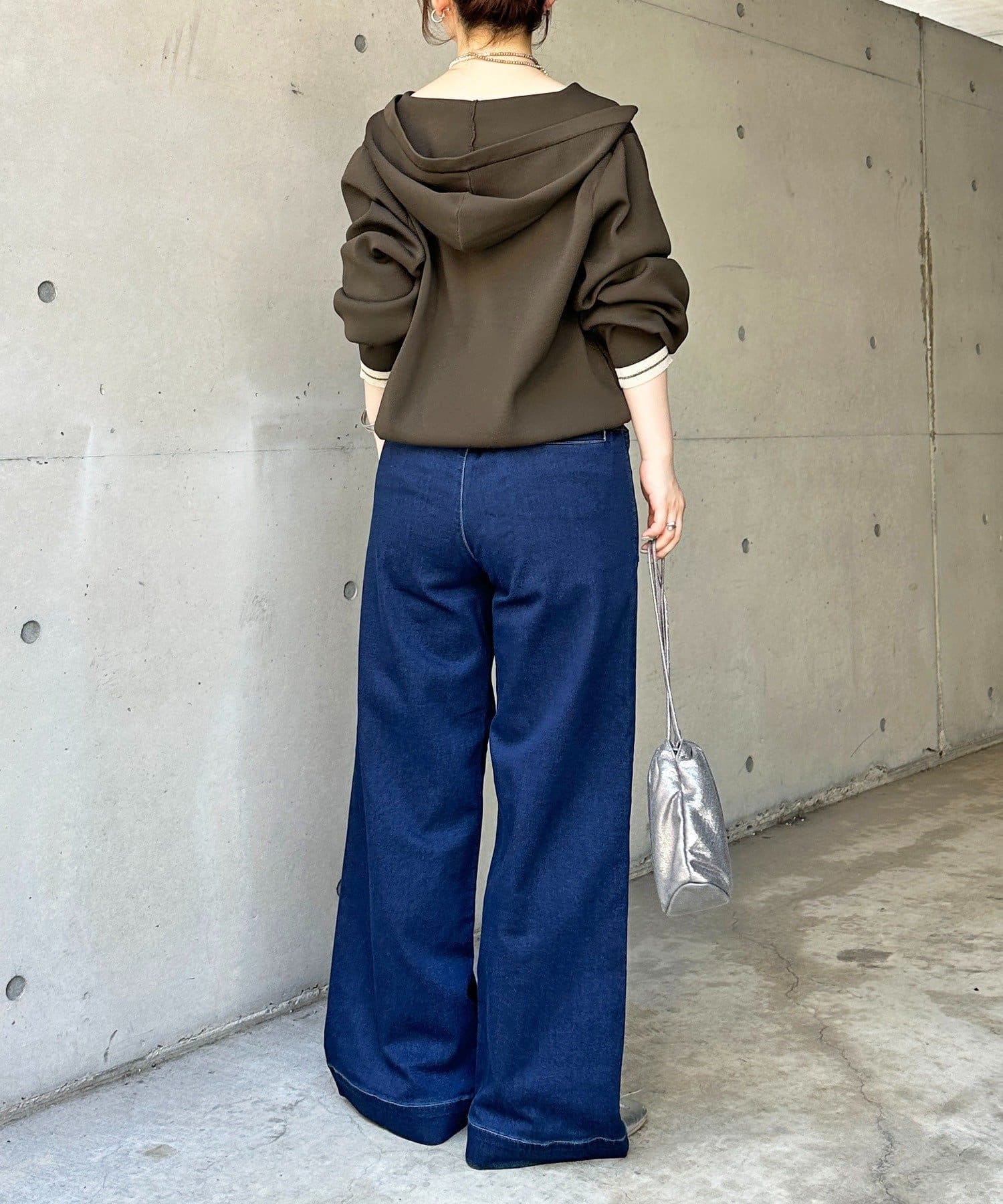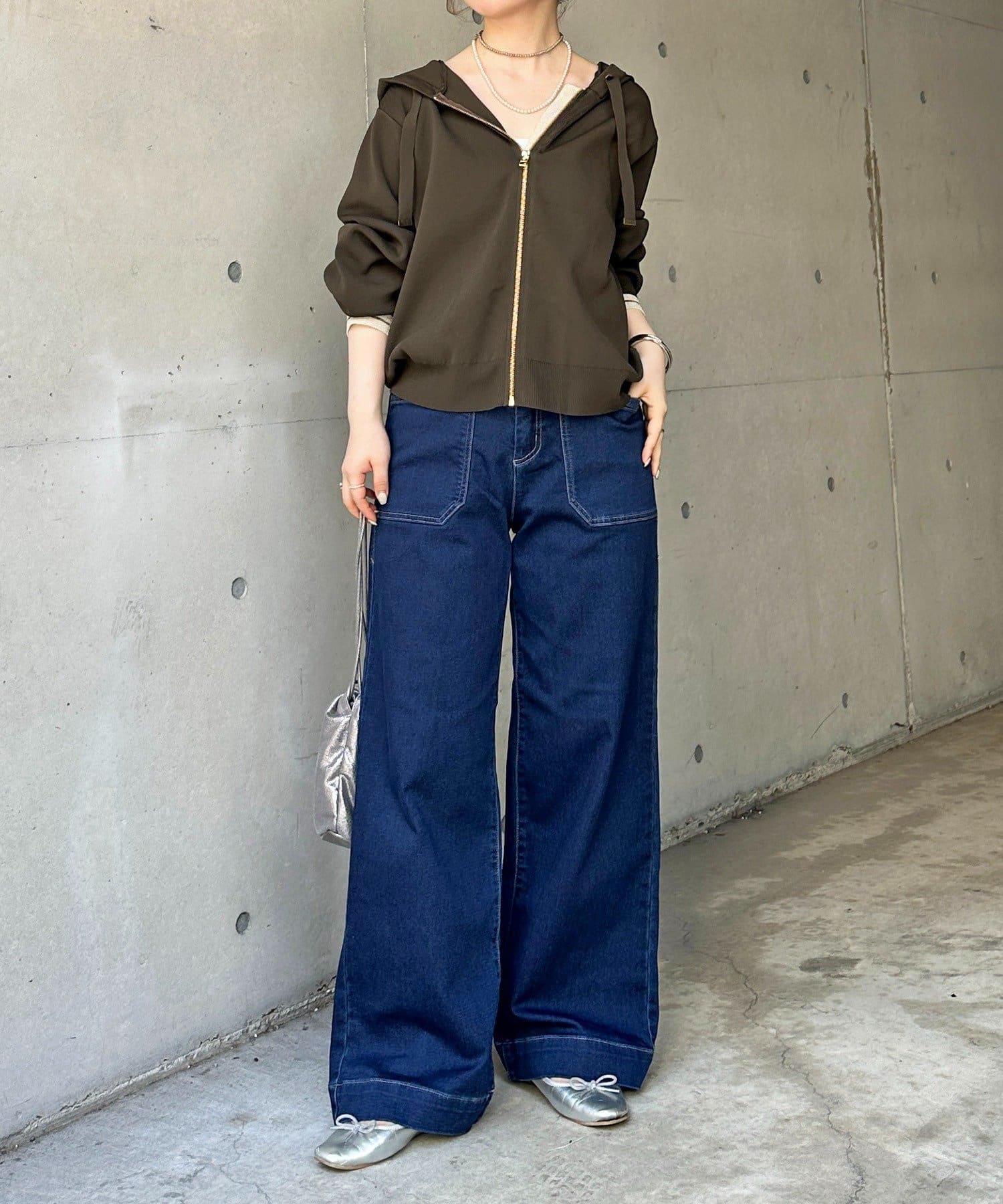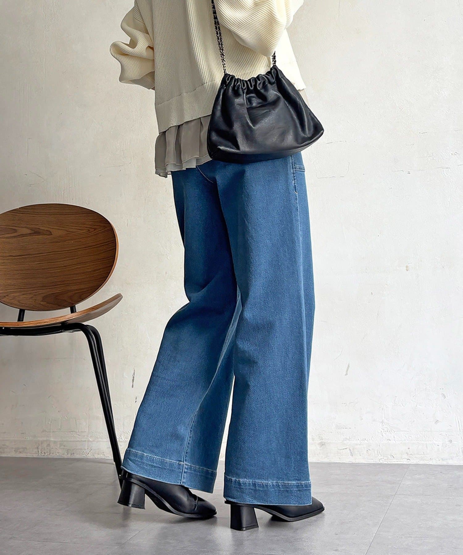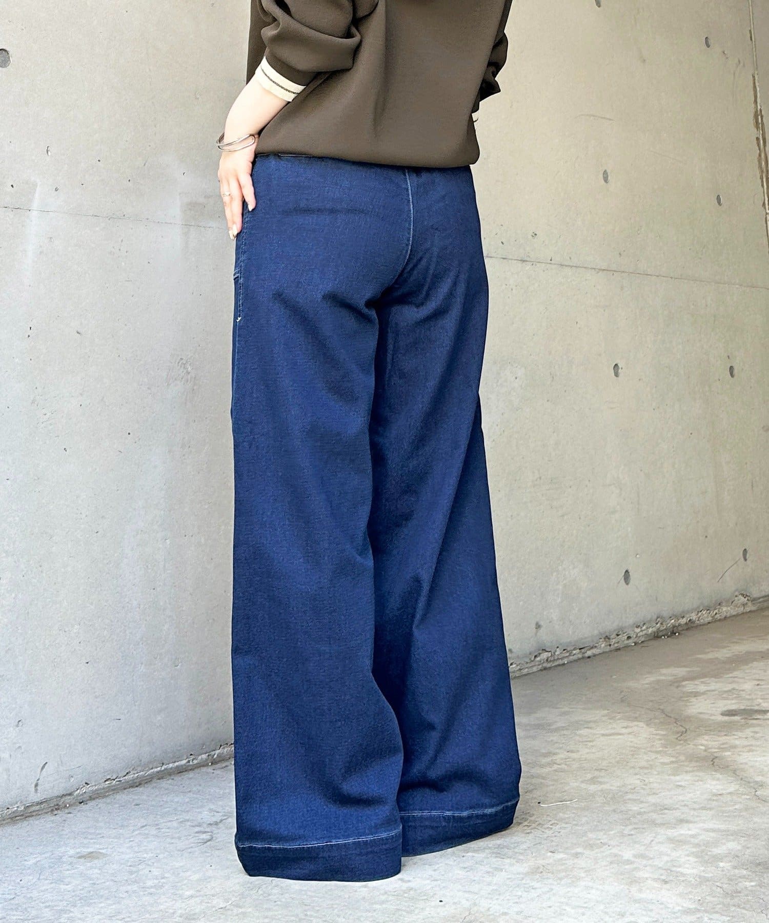 ・ストレッチが効いて伸縮性抜群の、太めストレートシルエット