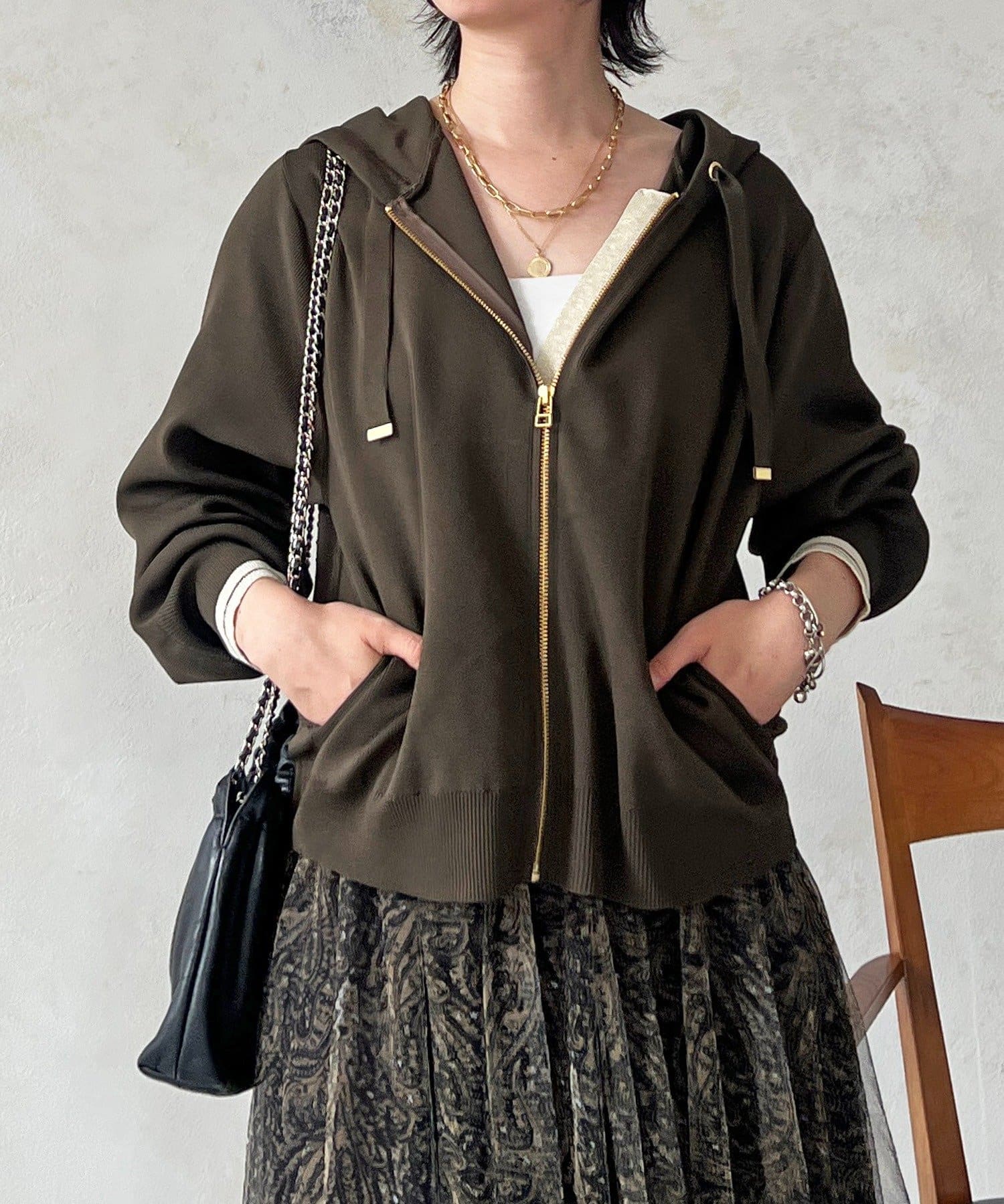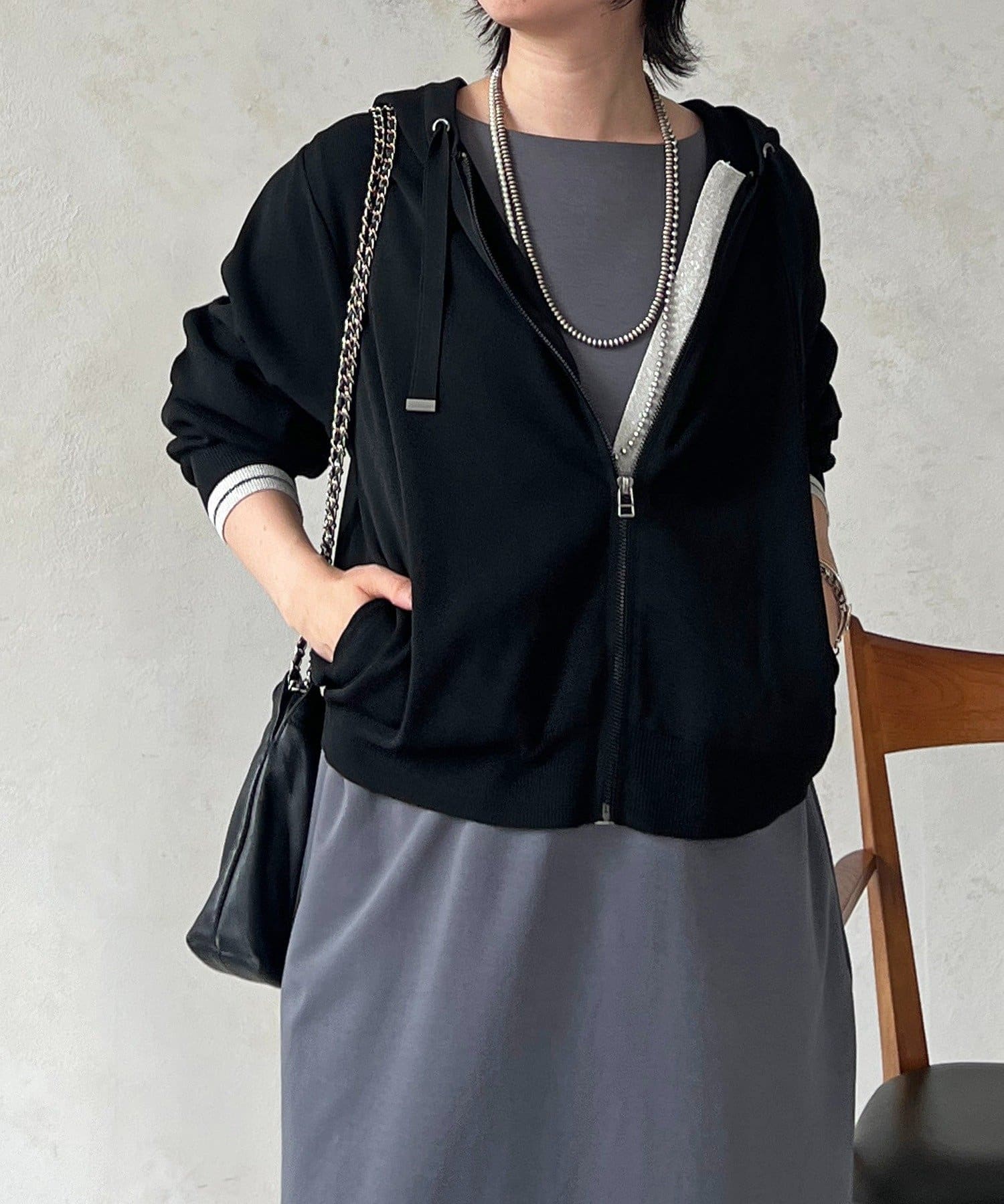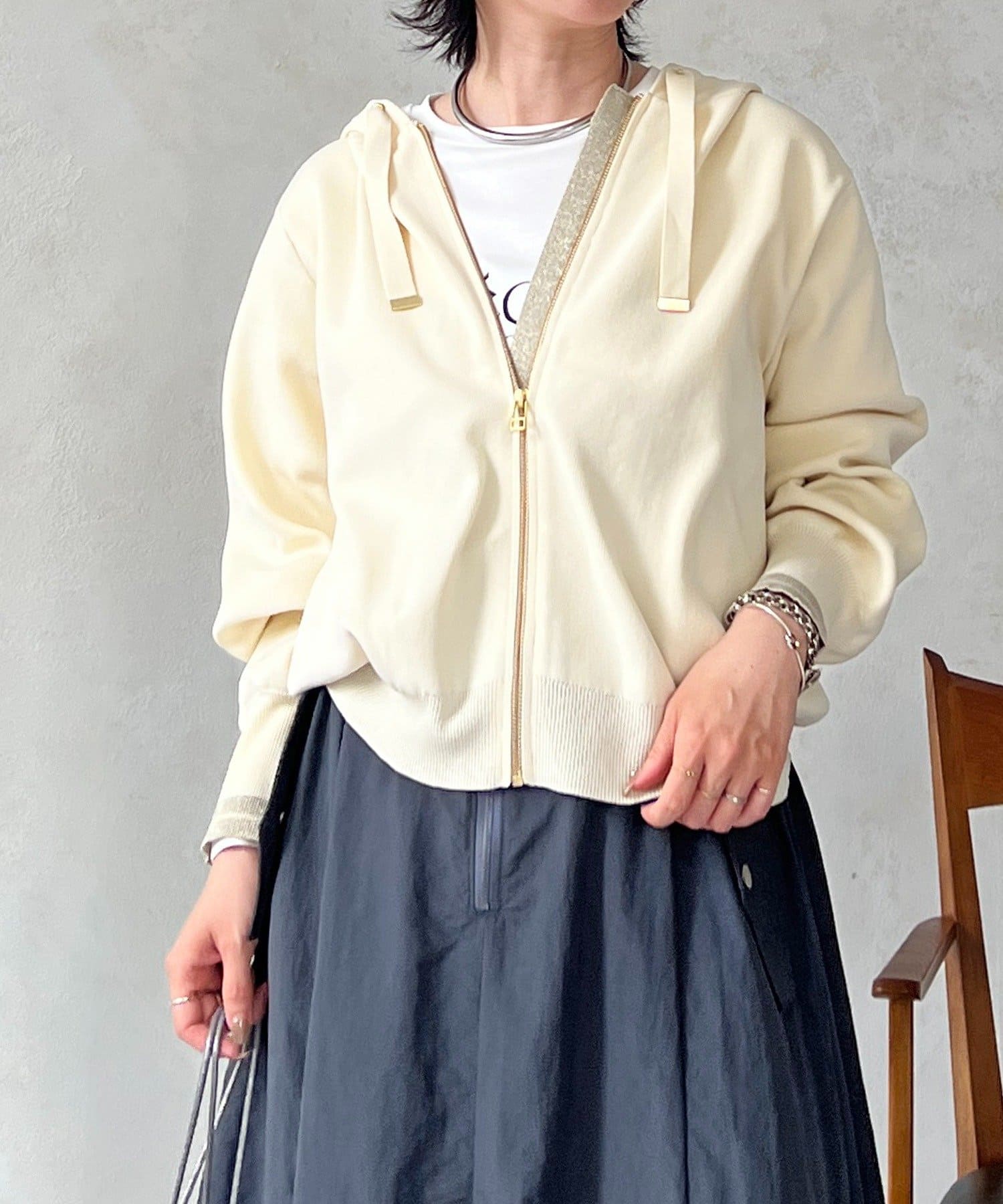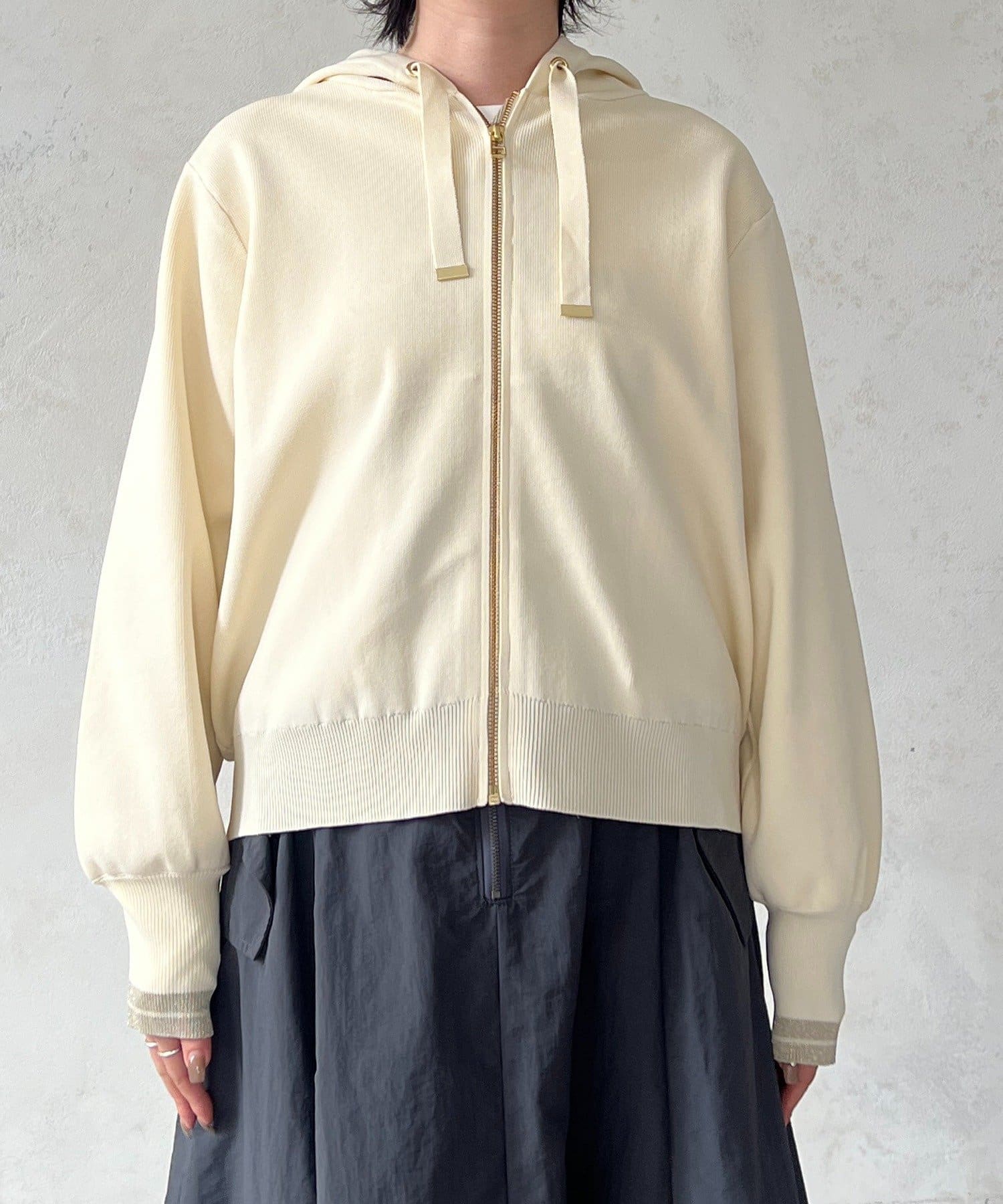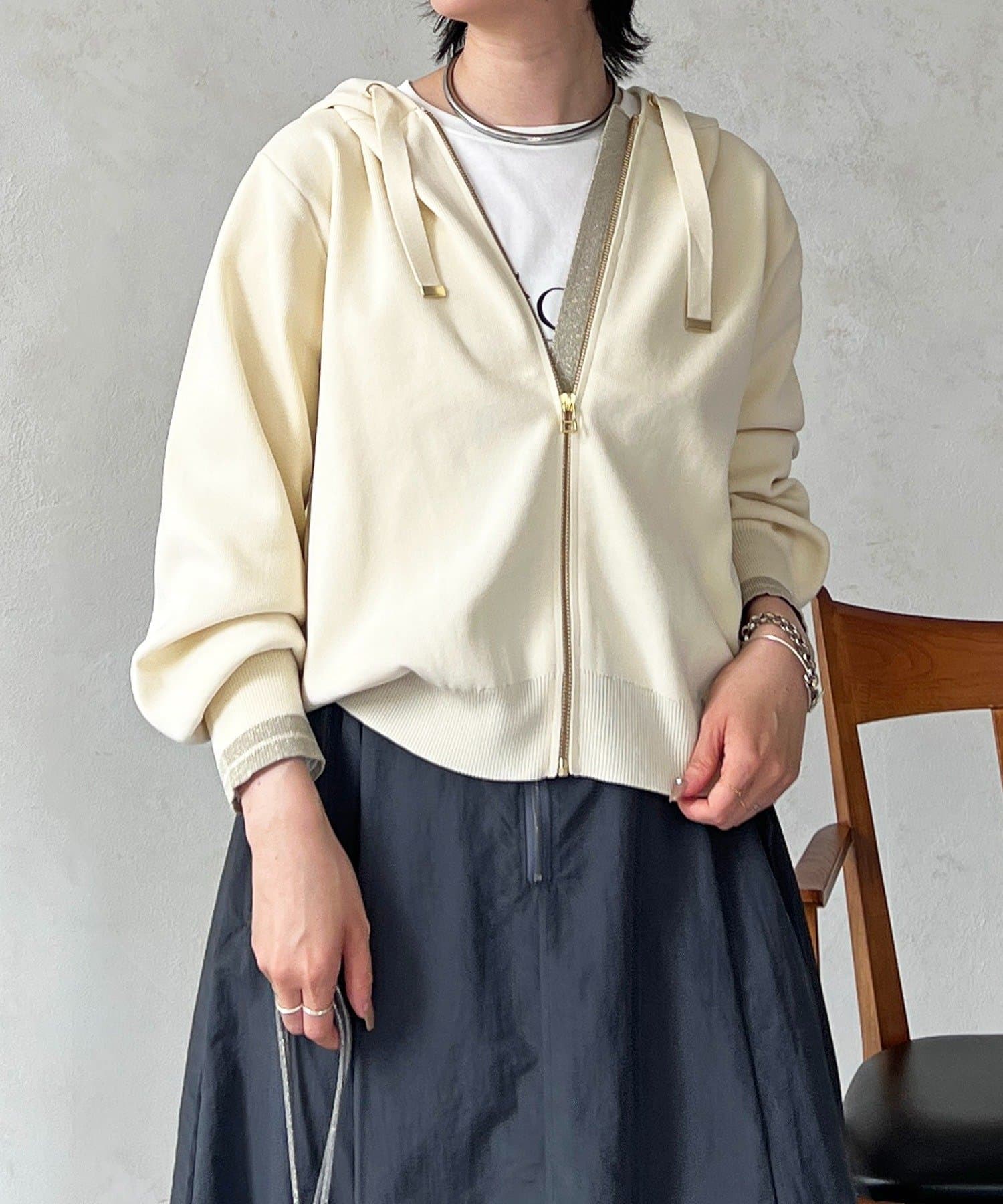 ・袖キラッと感がさりげなく可愛いニットパーカー