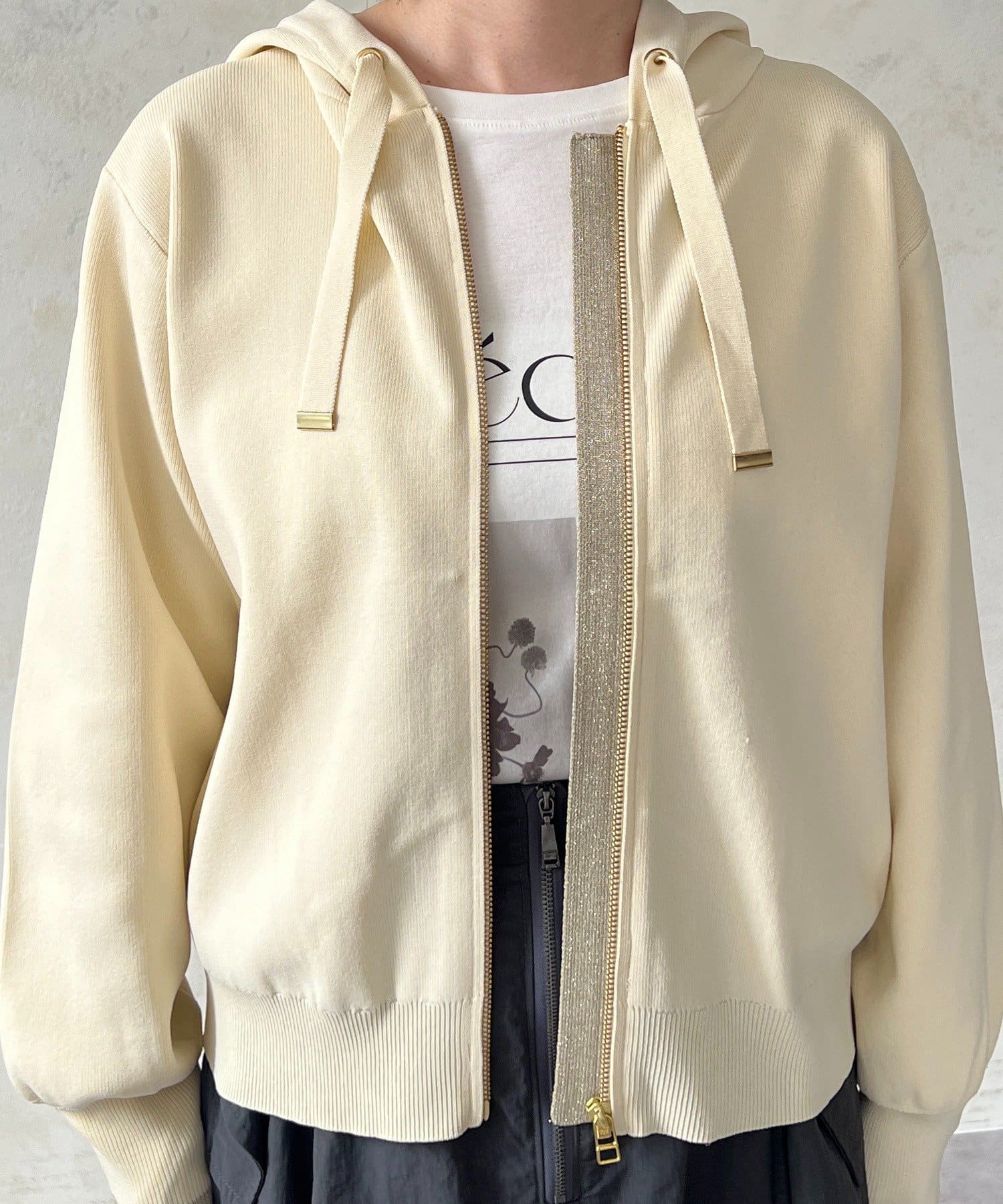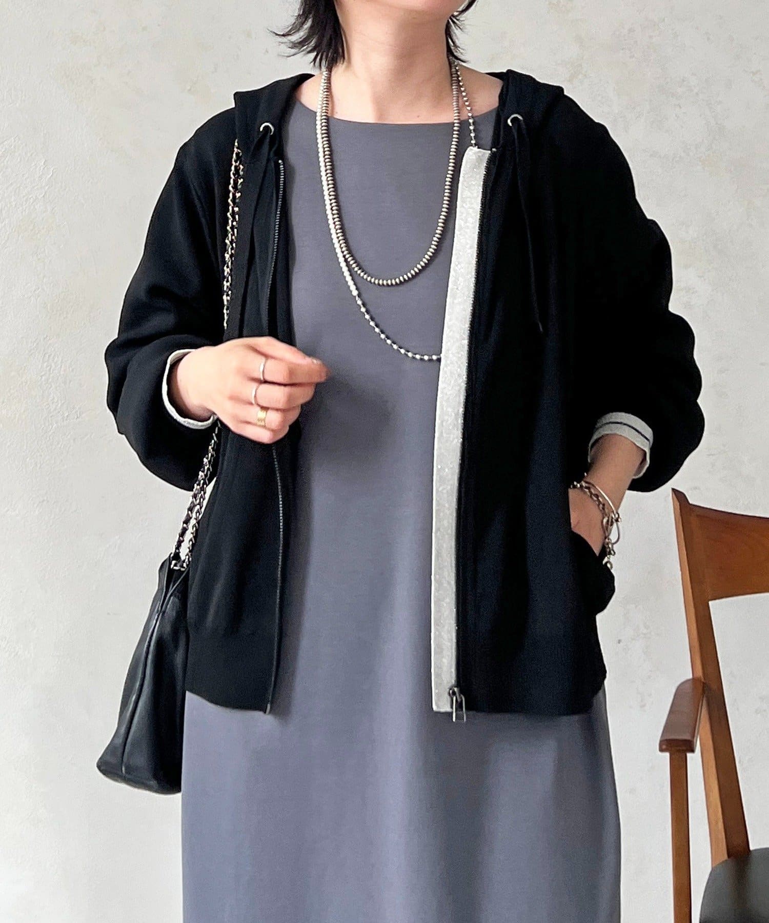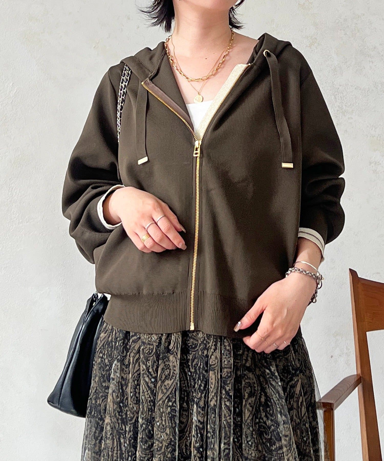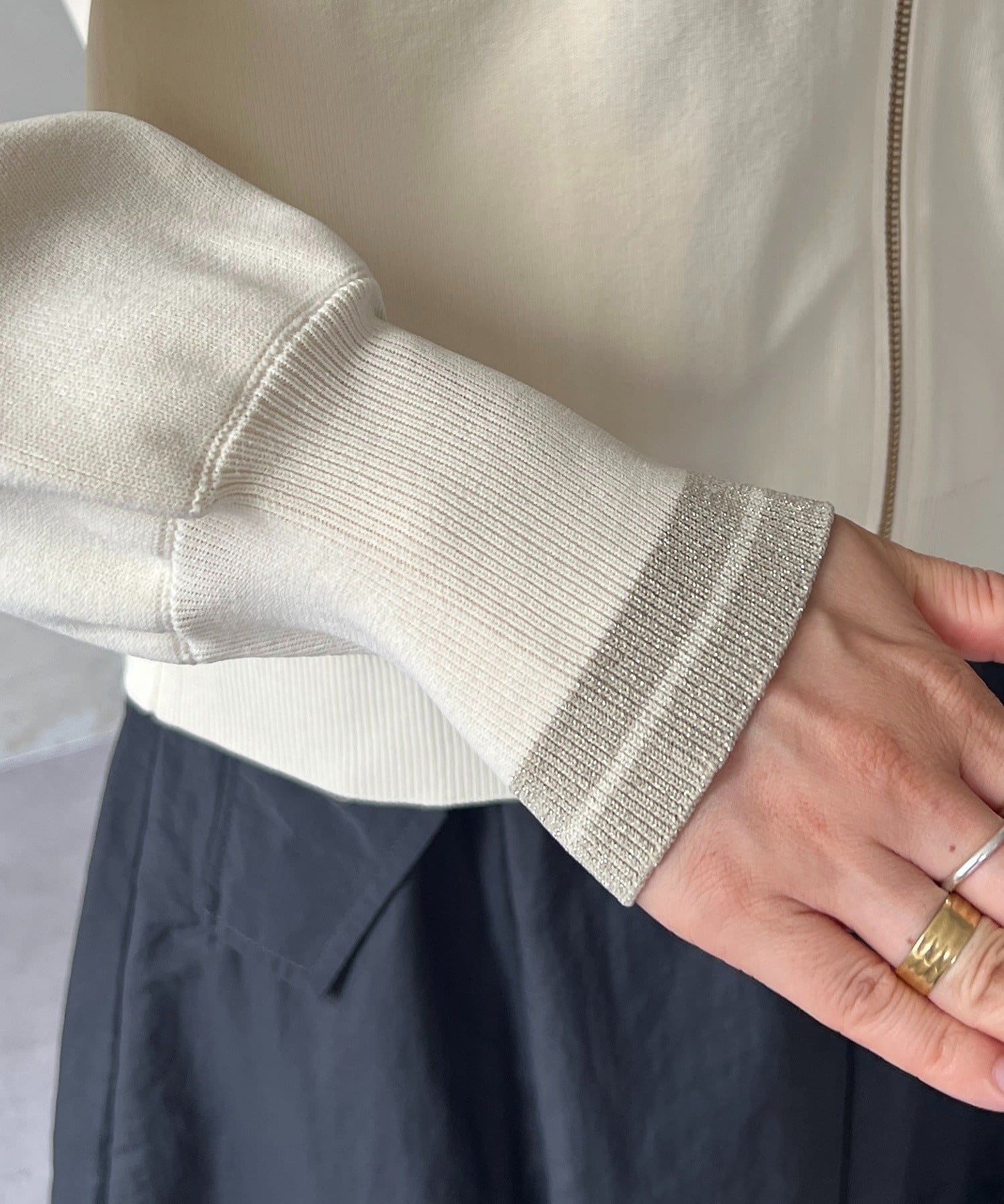 ・袖キラッと感がさりげなく可愛いニットパーカー