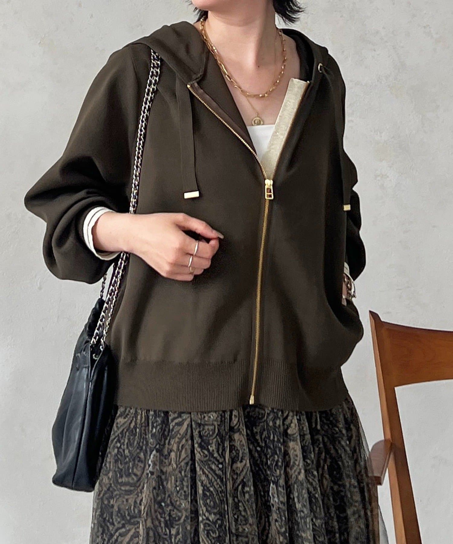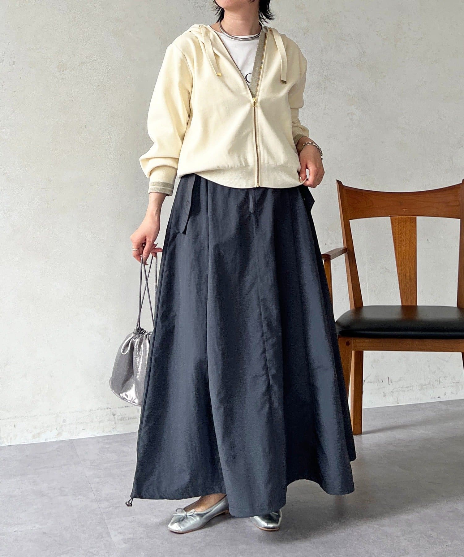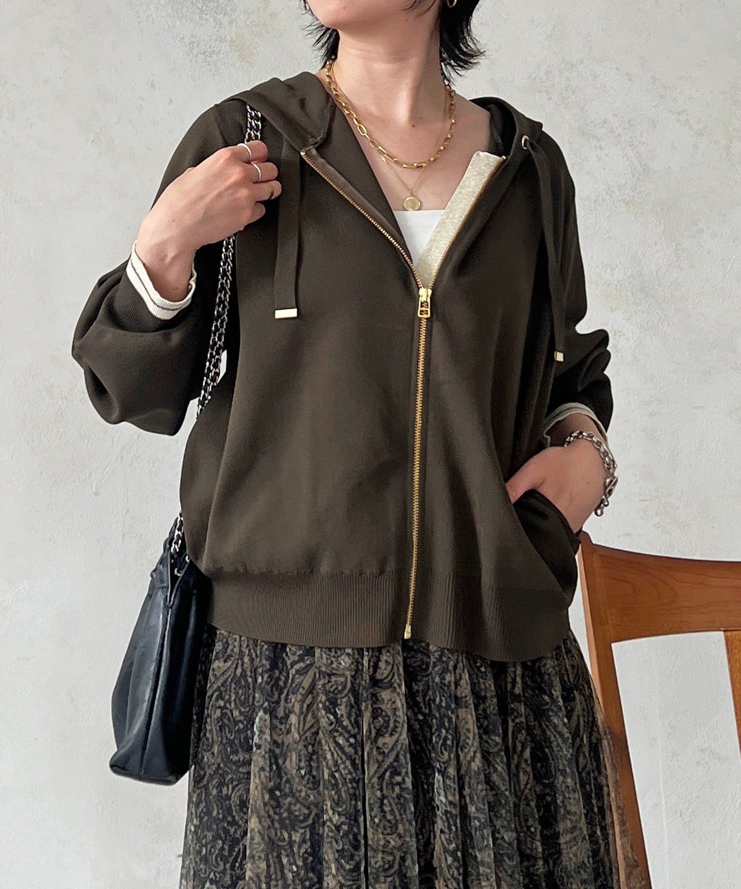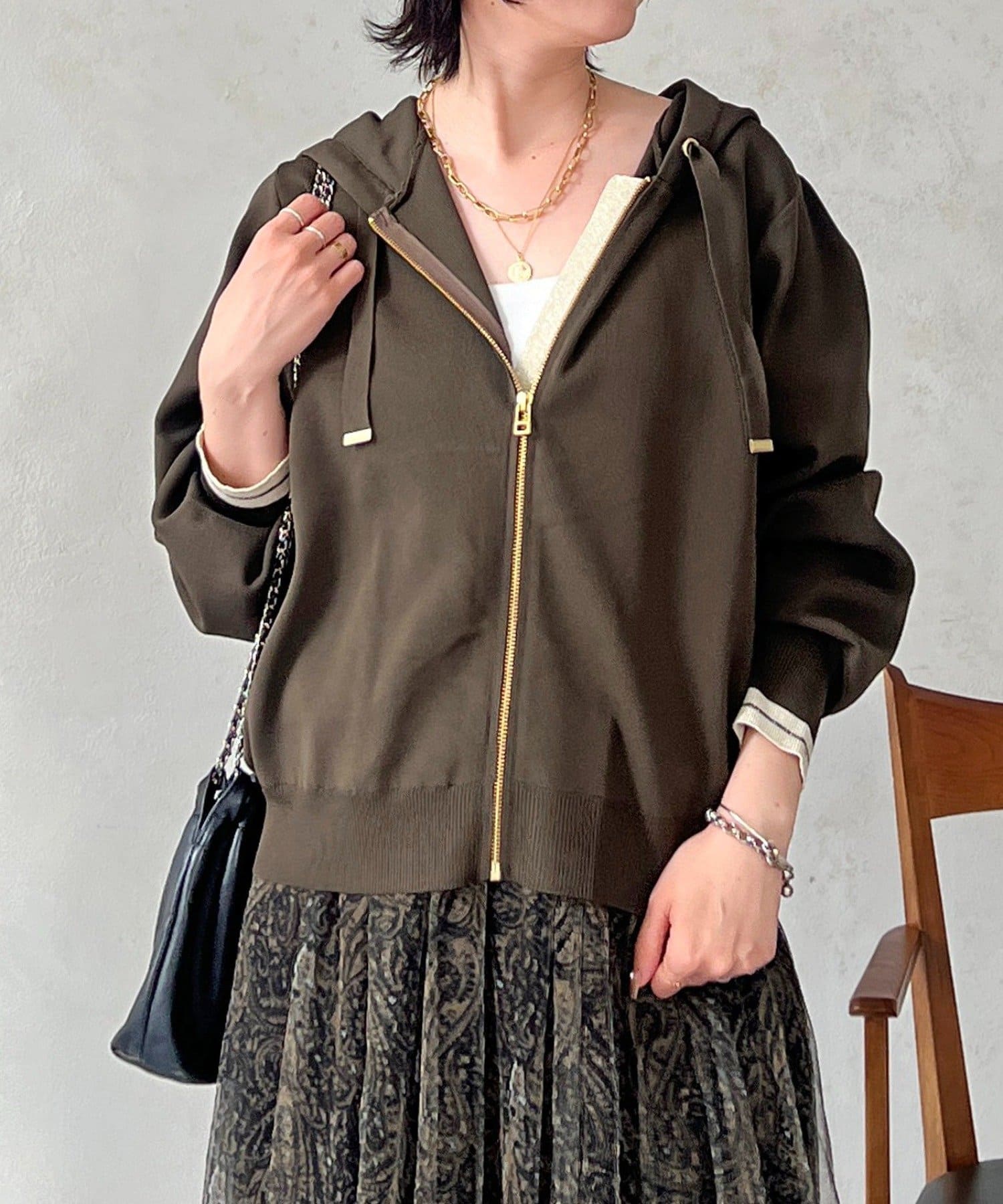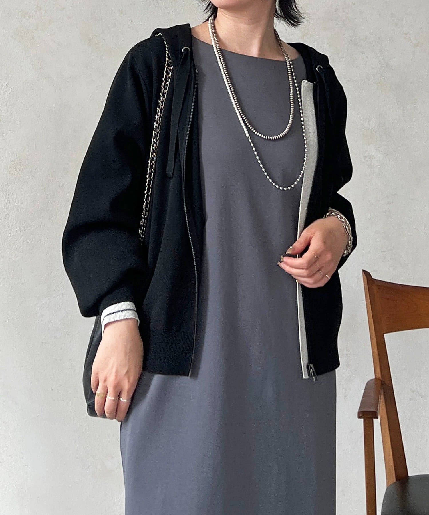 ・袖キラッと感がさりげなく可愛いニットパーカー
