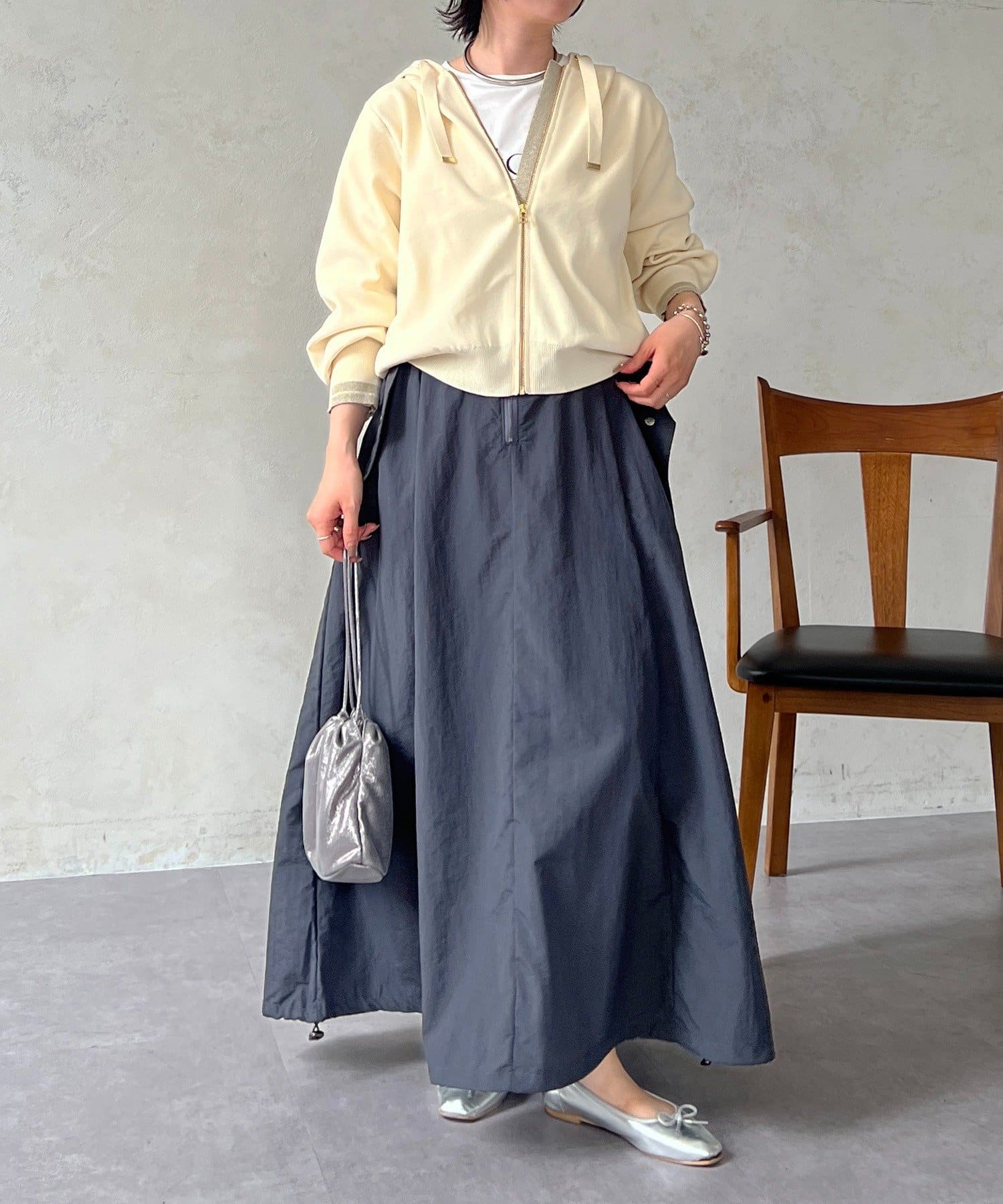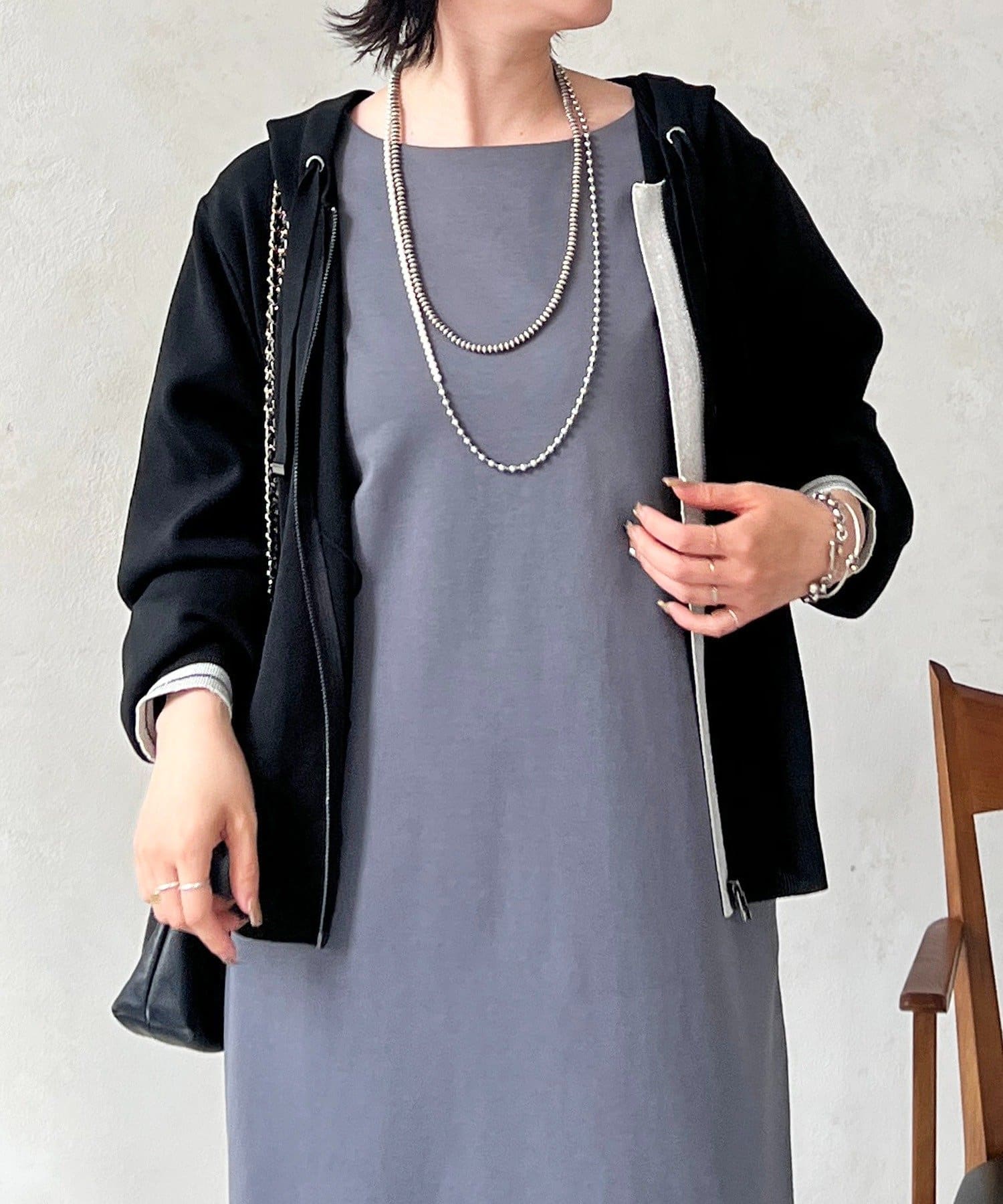 ・ふんわり柔らかい素材で、カジュアル過ぎずに着れる
