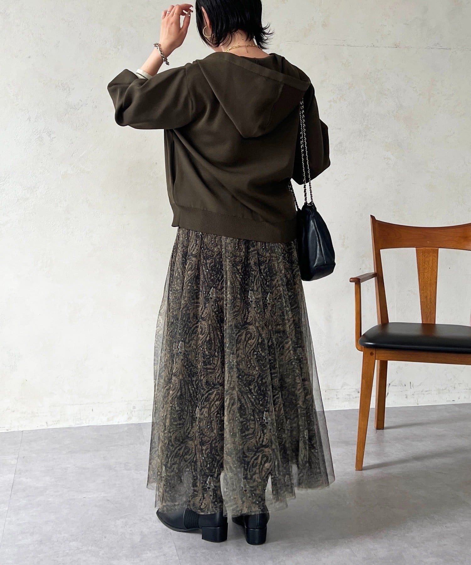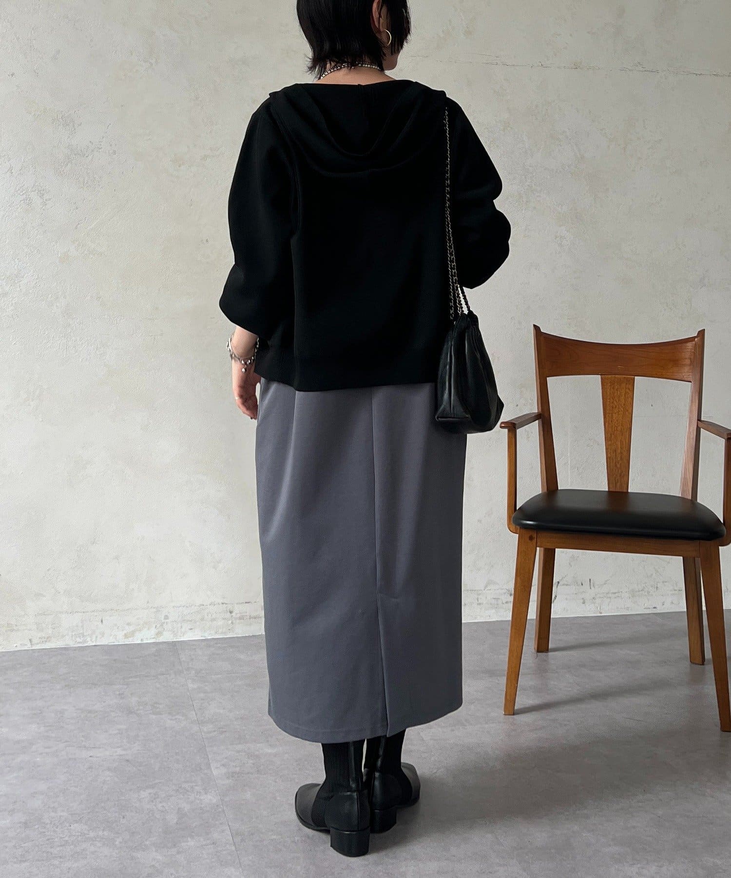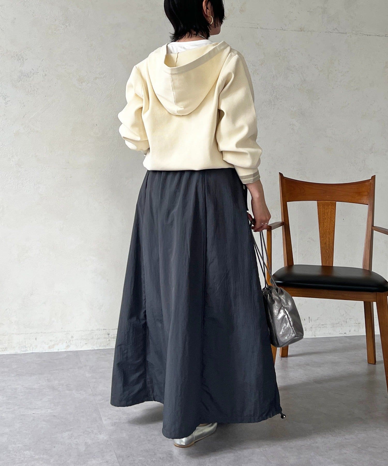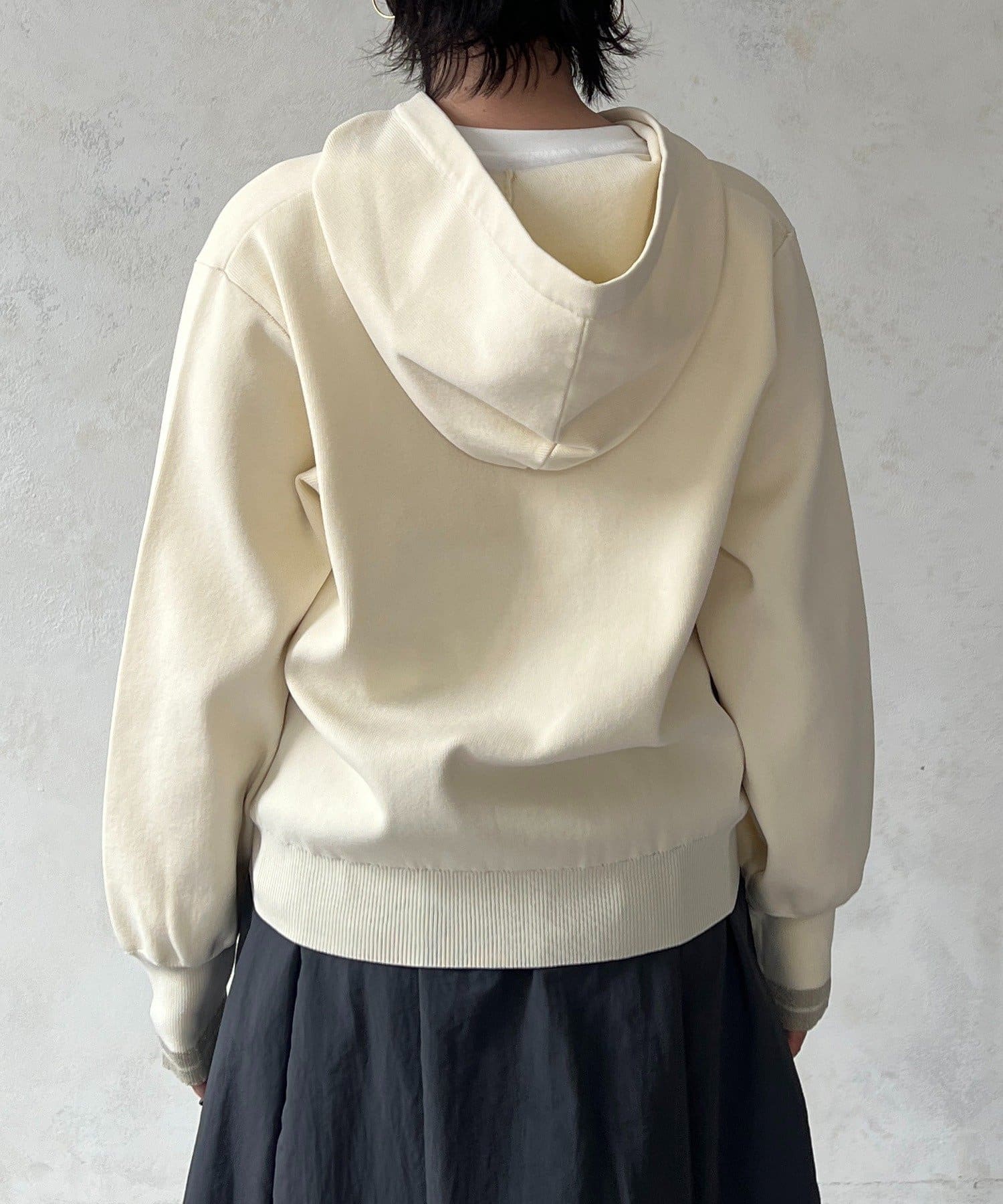 ・フード付きで印象的なバックスタイル
