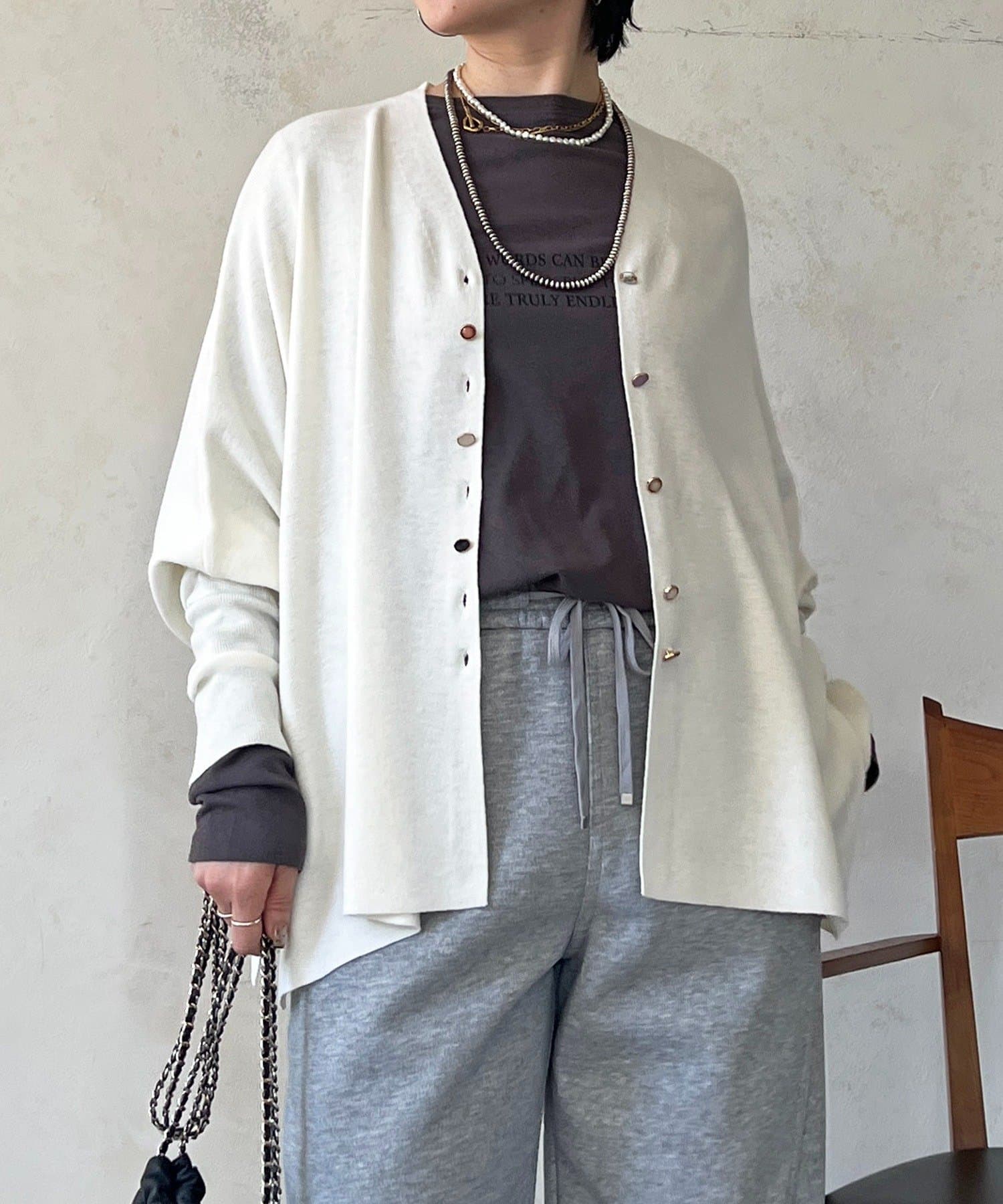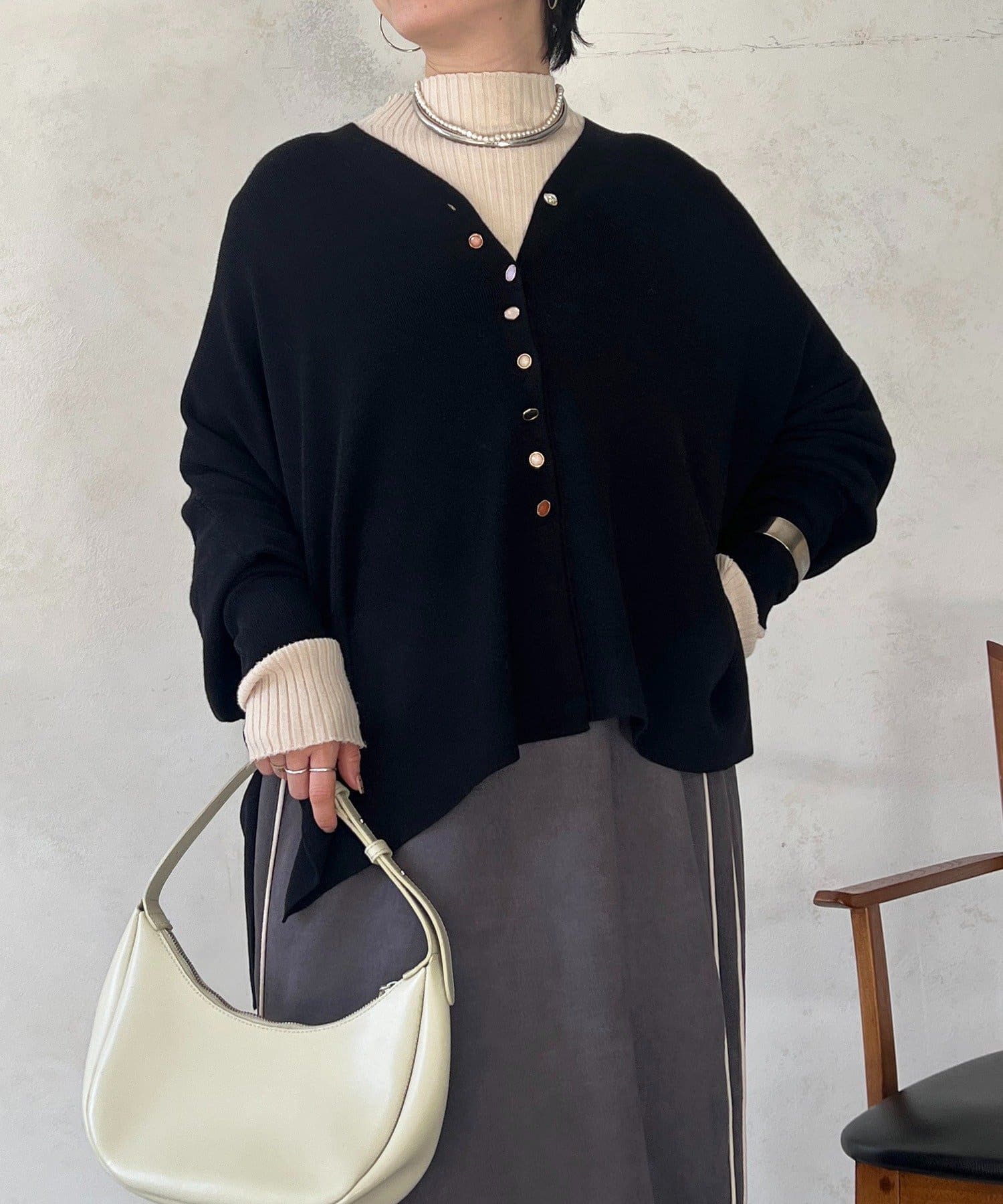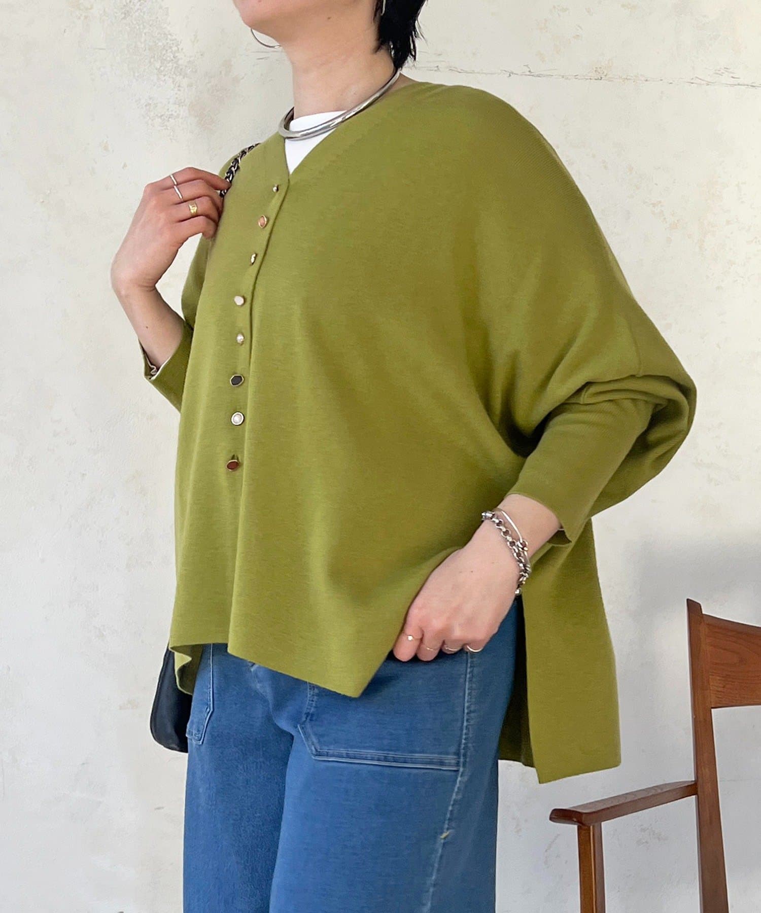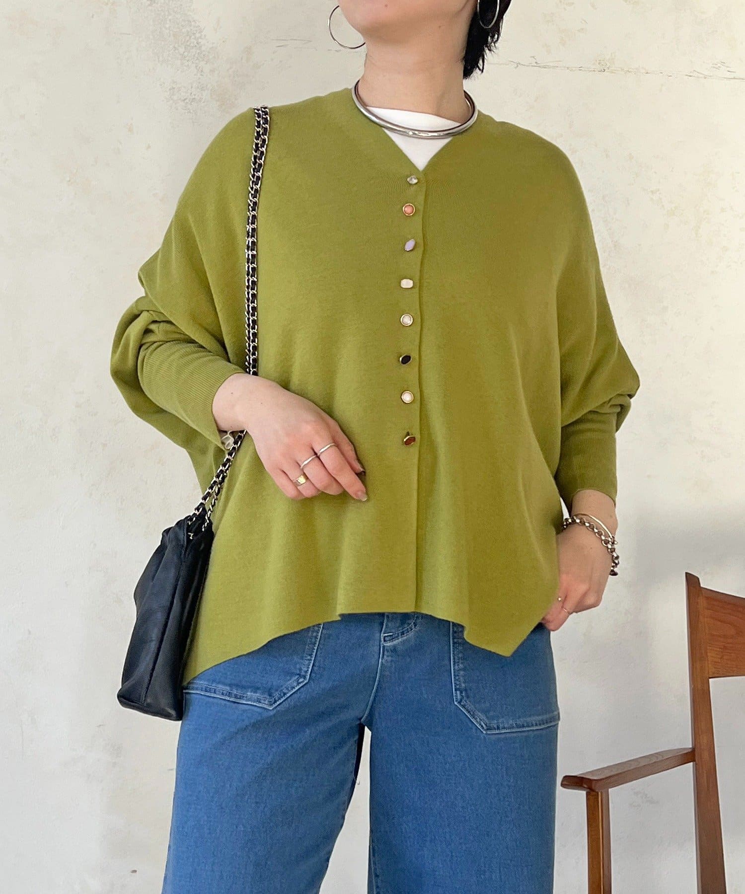 華やかなジュエリーボタンがポイントのVネックカーディガン
