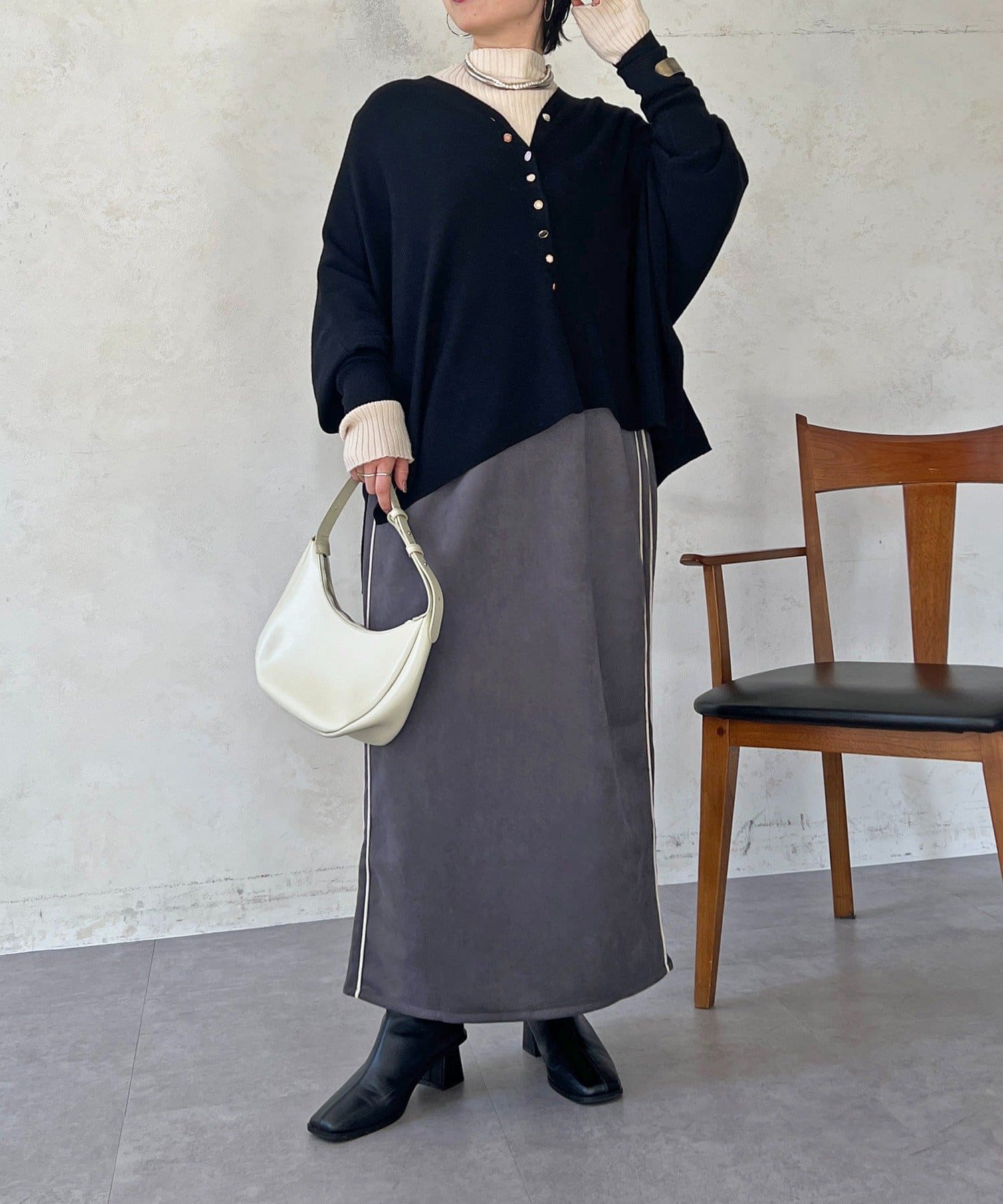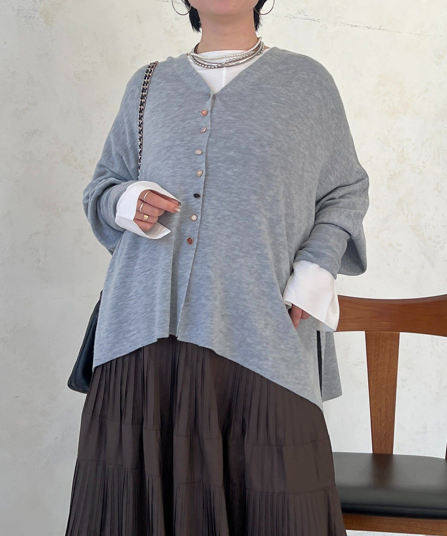・裾は緩やかなカッティングでさりげなく腰回りカバーもできる