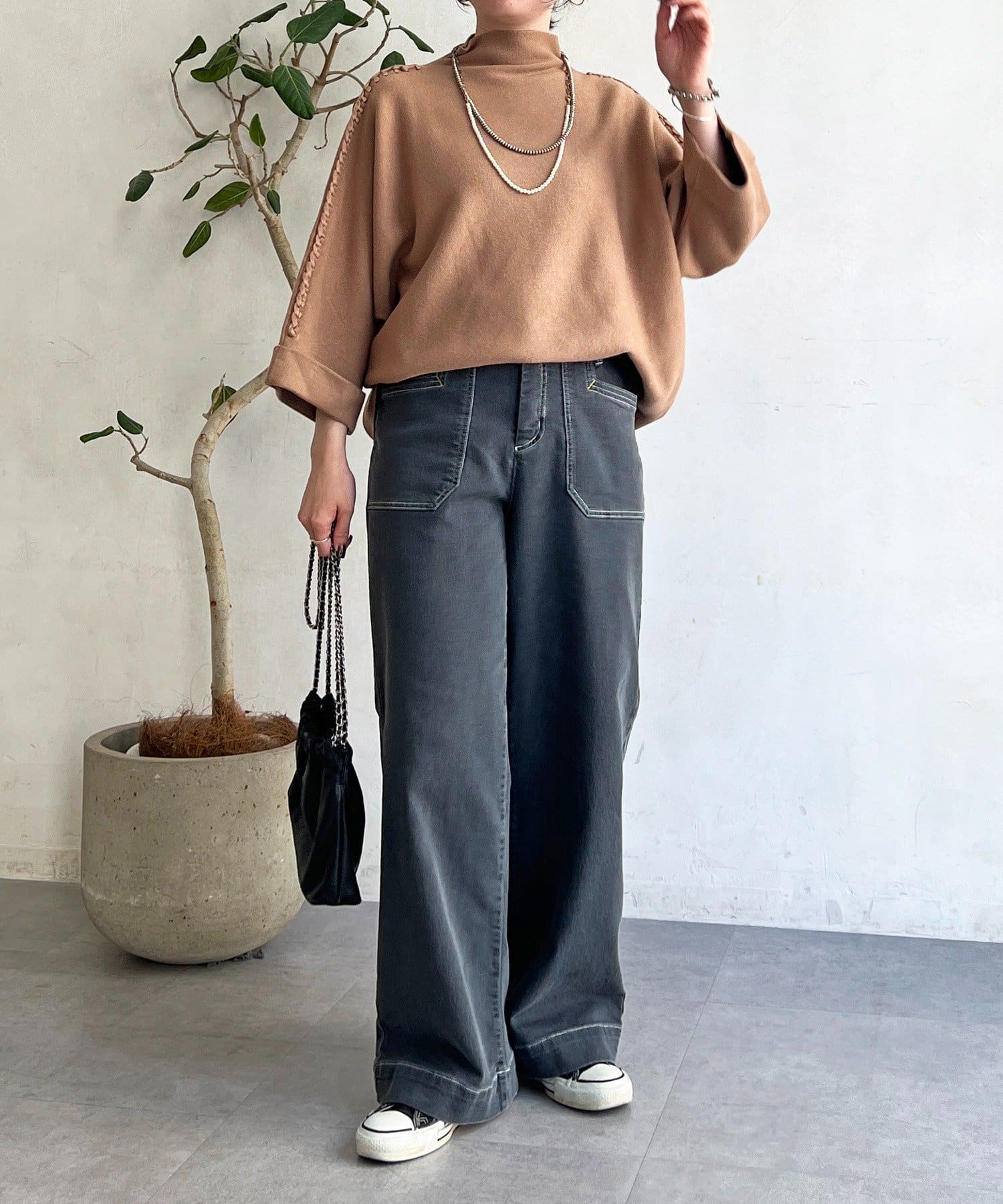 ・フレアスリーブがコーディネートのポイントになって華やかな印象
