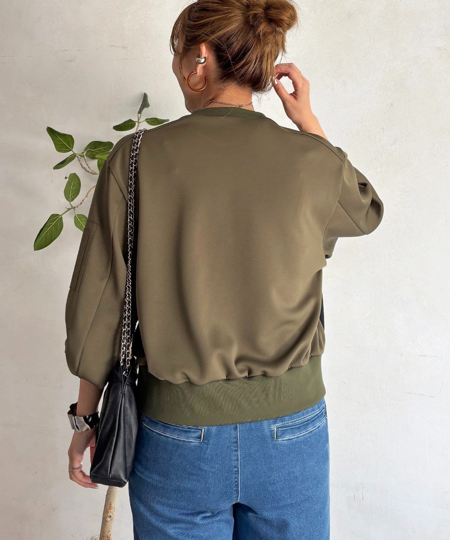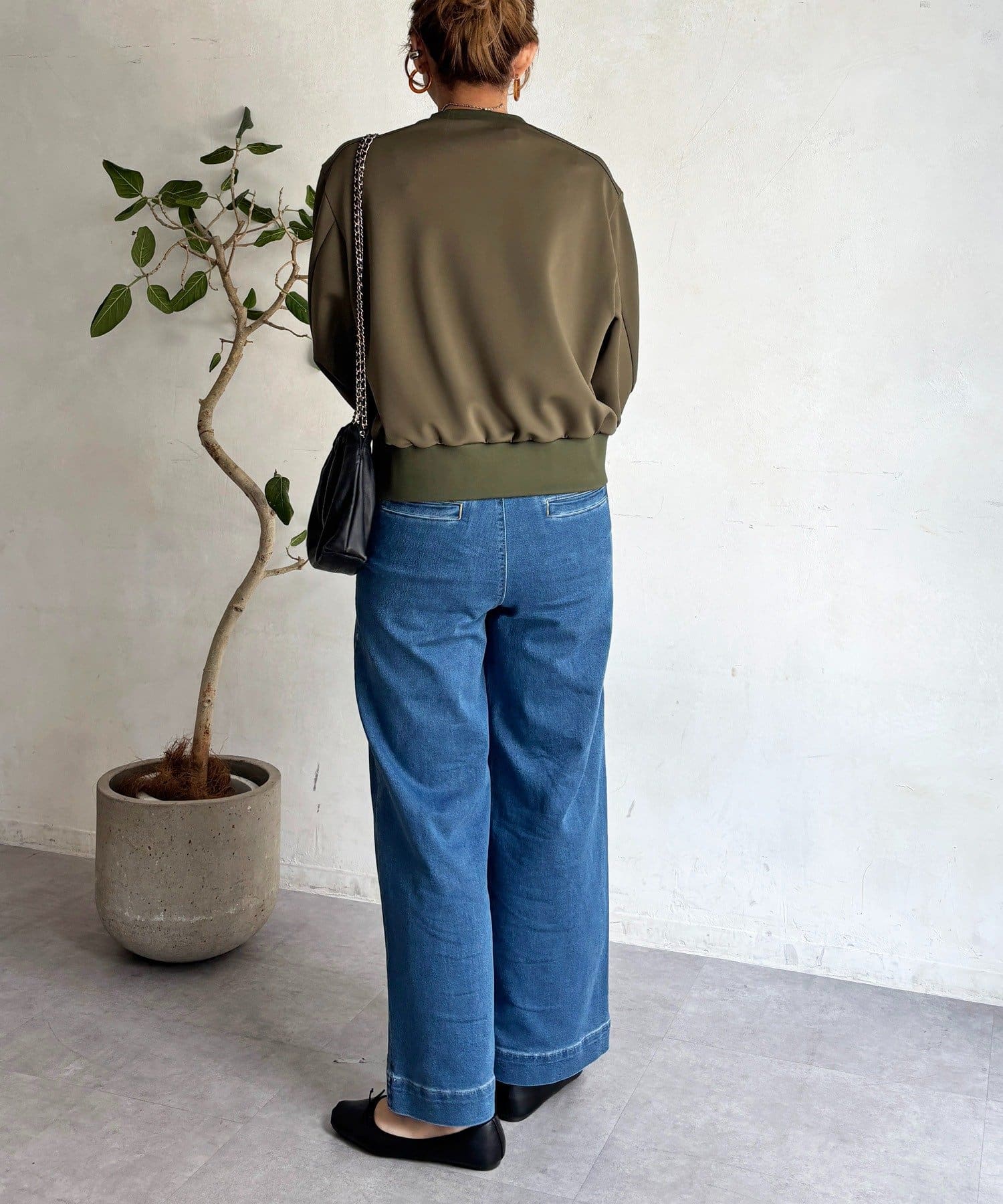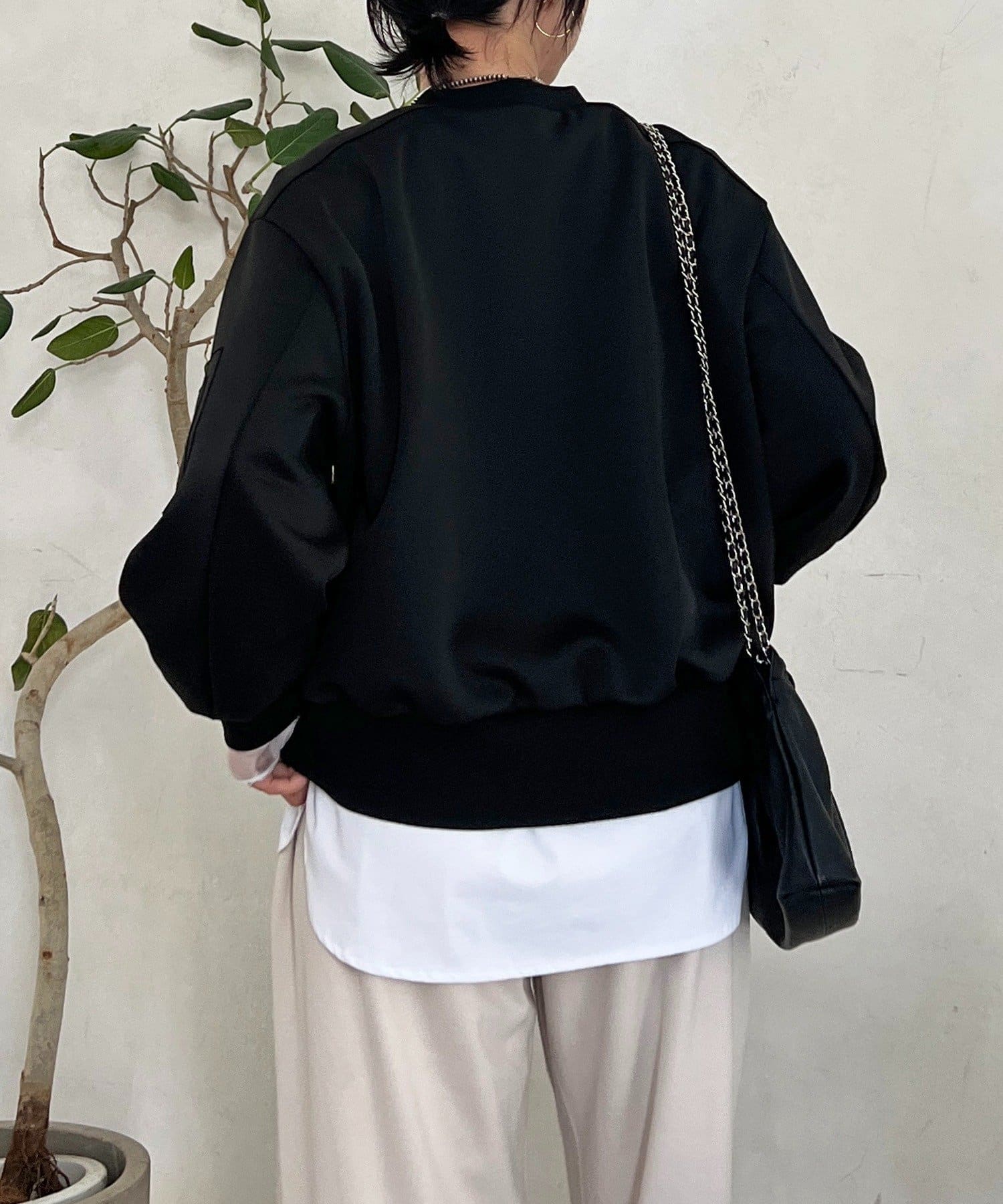 ・光沢ある素材でカジュアルアイテムに上品さをプラス