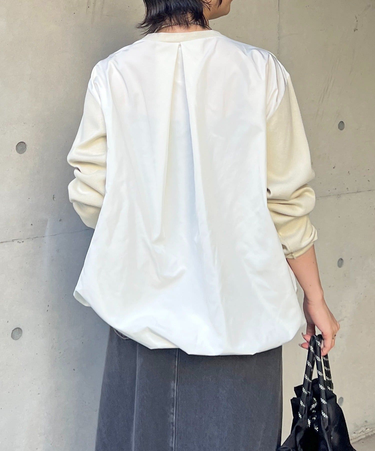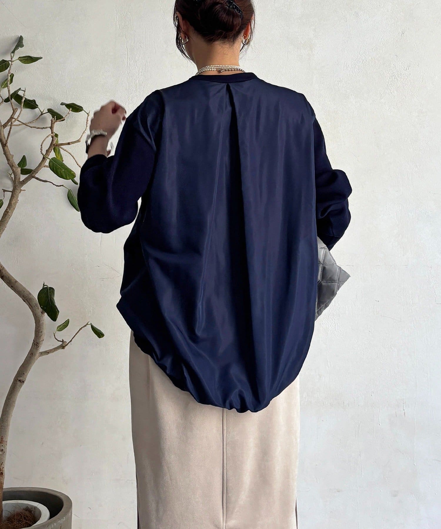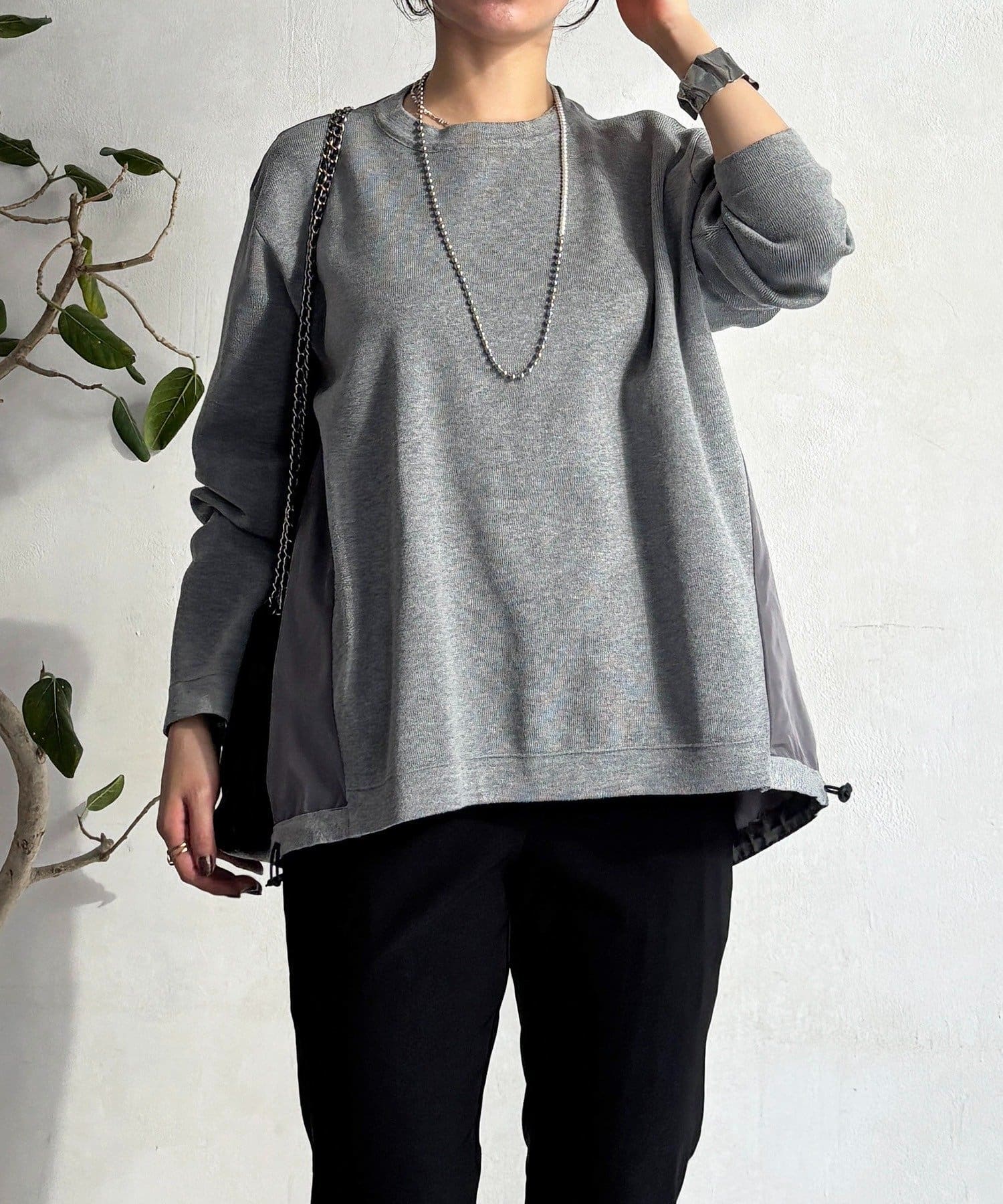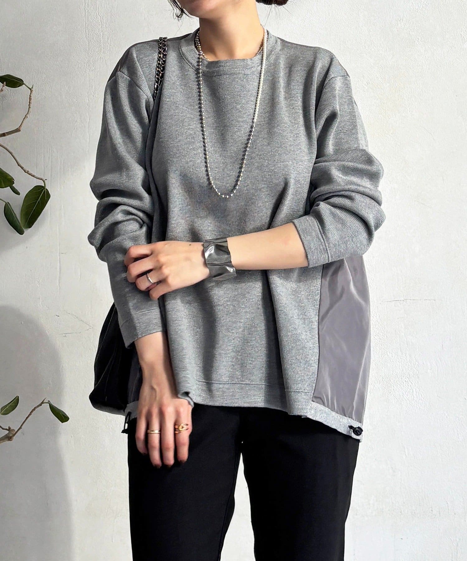 ニットとブラウス素材のドッキングで、一枚でオシャレに決まるニットプルオーバー