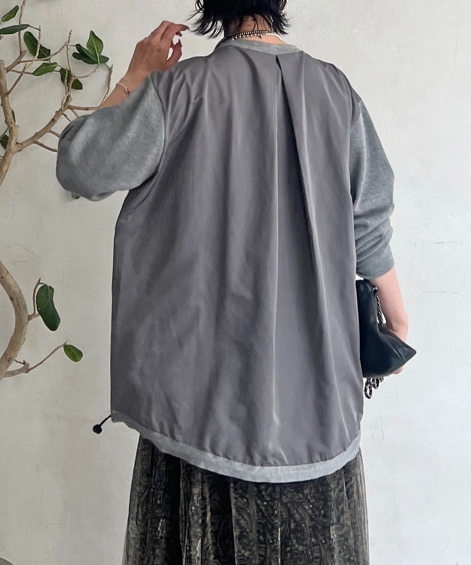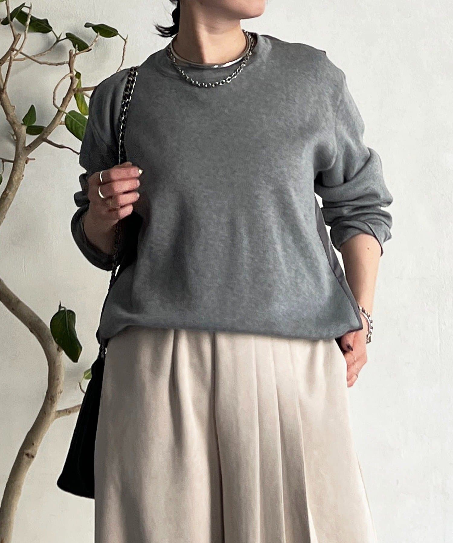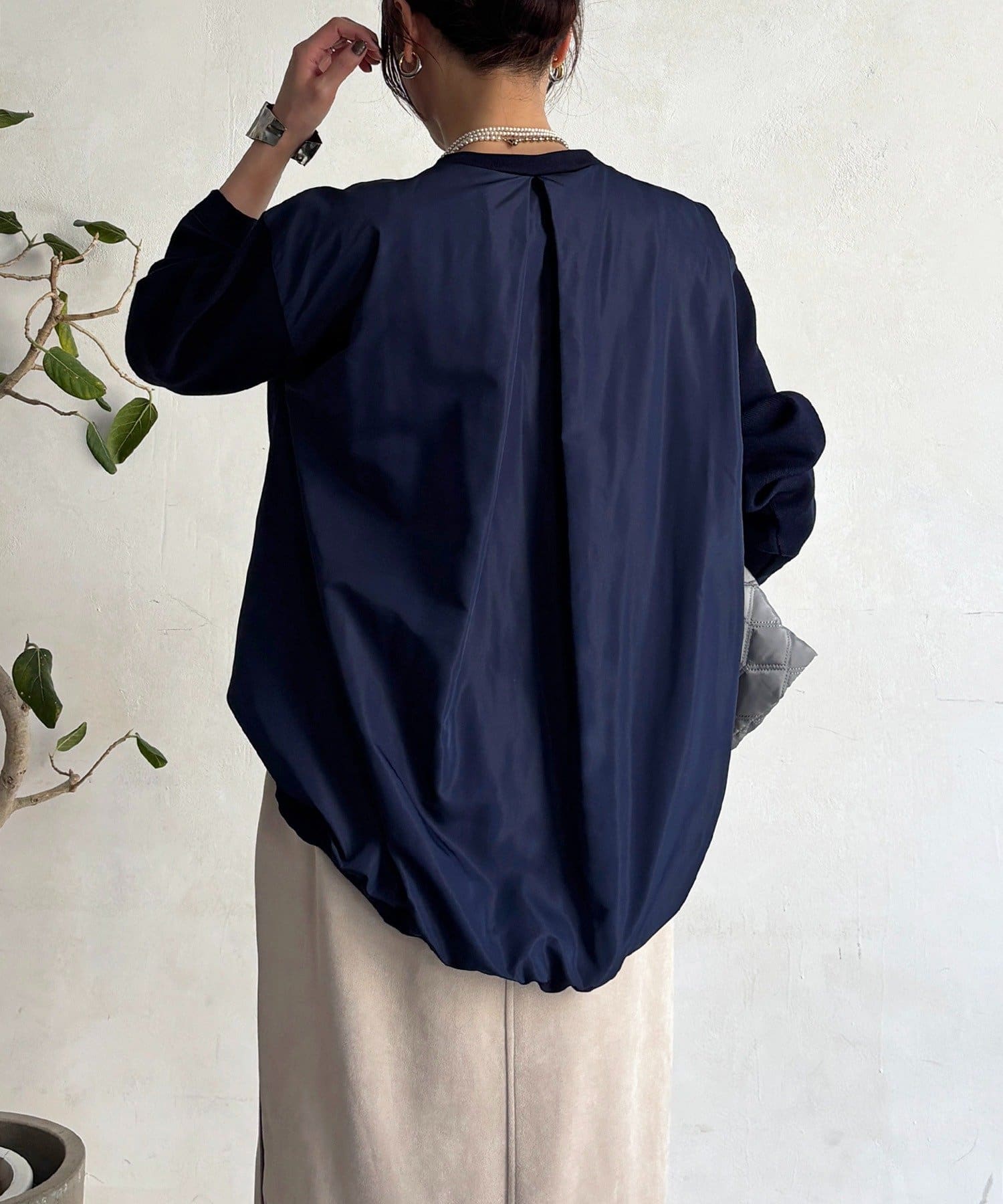 ニットとブラウス素材のドッキングで、一枚でオシャレに決まるニットプルオーバー