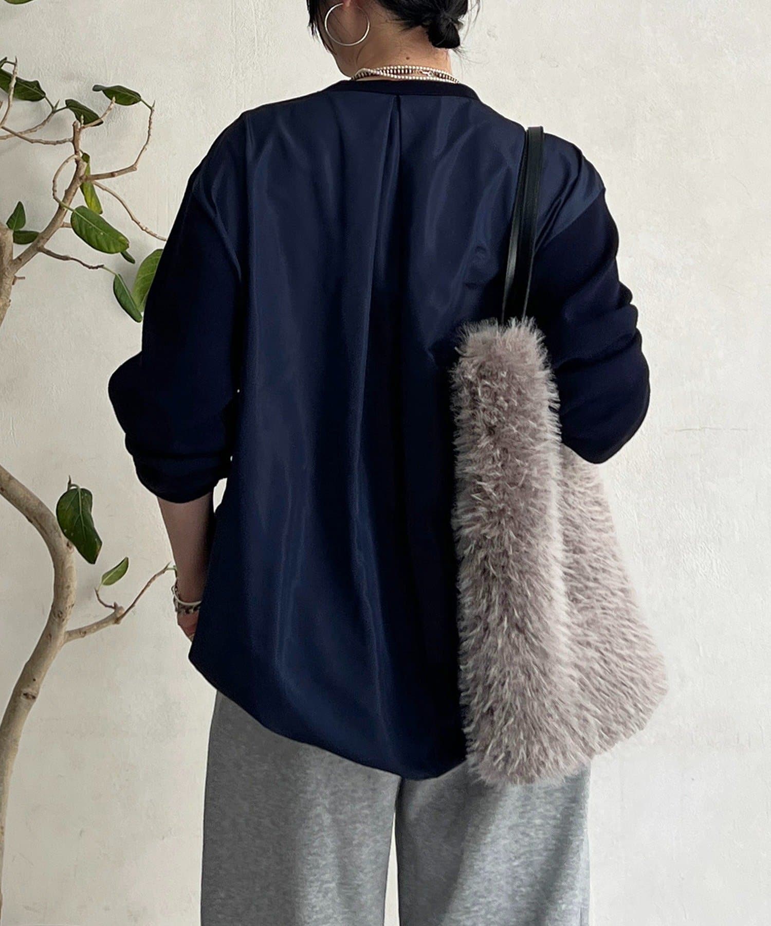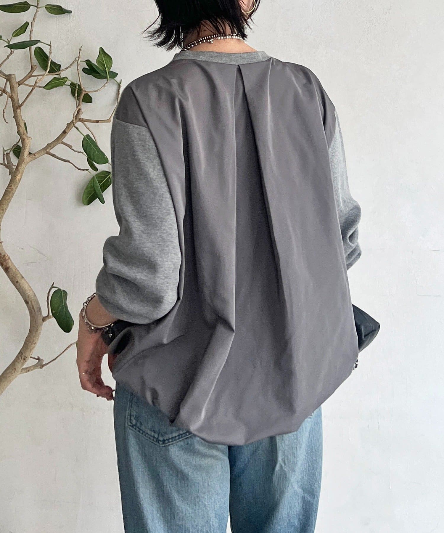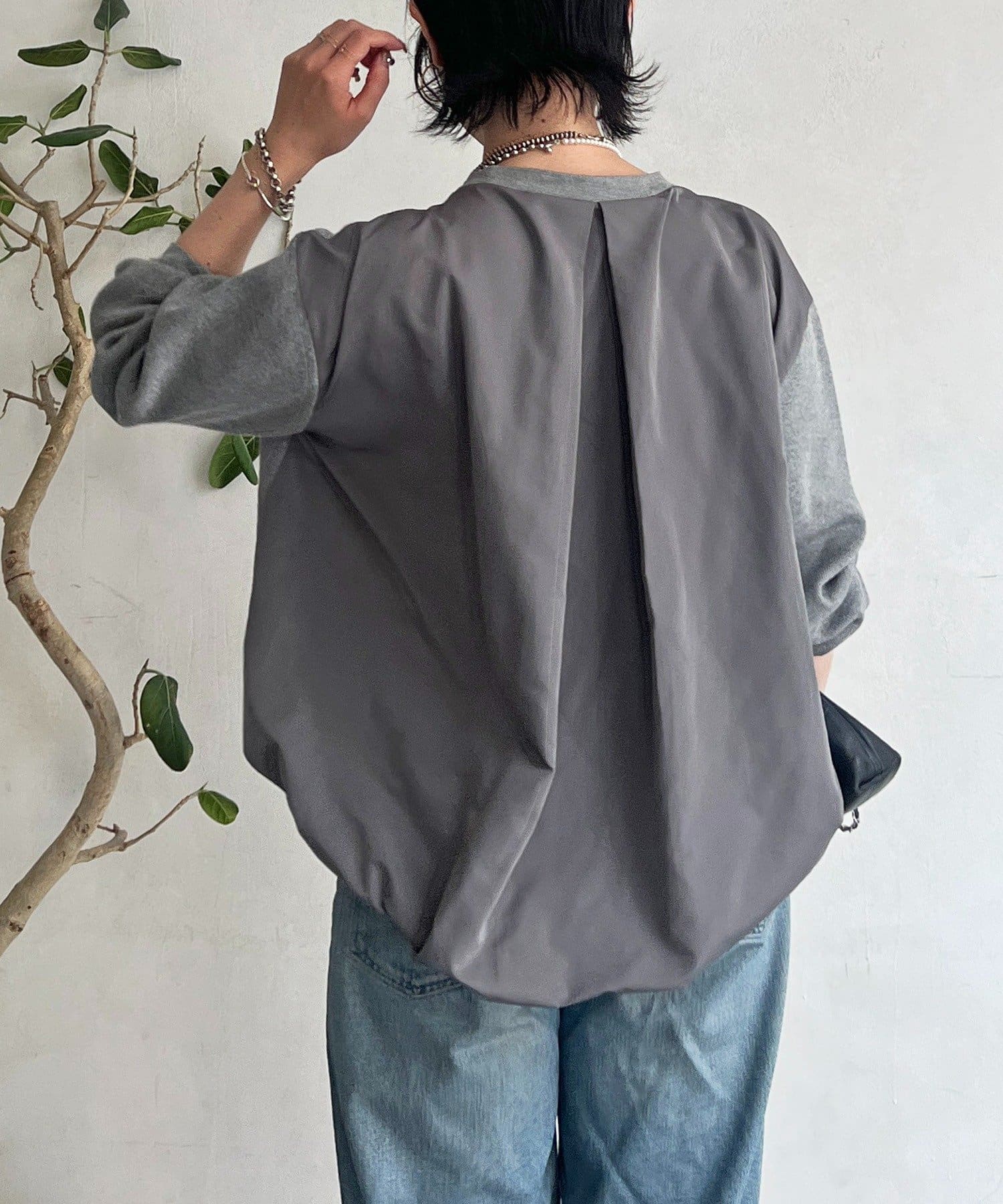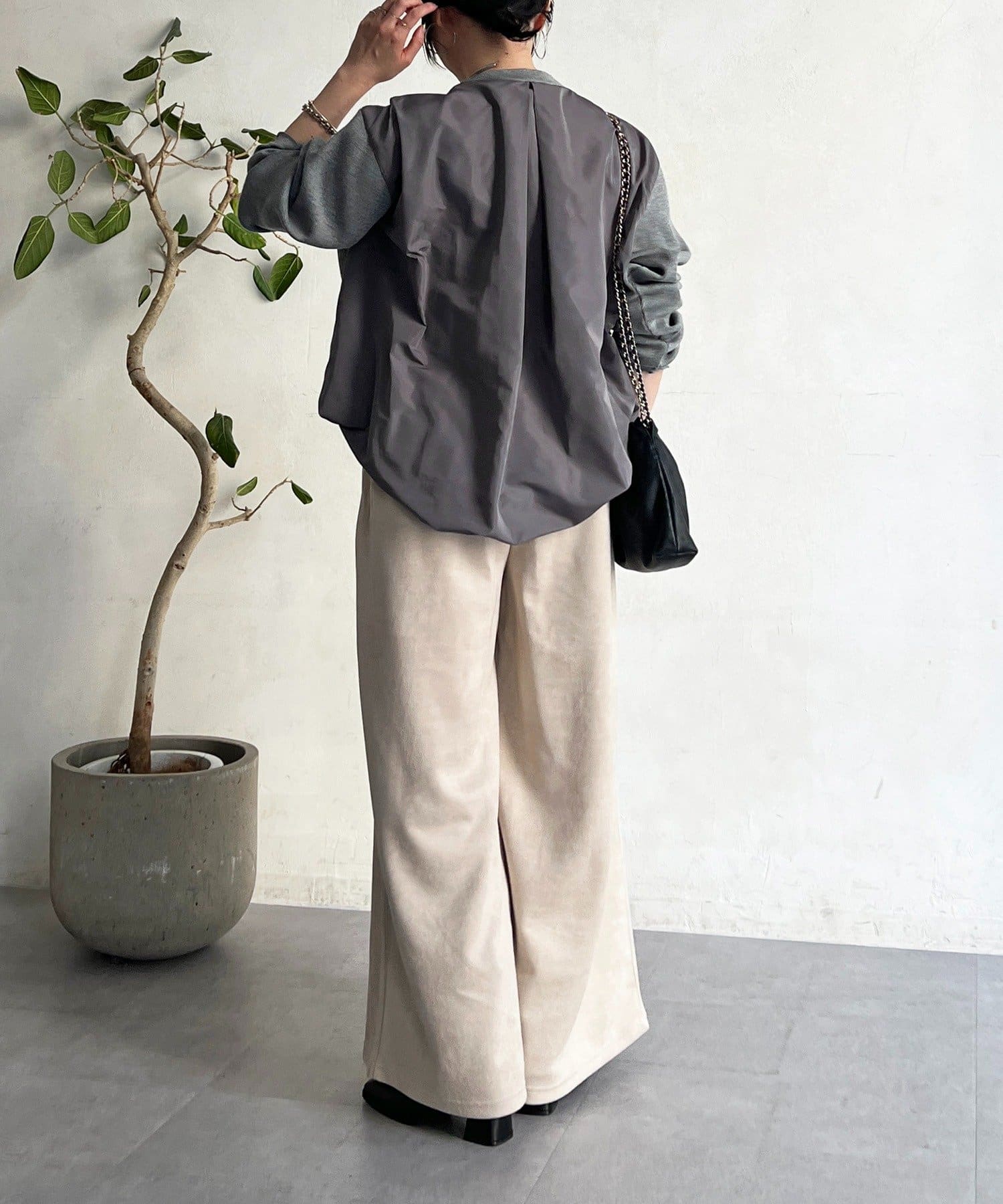 ニットとブラウス素材のドッキングで、一枚でオシャレに決まるニットプルオーバー