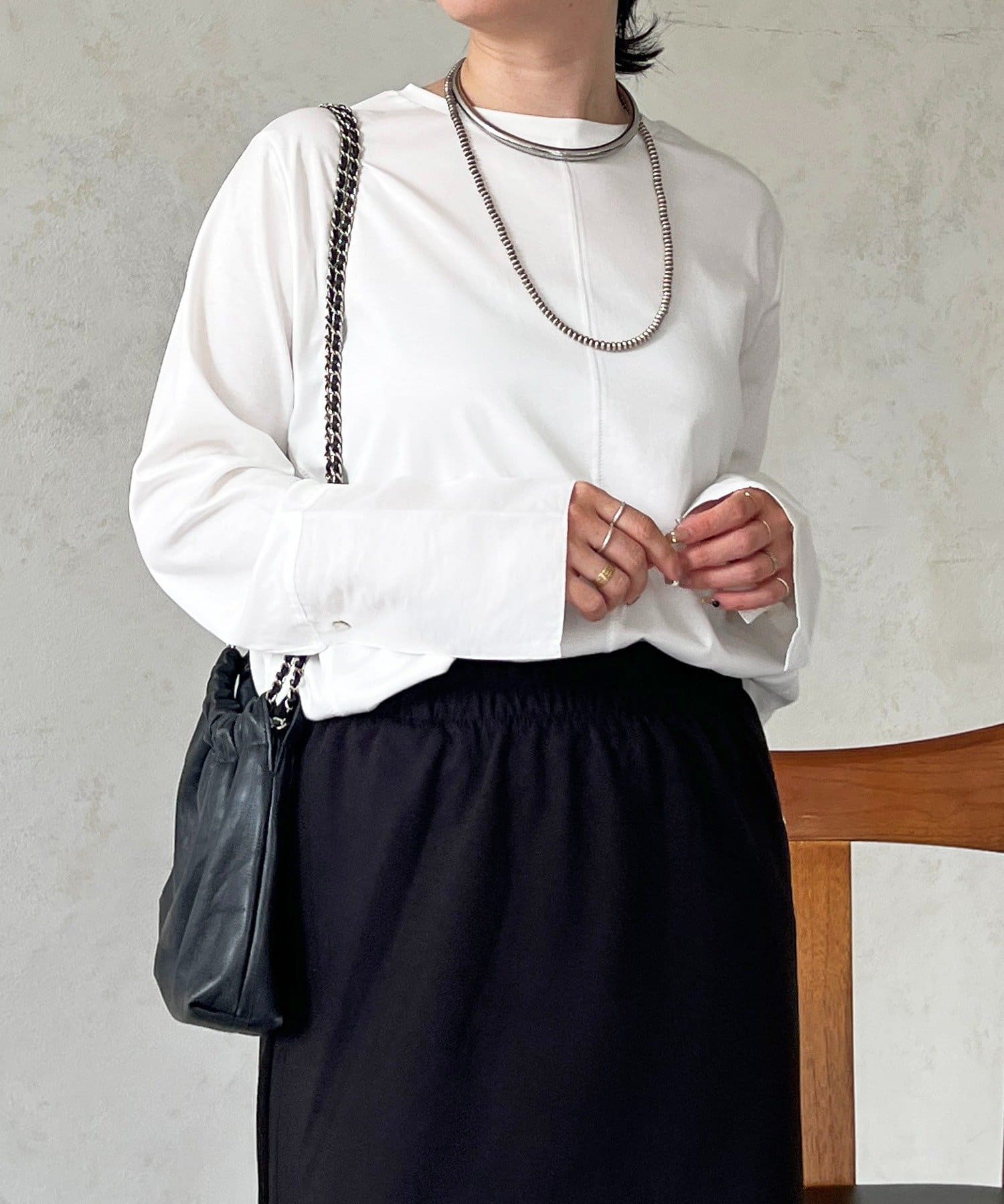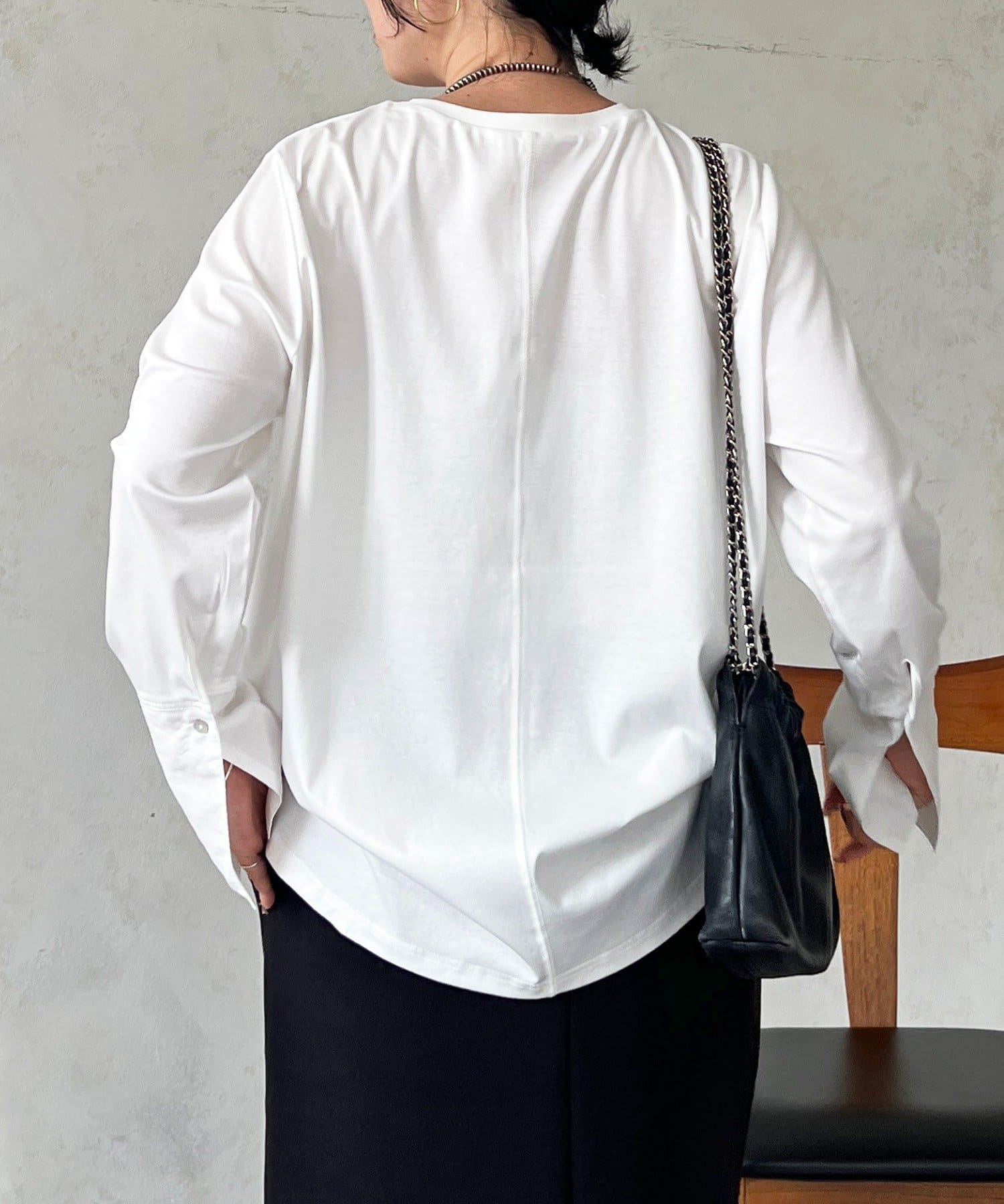 インナーに最適!シャツカフスデザインがポイントのシンプルカットソー