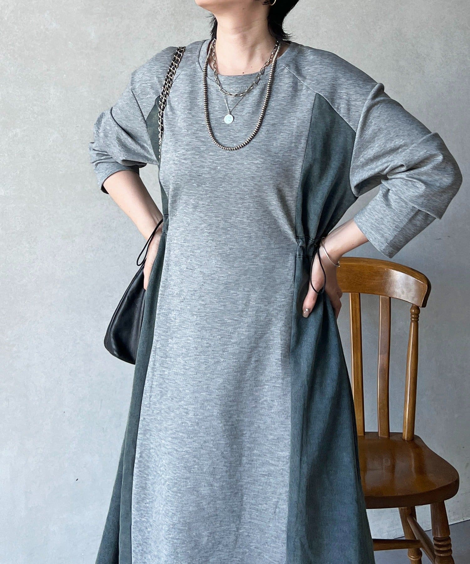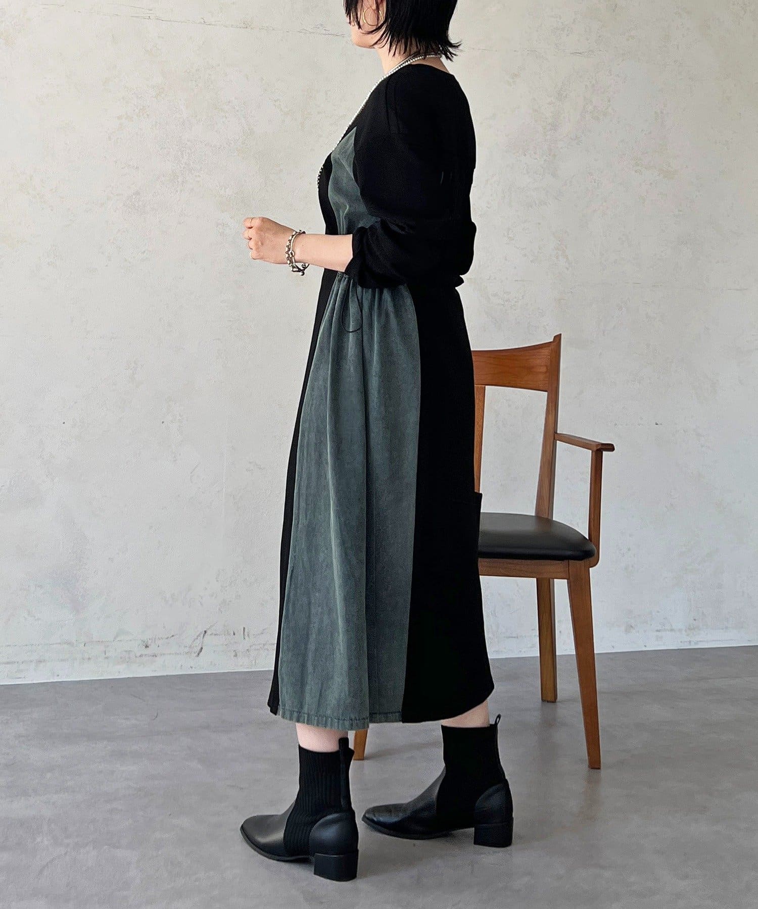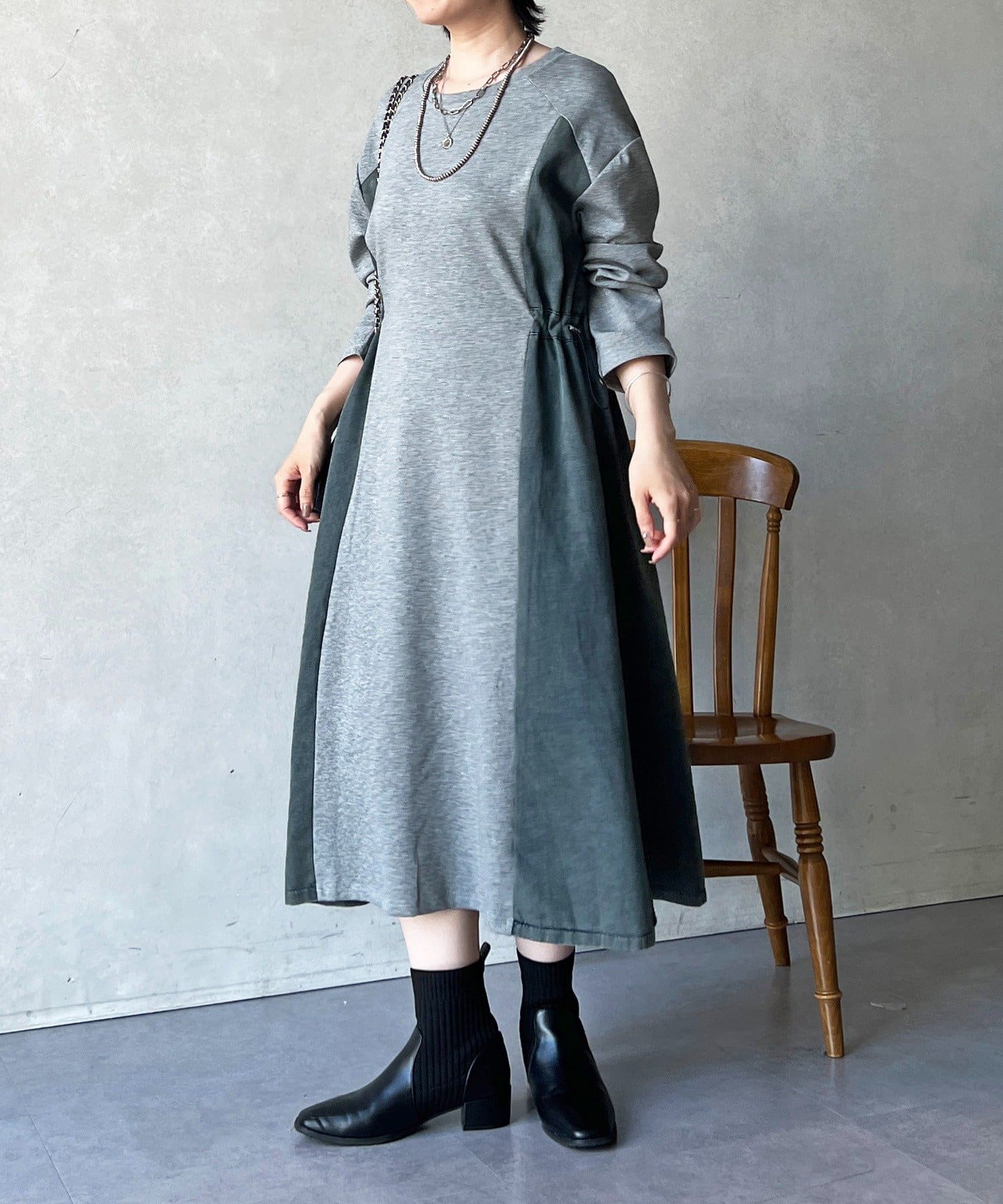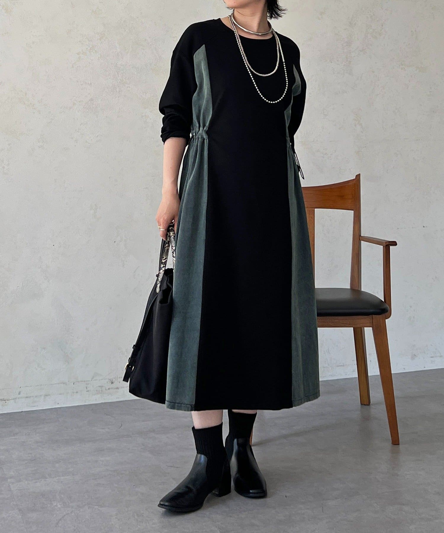 ・異素材の組み合わせで一枚でもお洒落に見えるデザインワンピ
