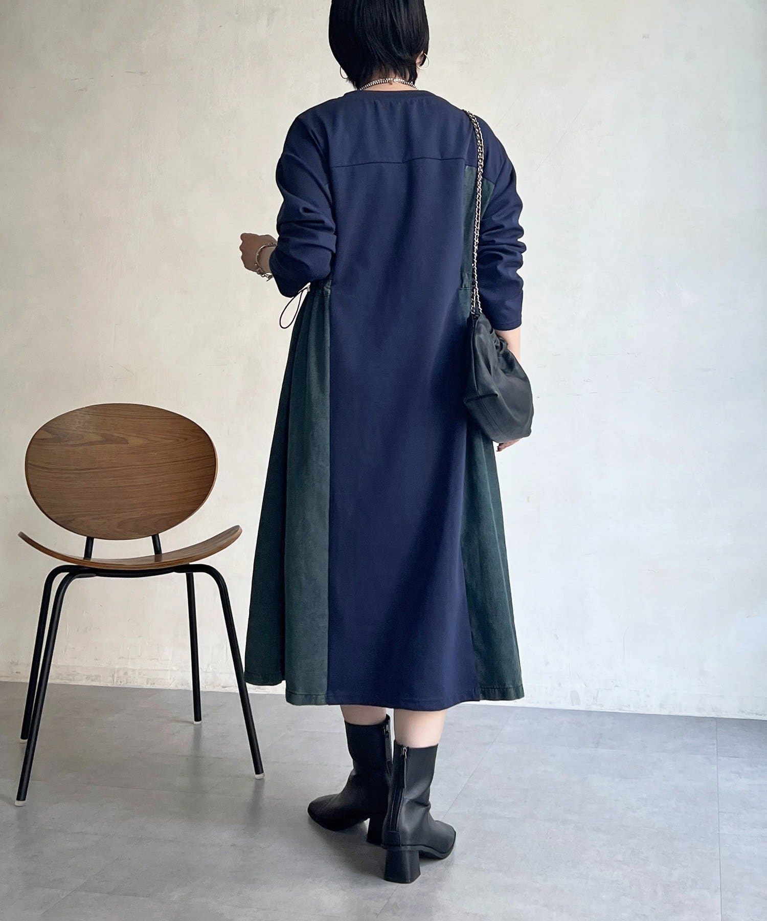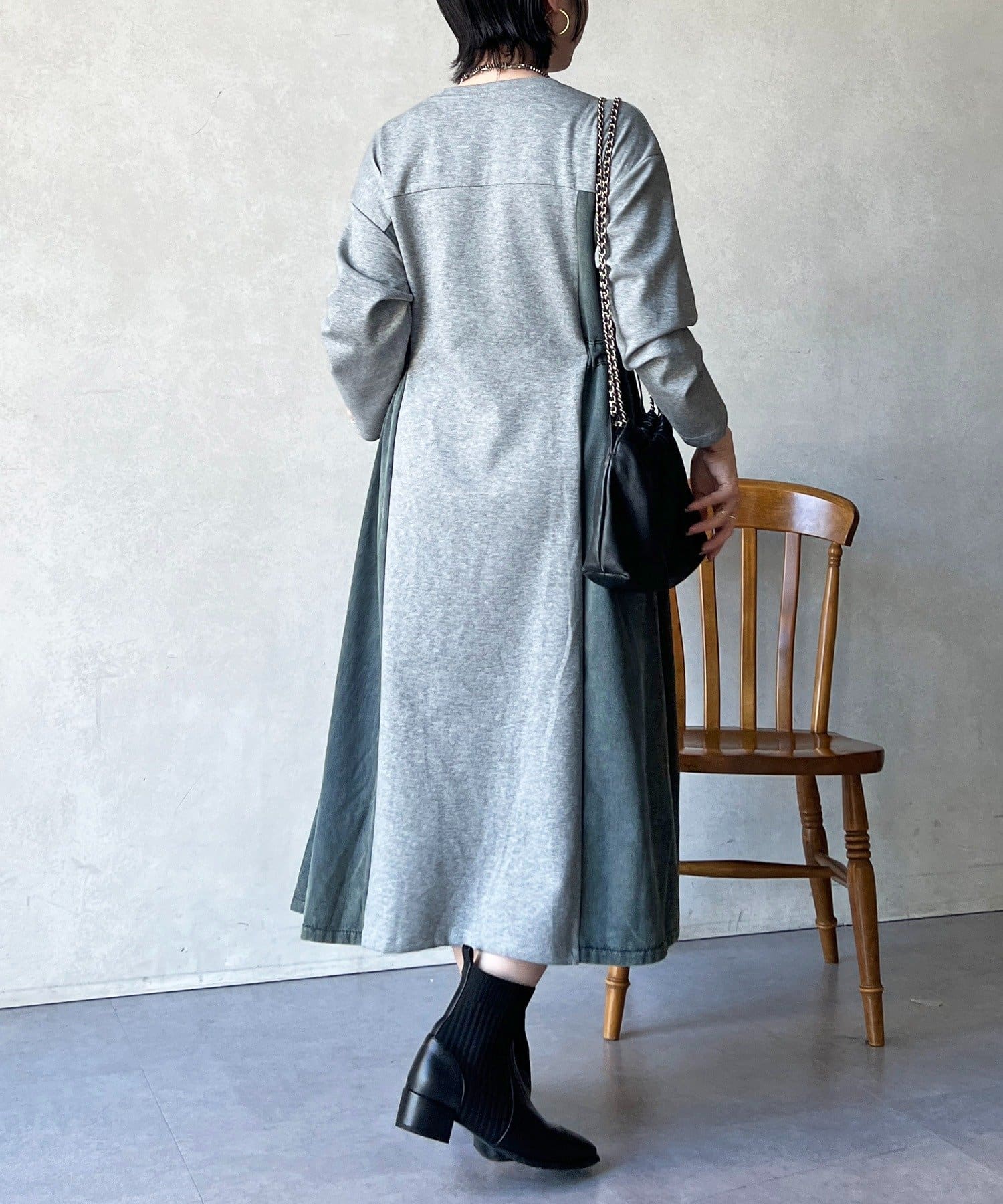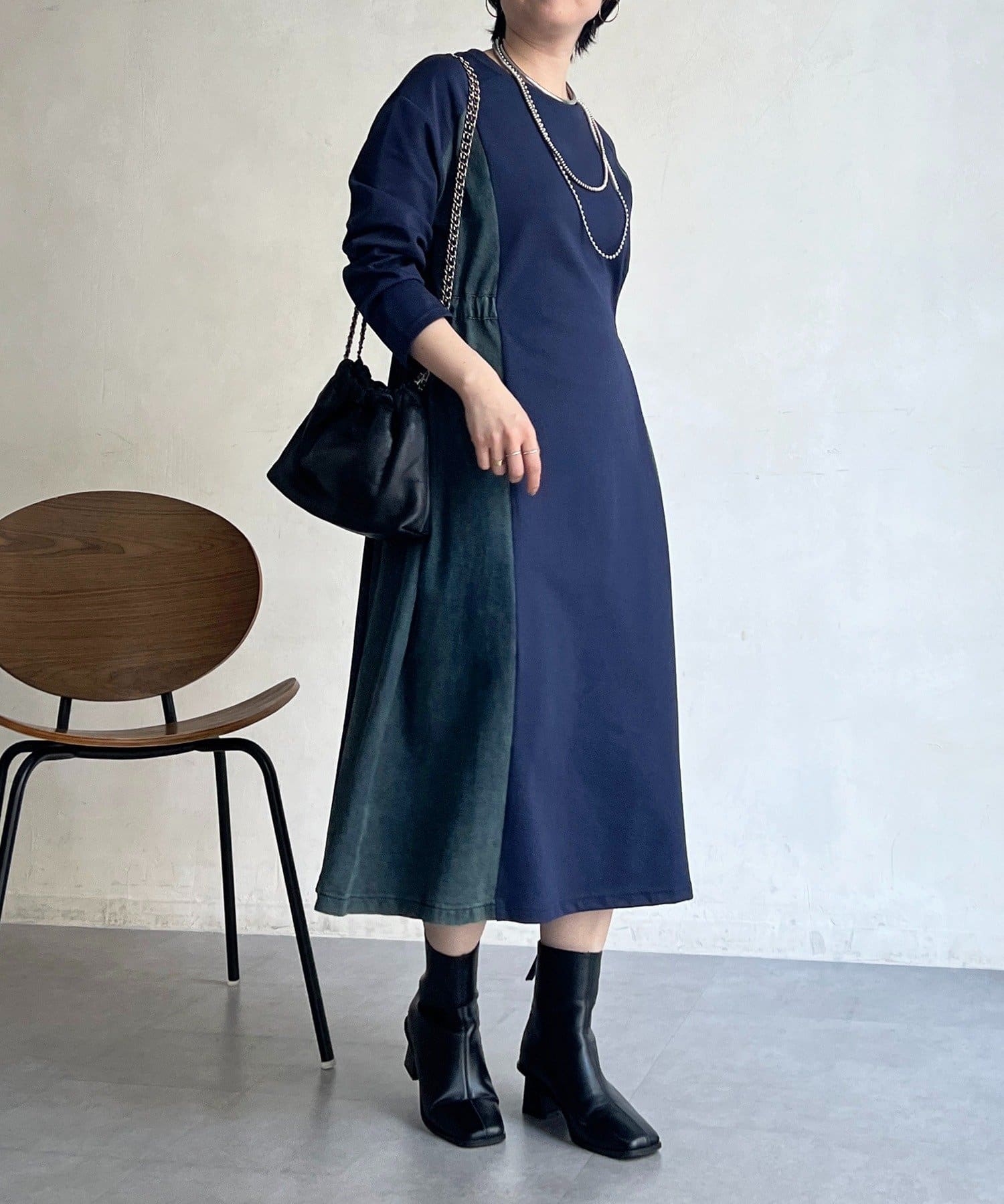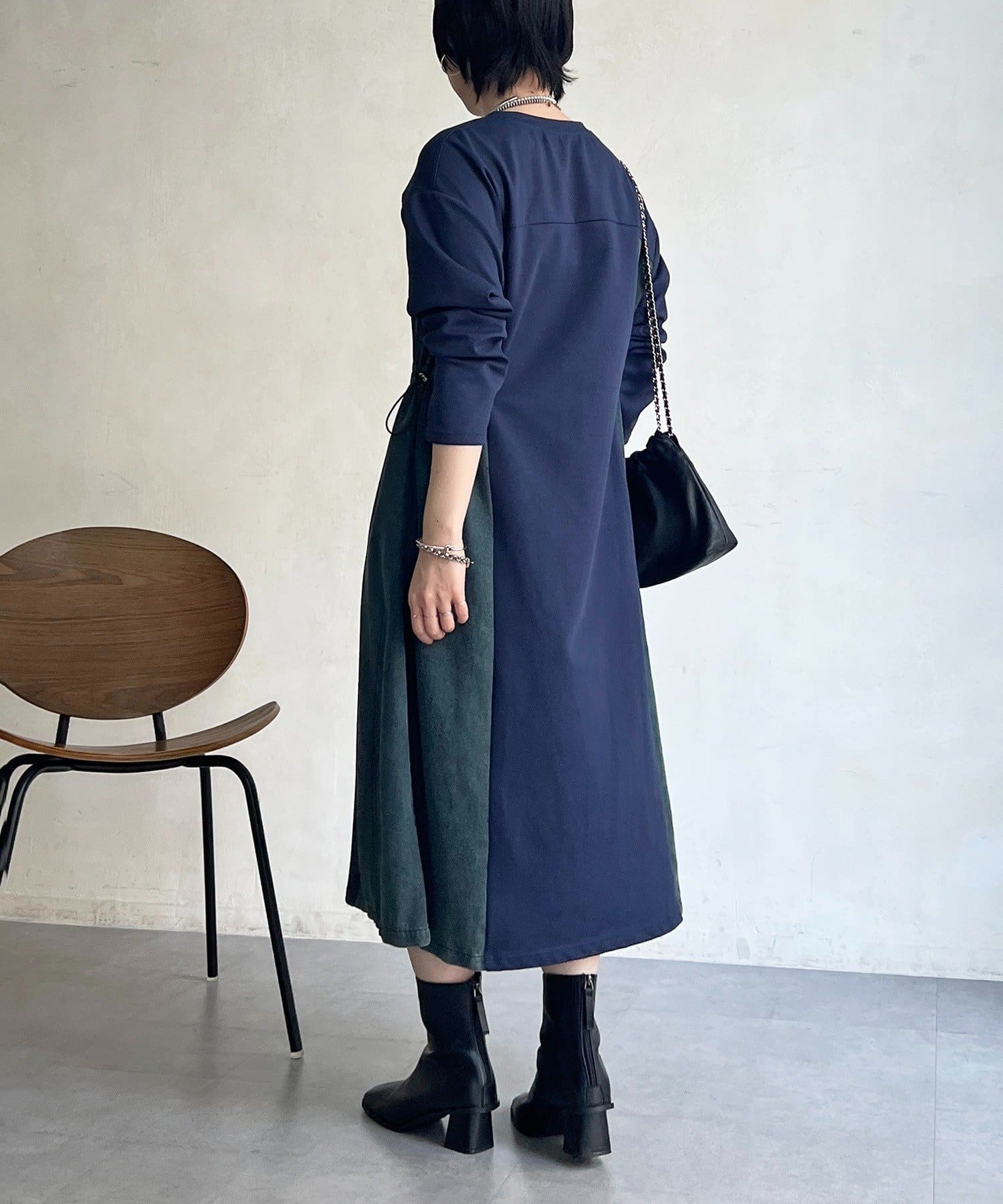 ・異素材の組み合わせで一枚でもお洒落に見えるデザインワンピ