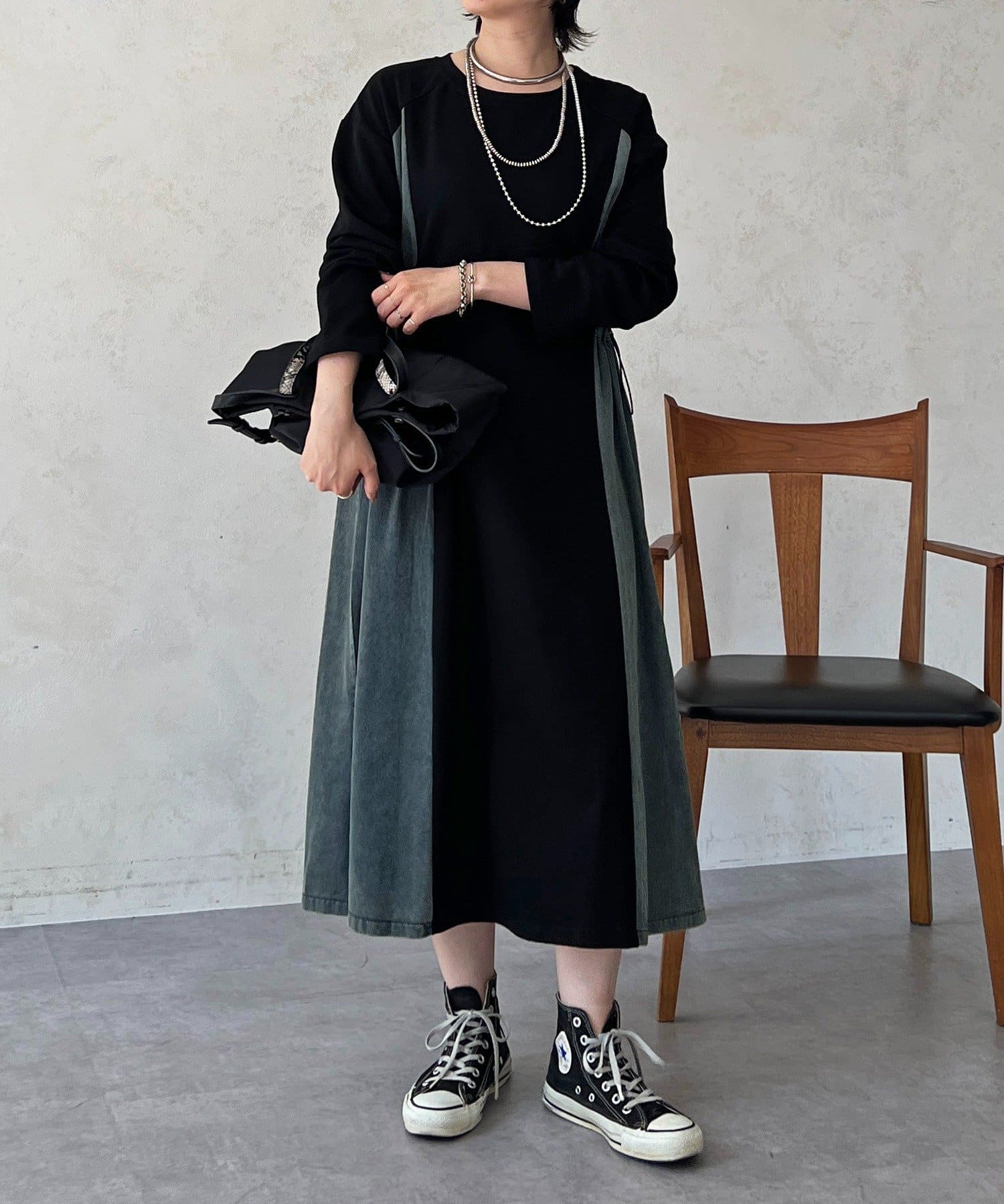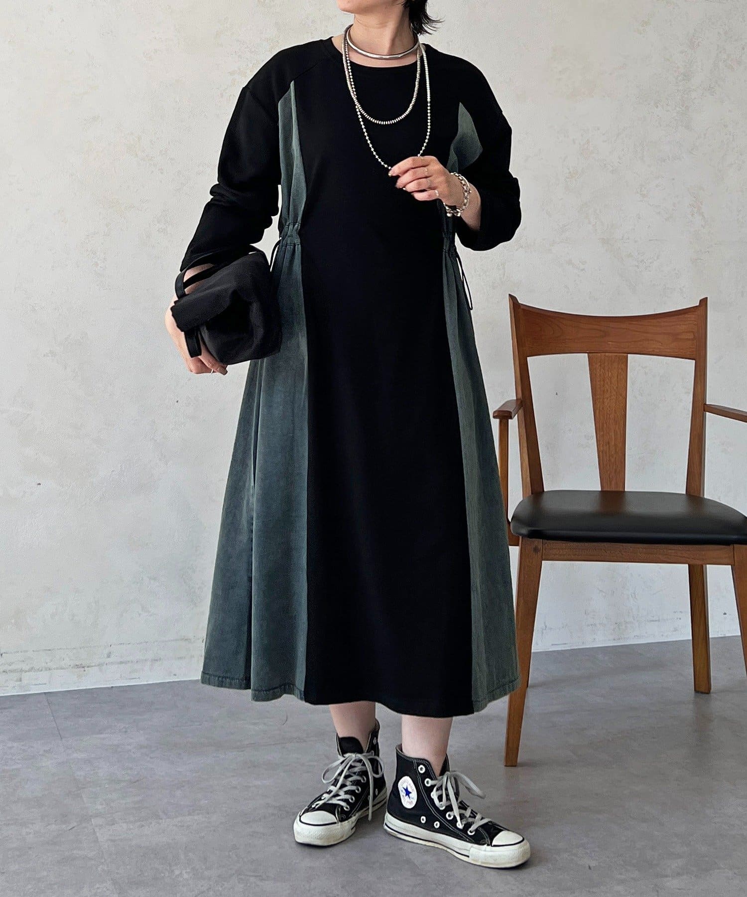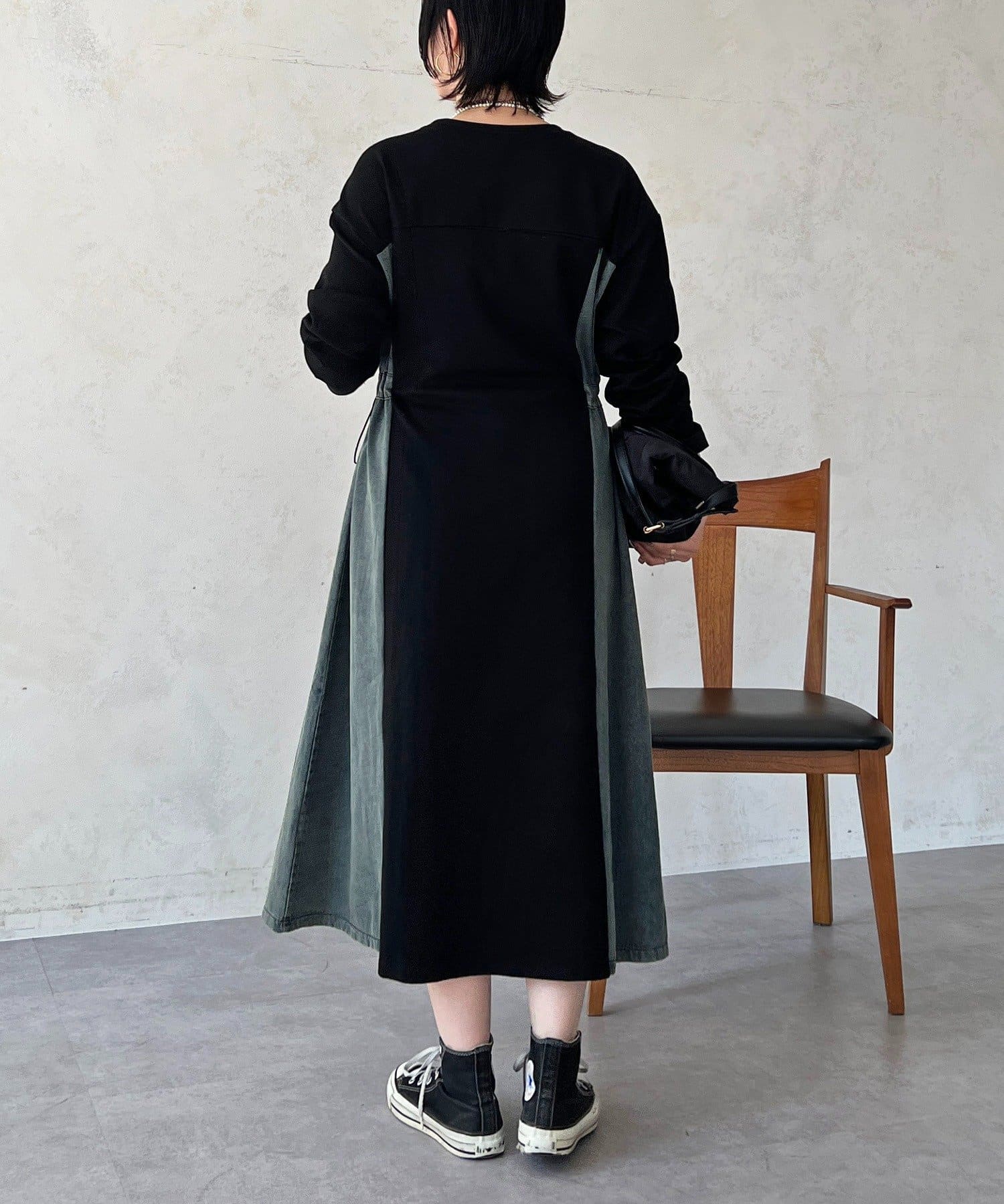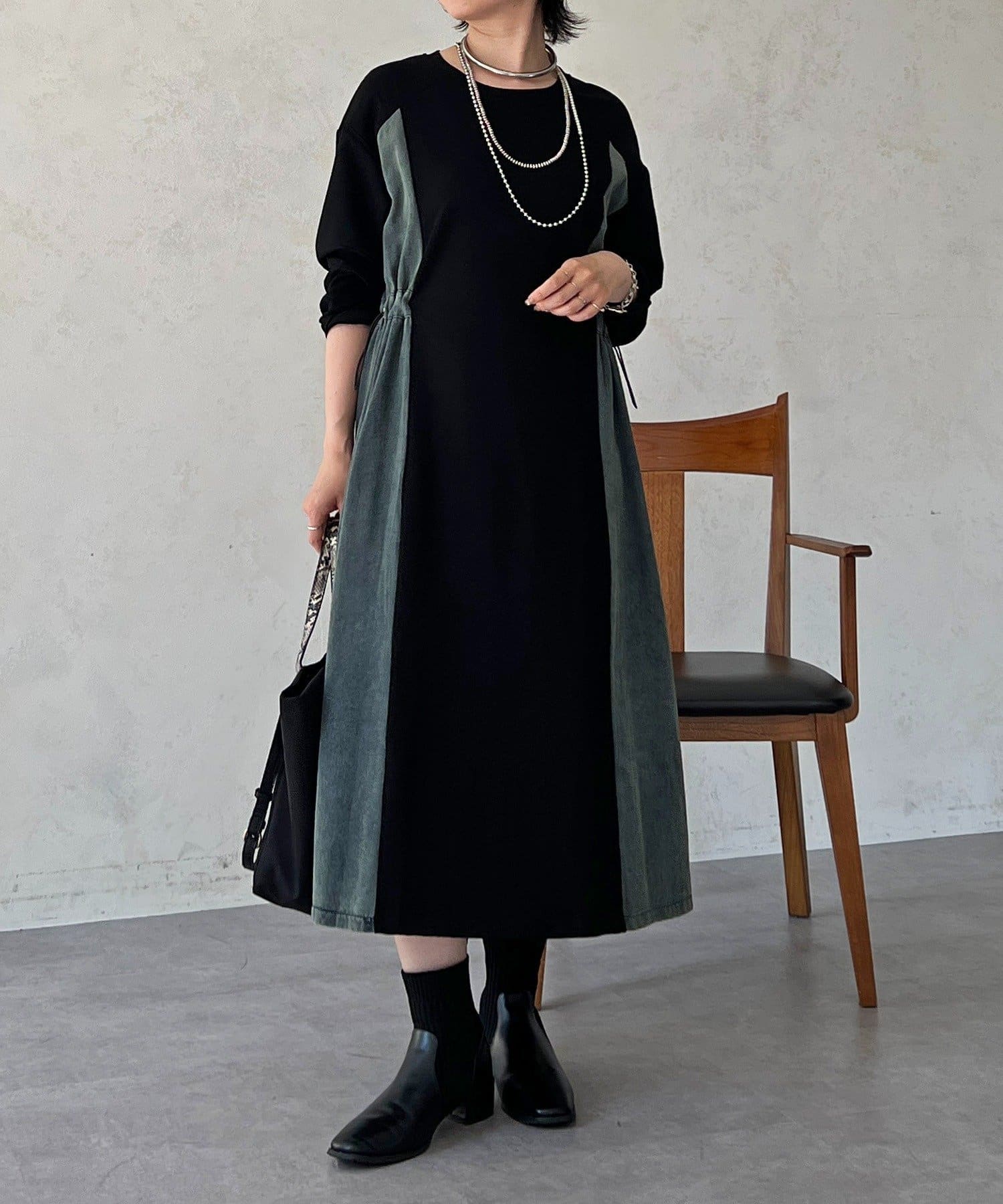 デニムドッキングデザインで着るだけでオシャレ×ウエスト細見えワンピ!