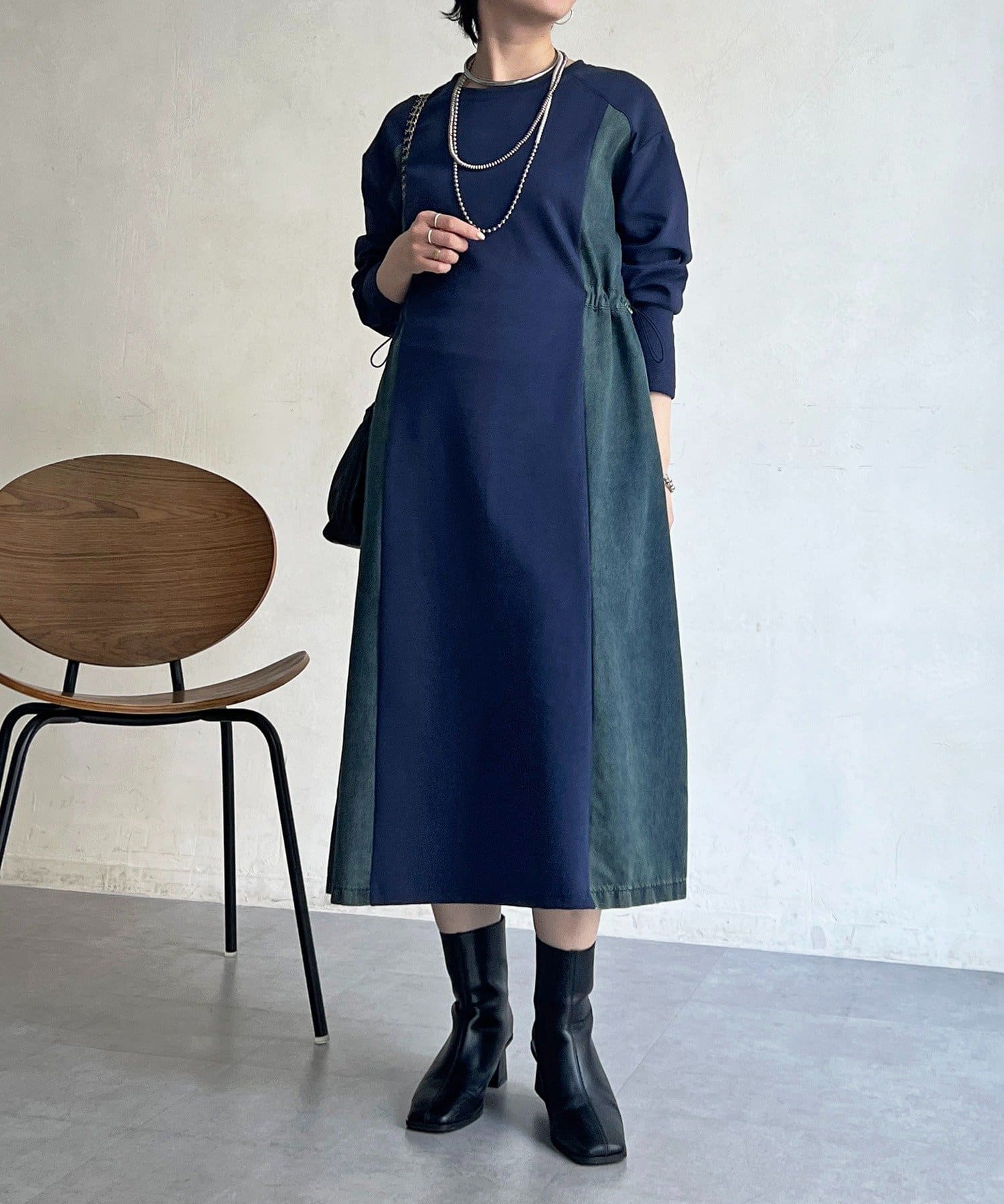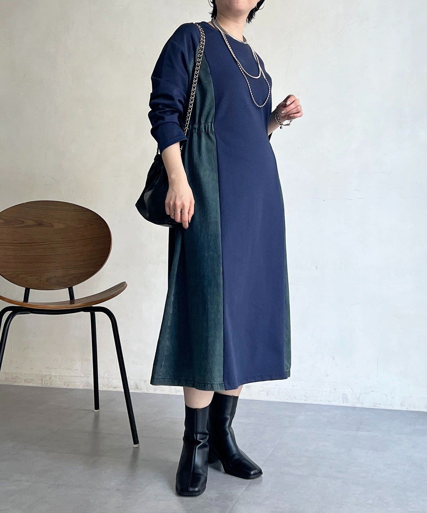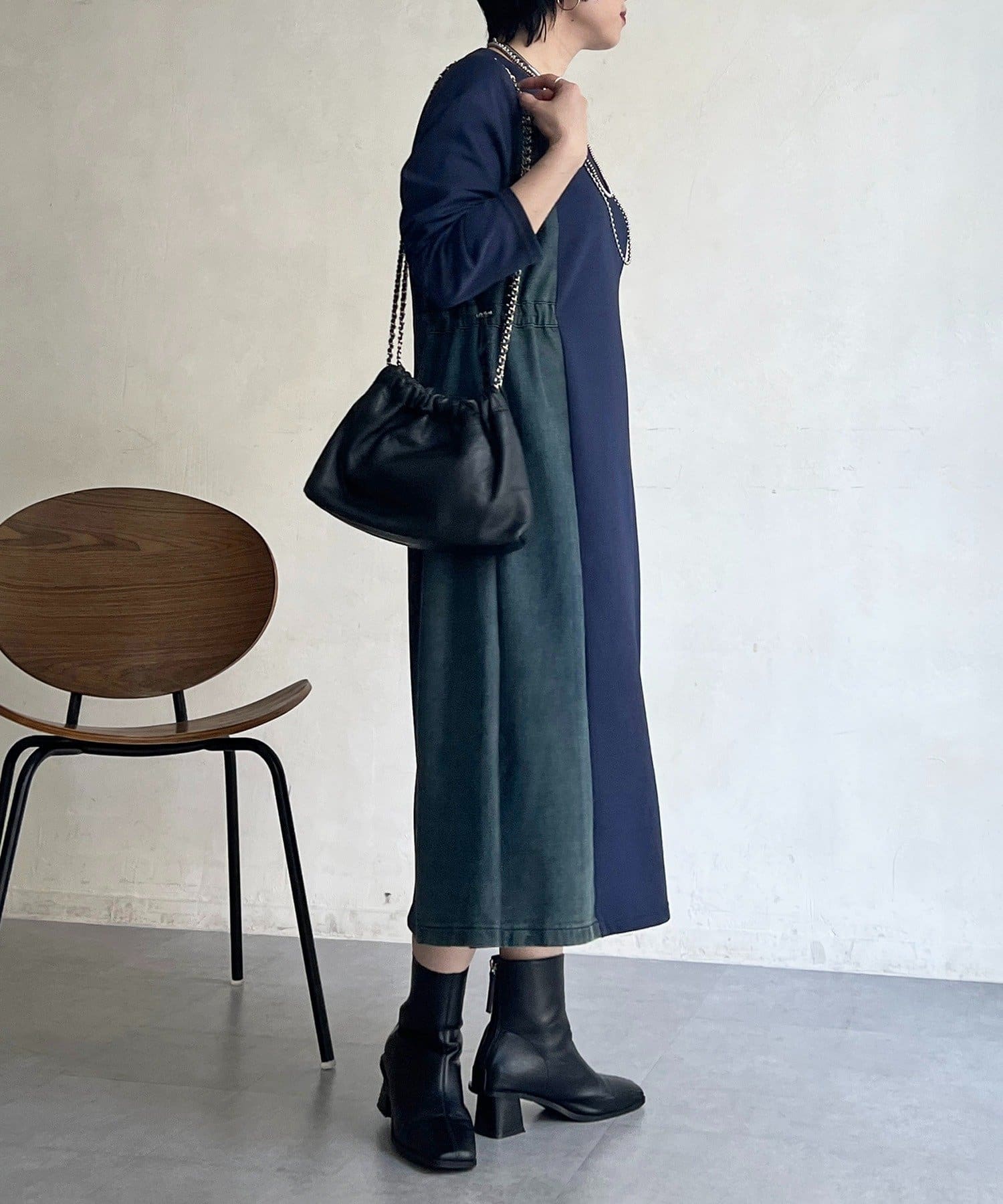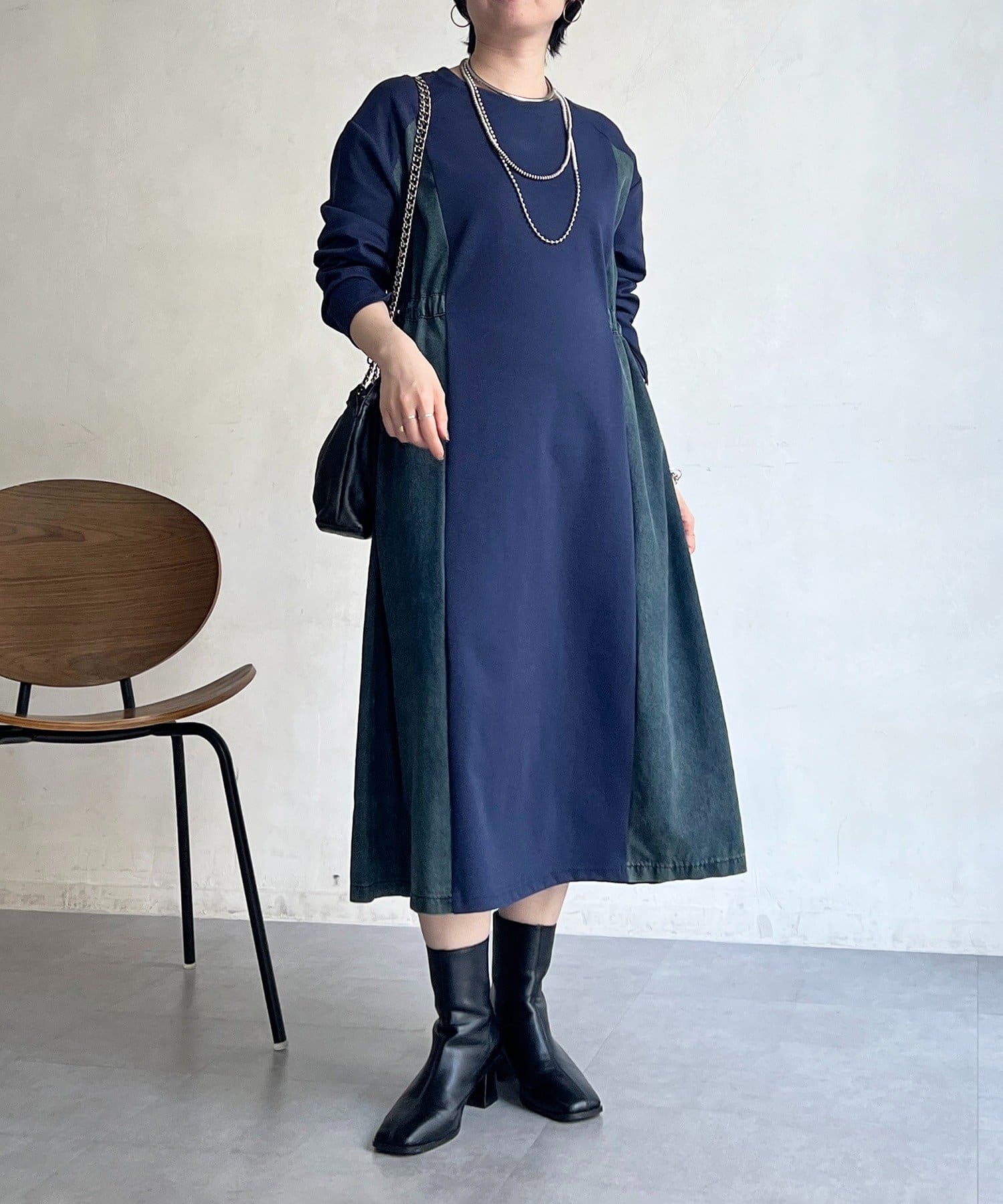デニムドッキングデザインで着るだけでオシャレ×ウエスト細見えワンピ!