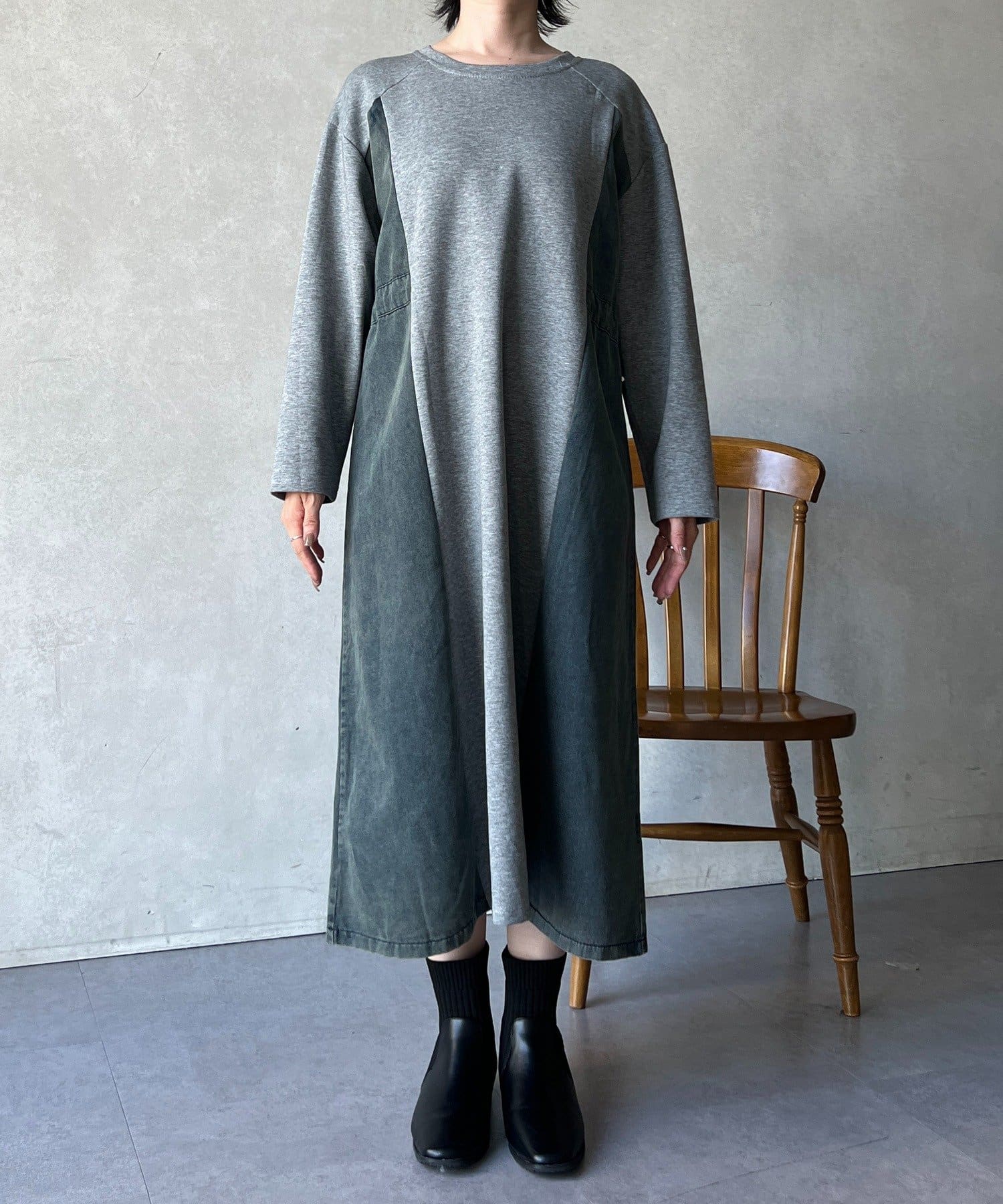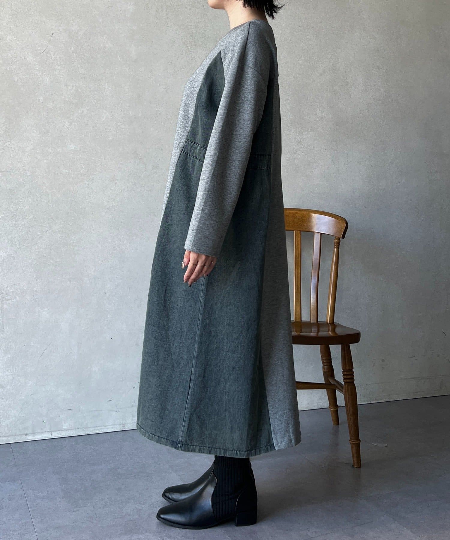 【新色追加】デニム切替ワンピース