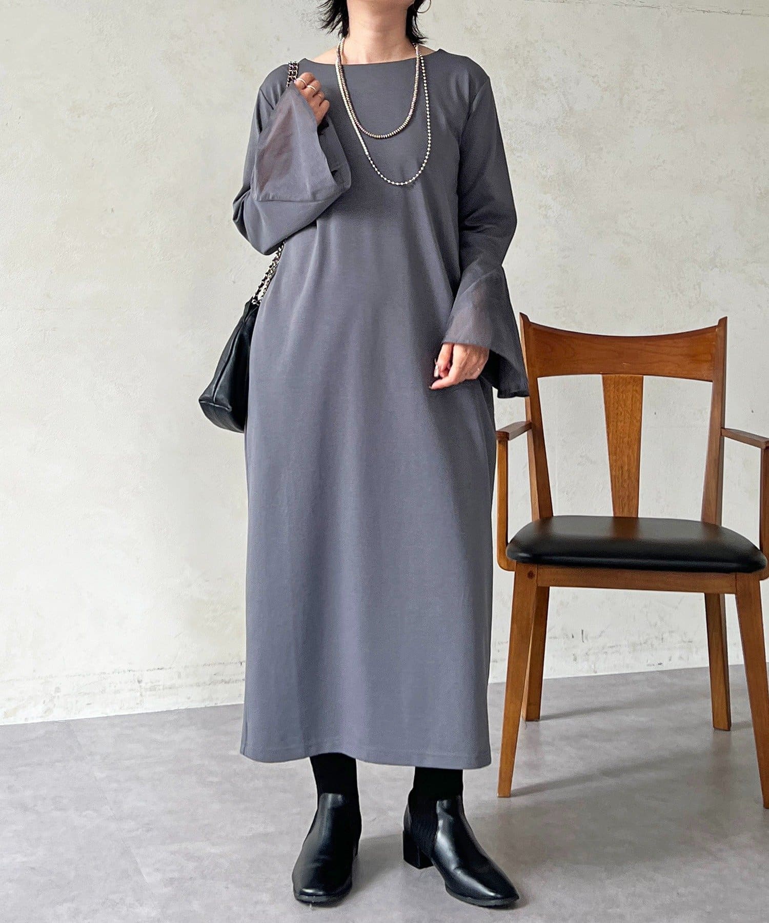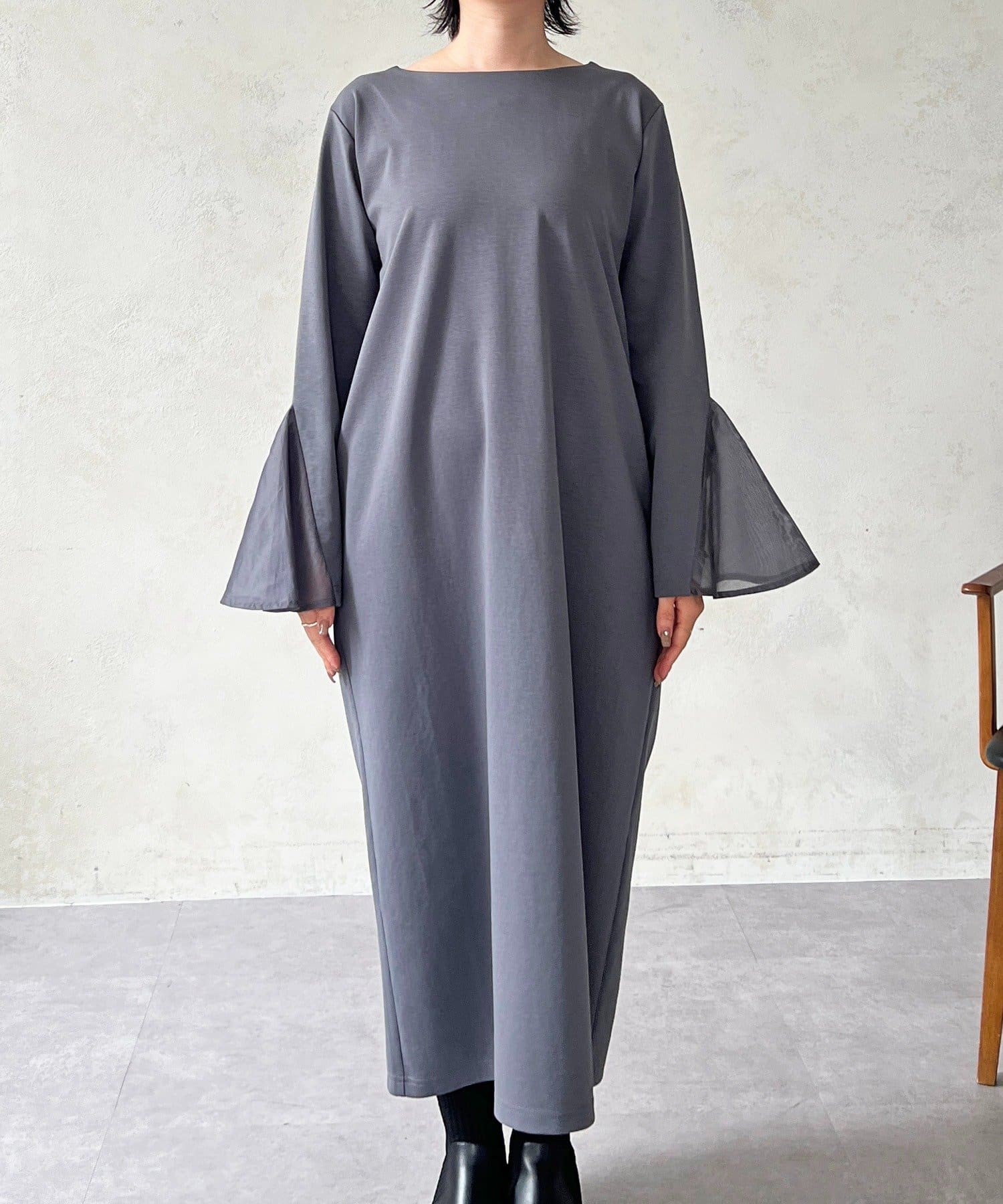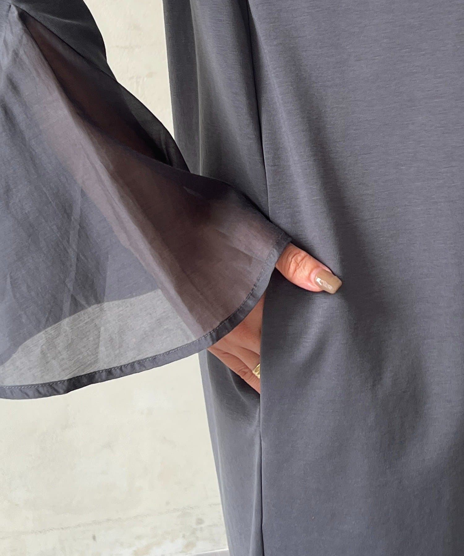 ・袖口の切替部分にシアー素材を使用した、コクーンシルエットワンピ