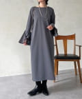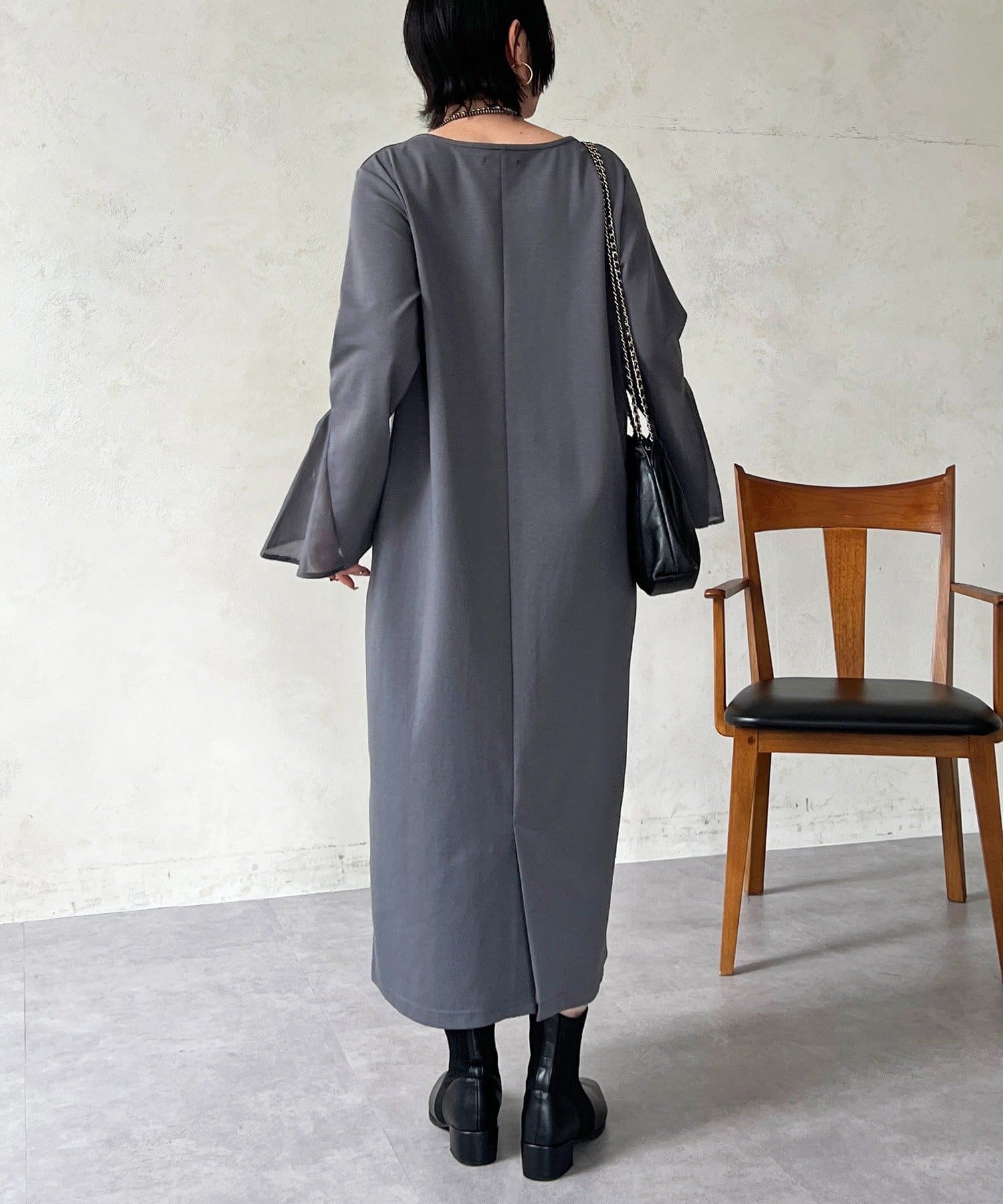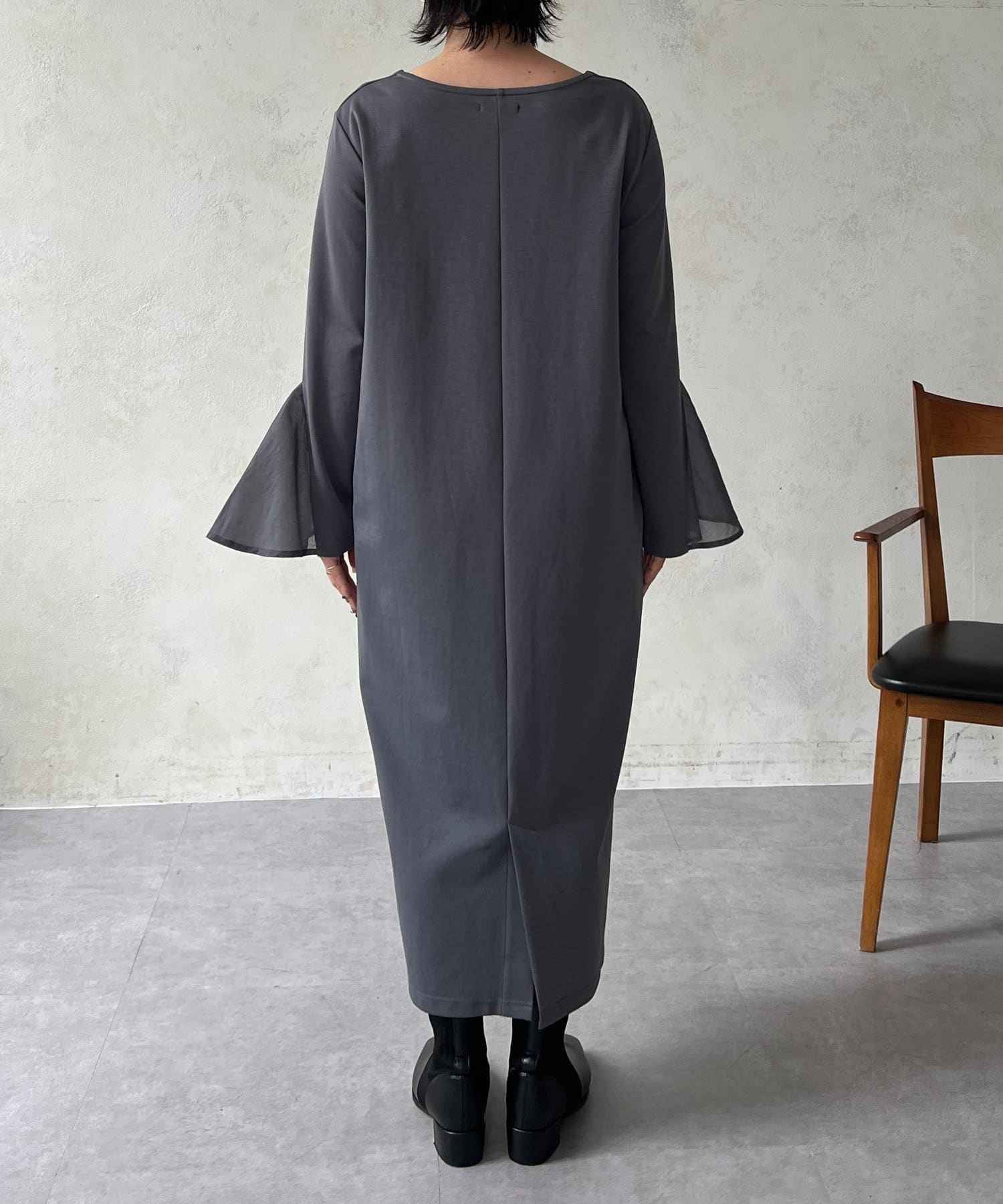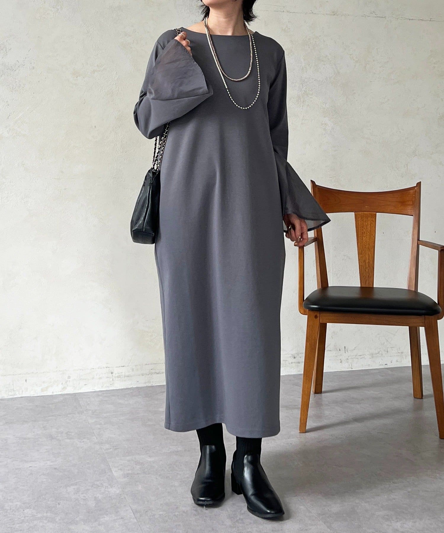 ・袖口の切替部分にシアー素材を使用した、コクーンシルエットワンピ