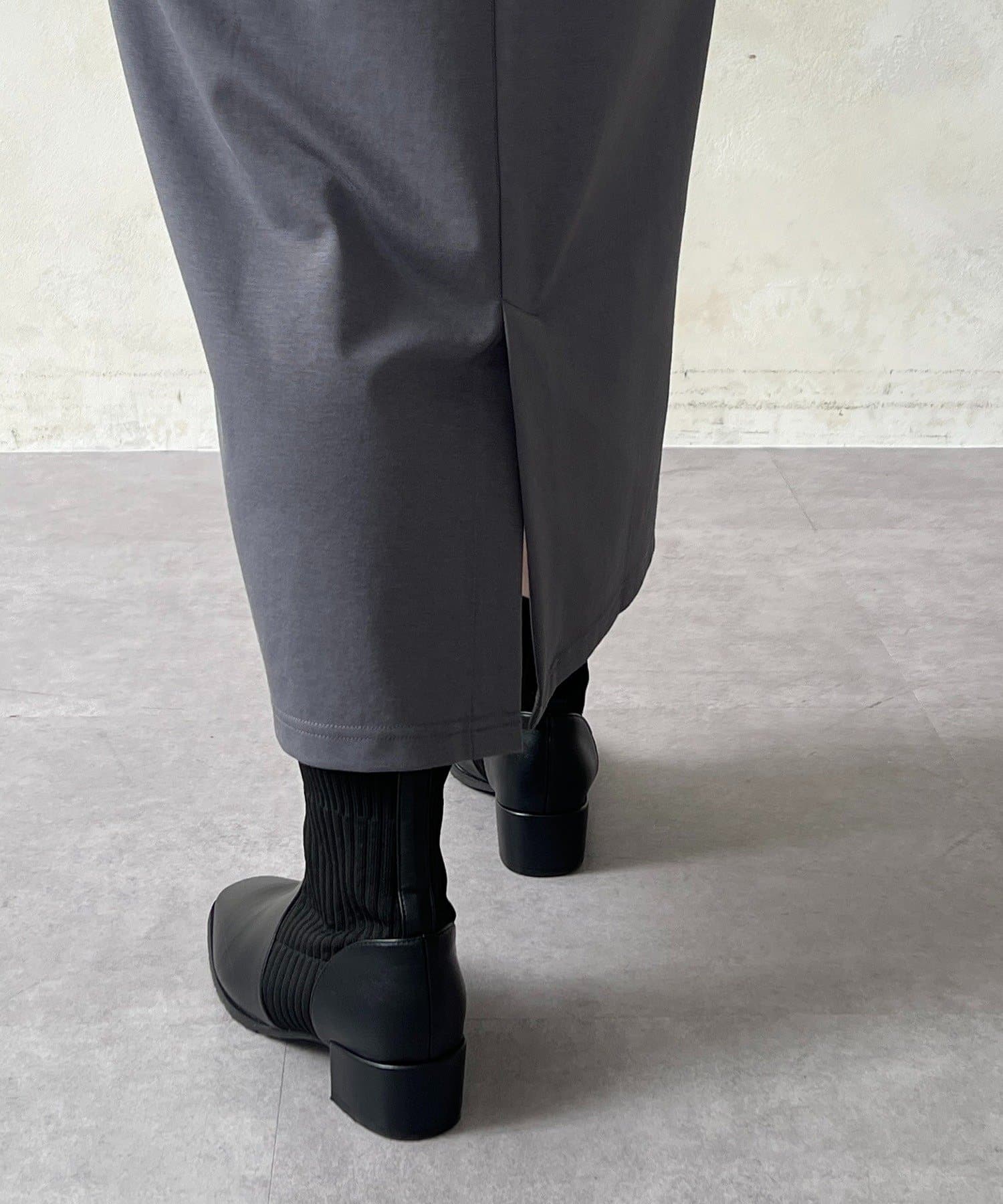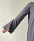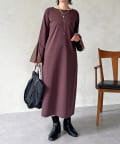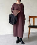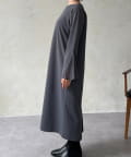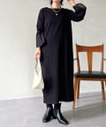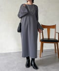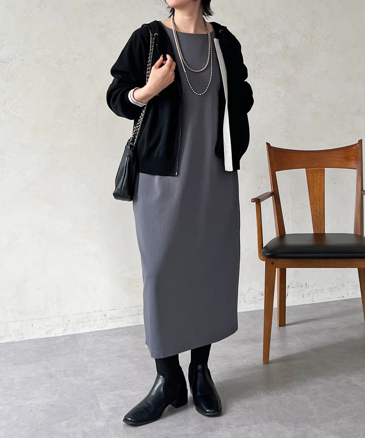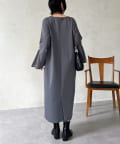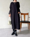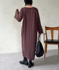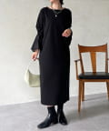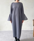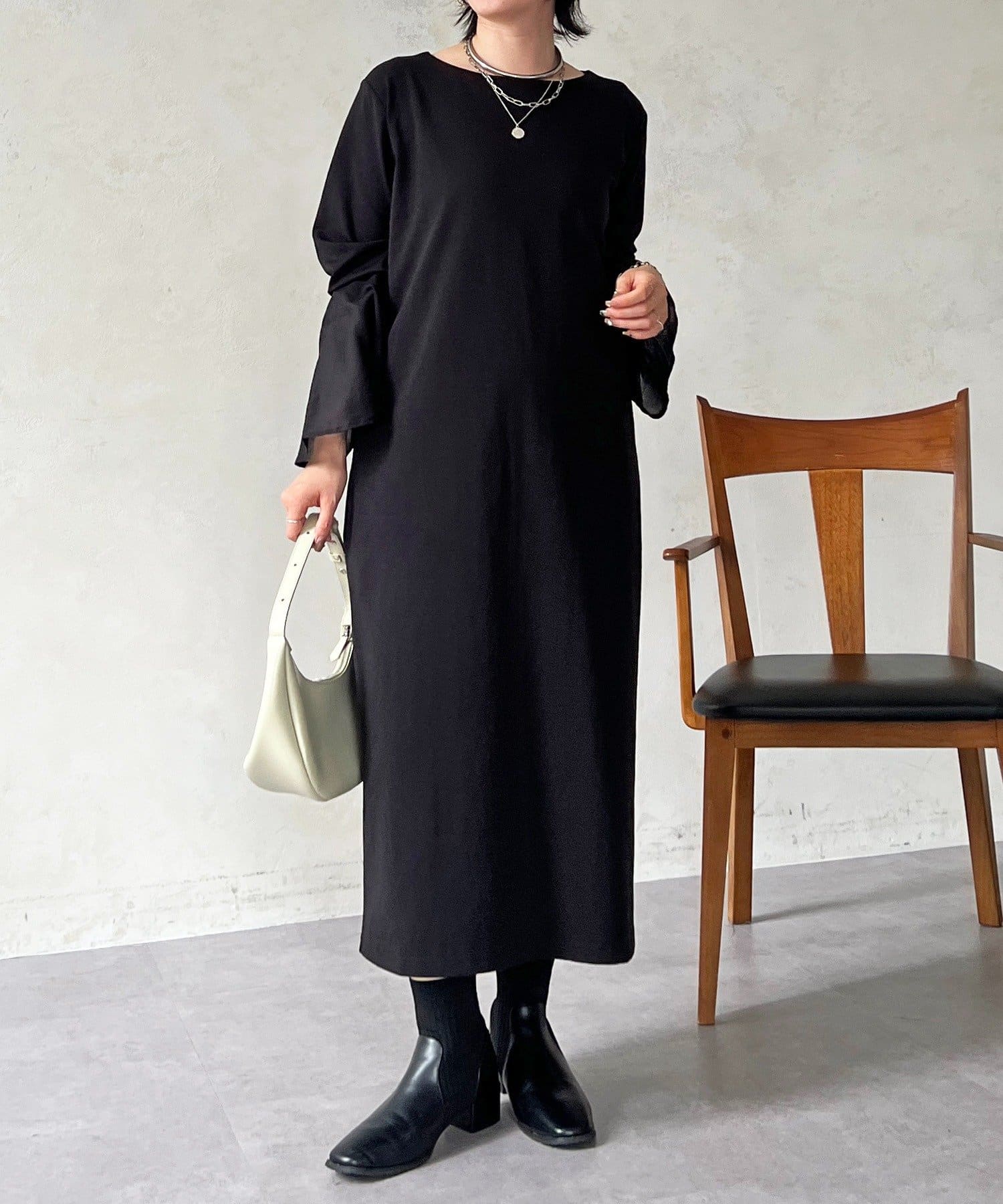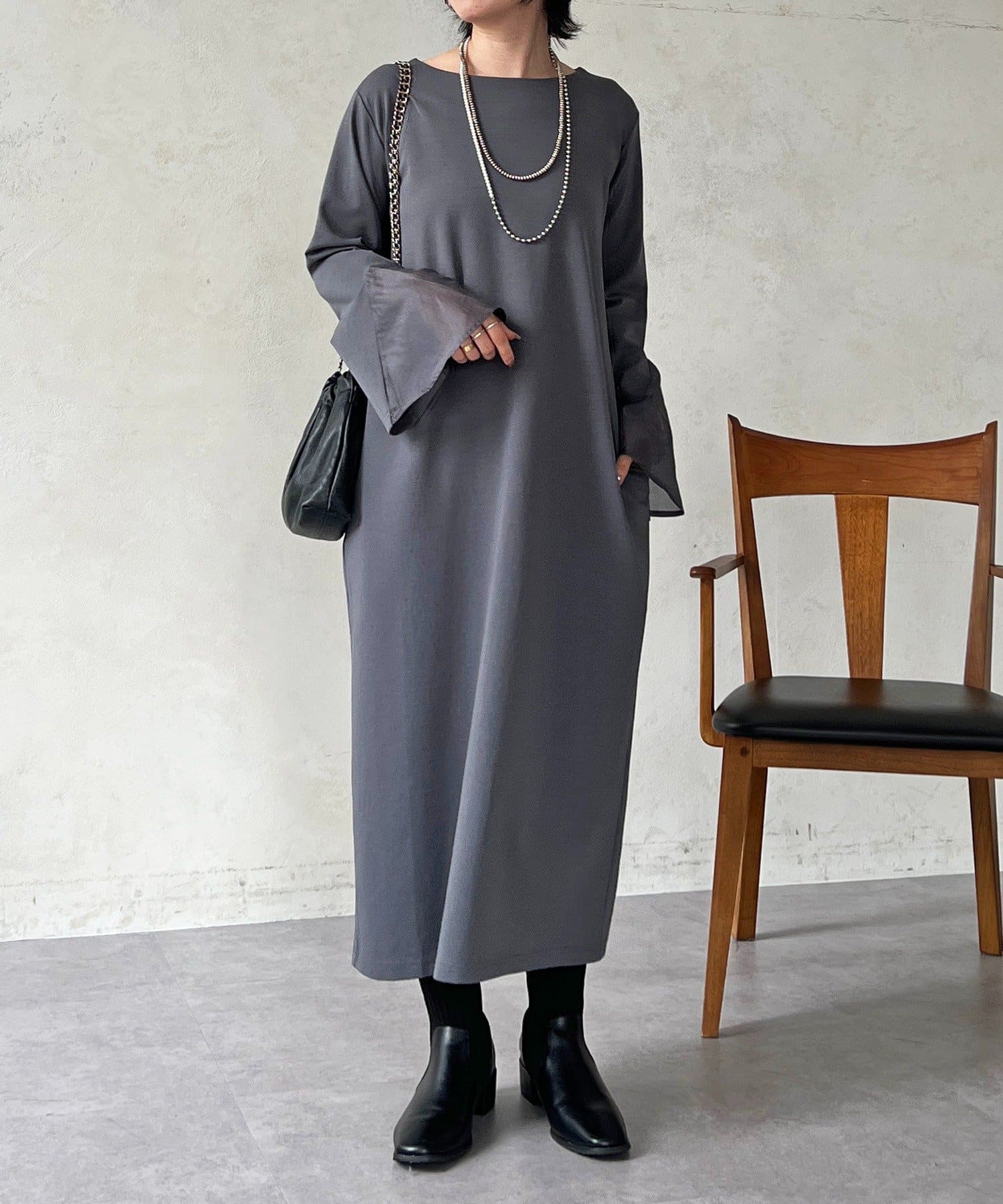 シンプルながら、シルエットと袖口の異素材切替でモダンに着こなせるコクーンワンピ