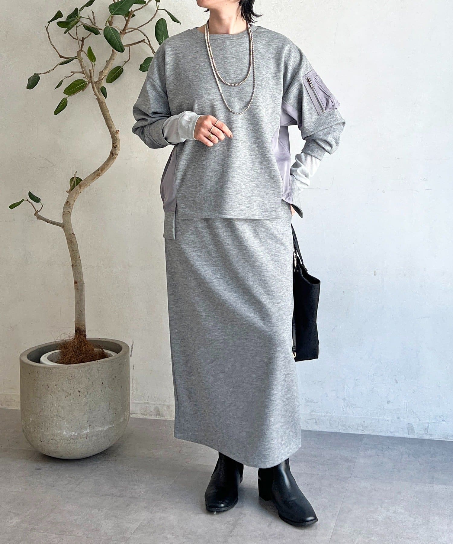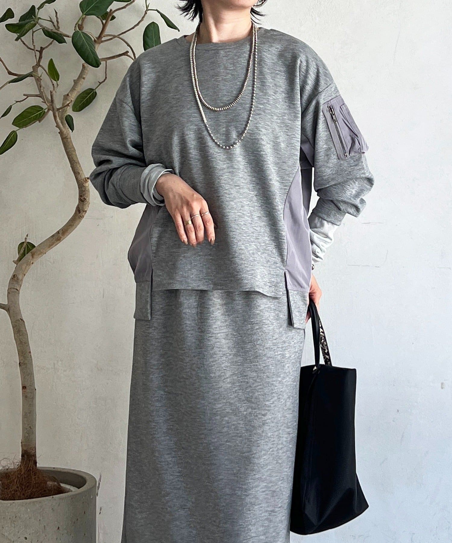 ・MA1ポケットと異素材ドッキングデザインがコーデのアクセントになるセットアップ