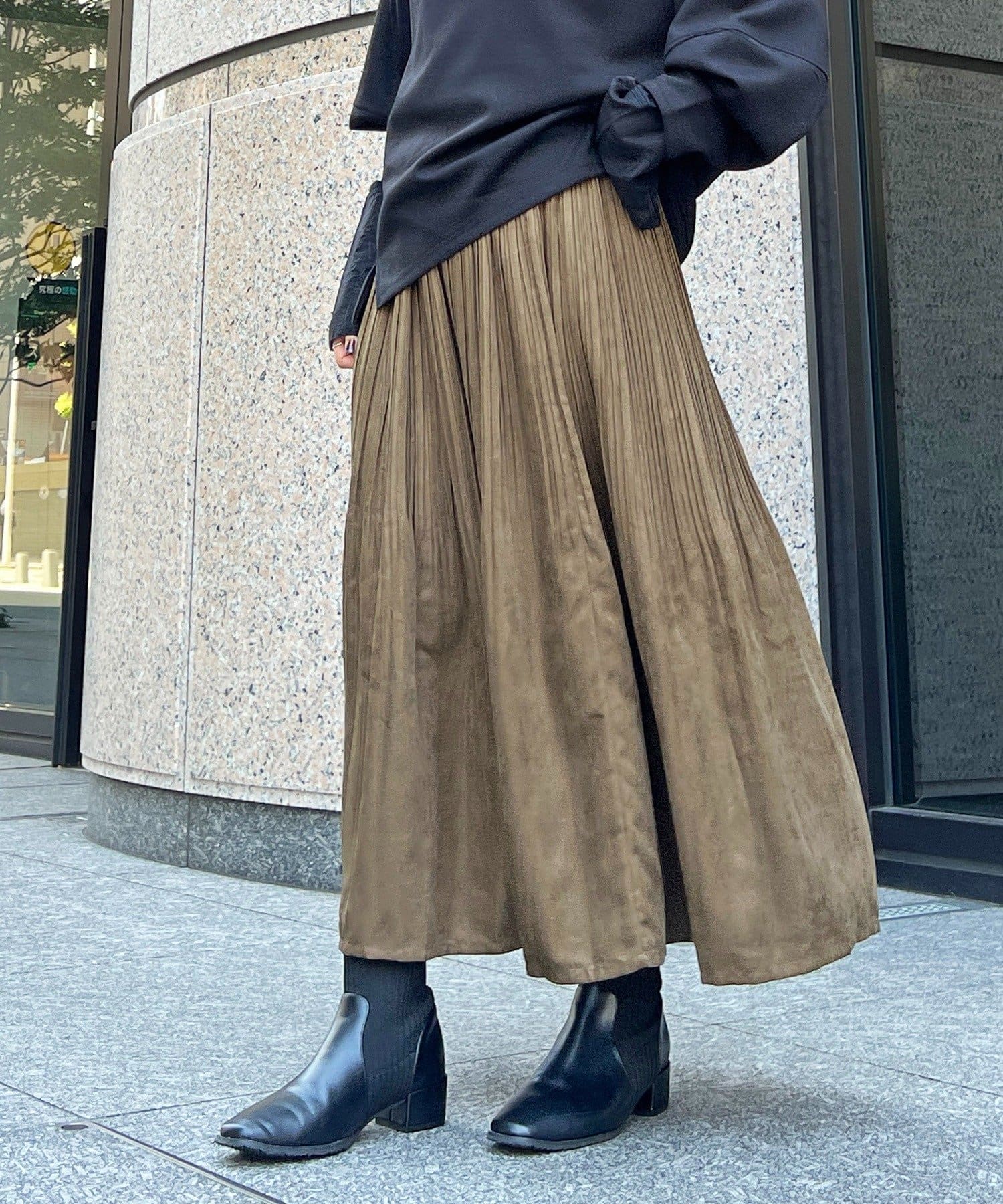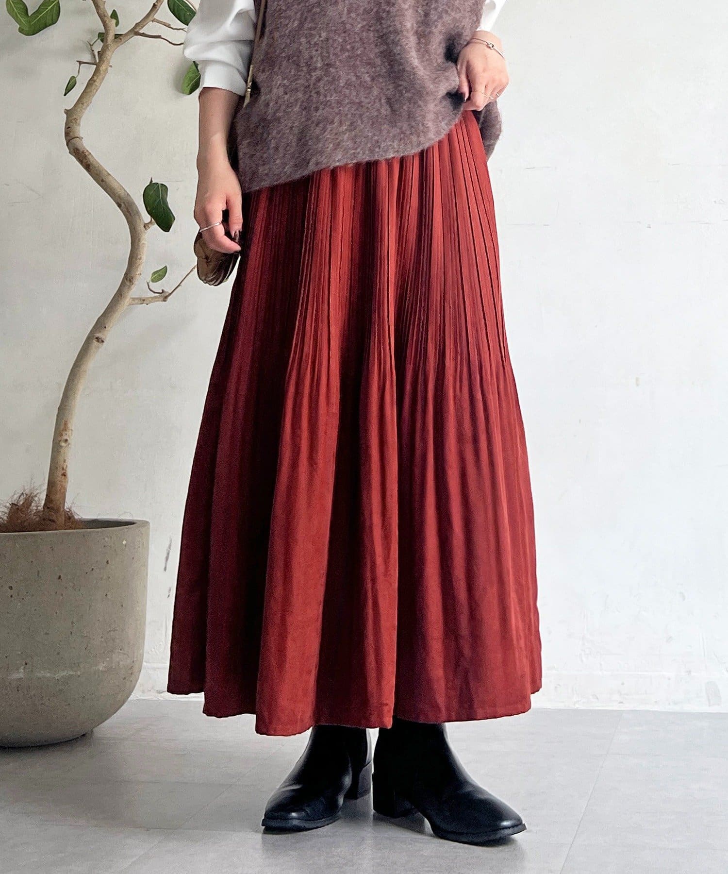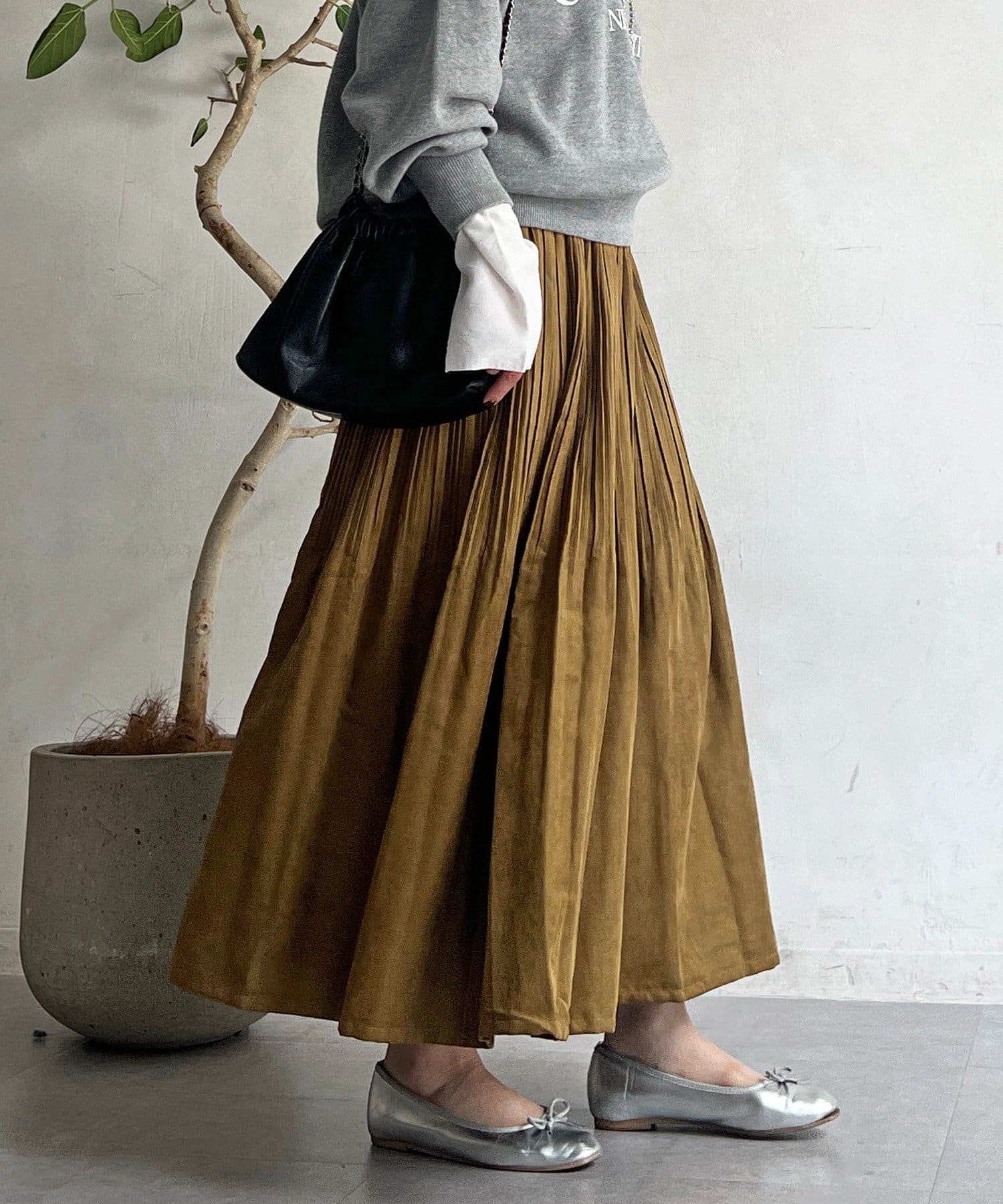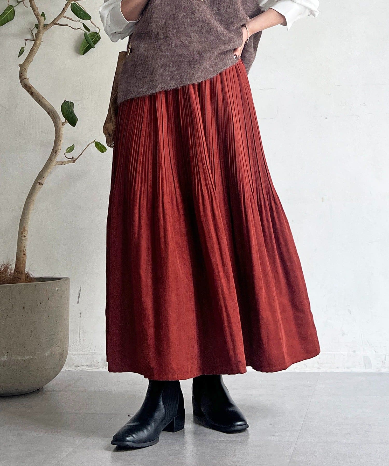 シーズンムード高まる秋カラーの消しプリーツスカート