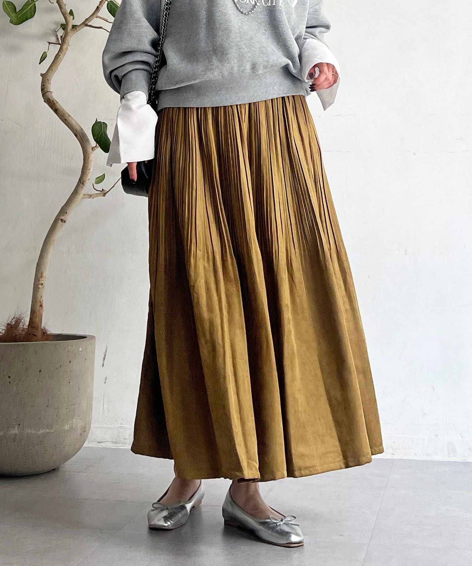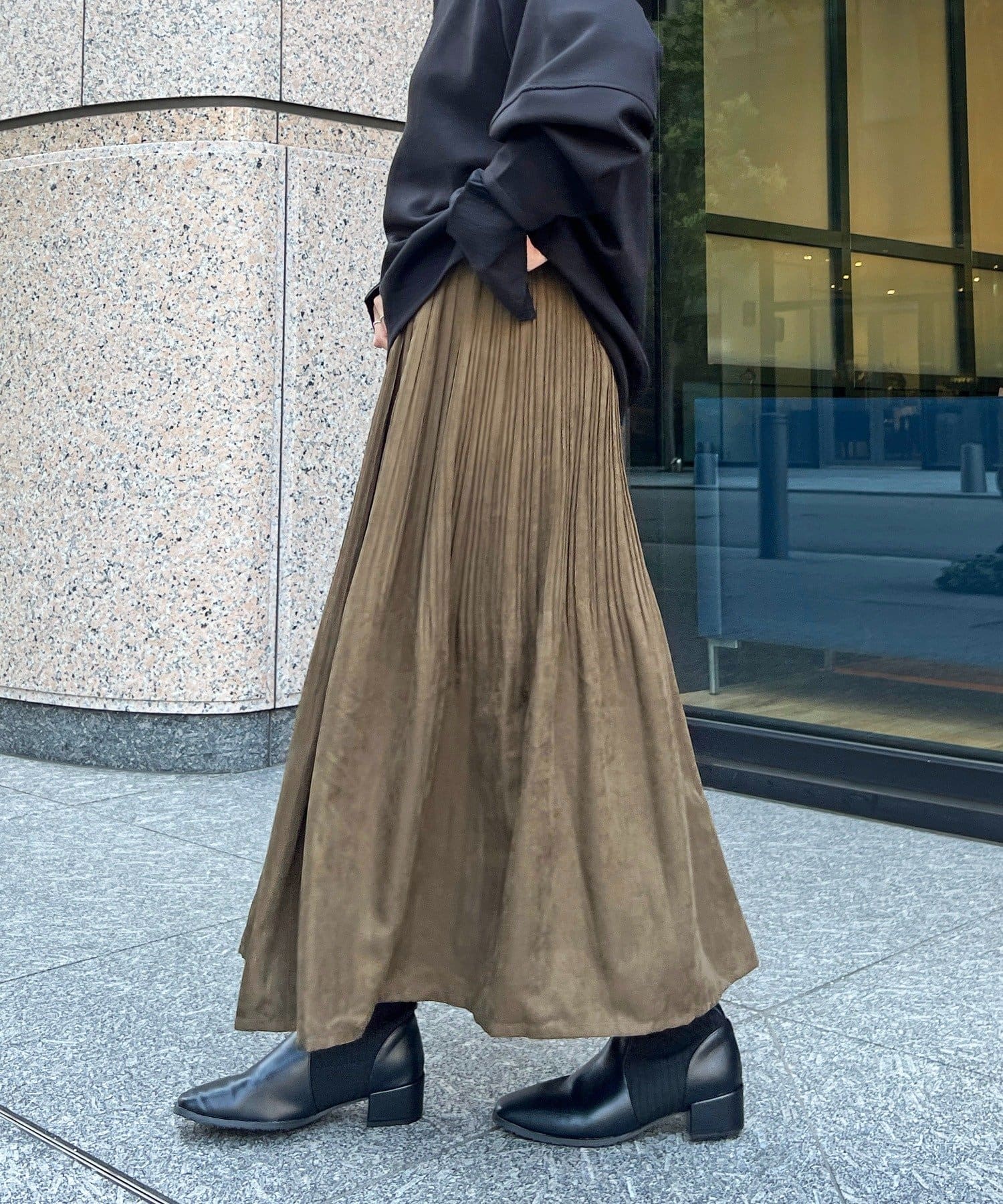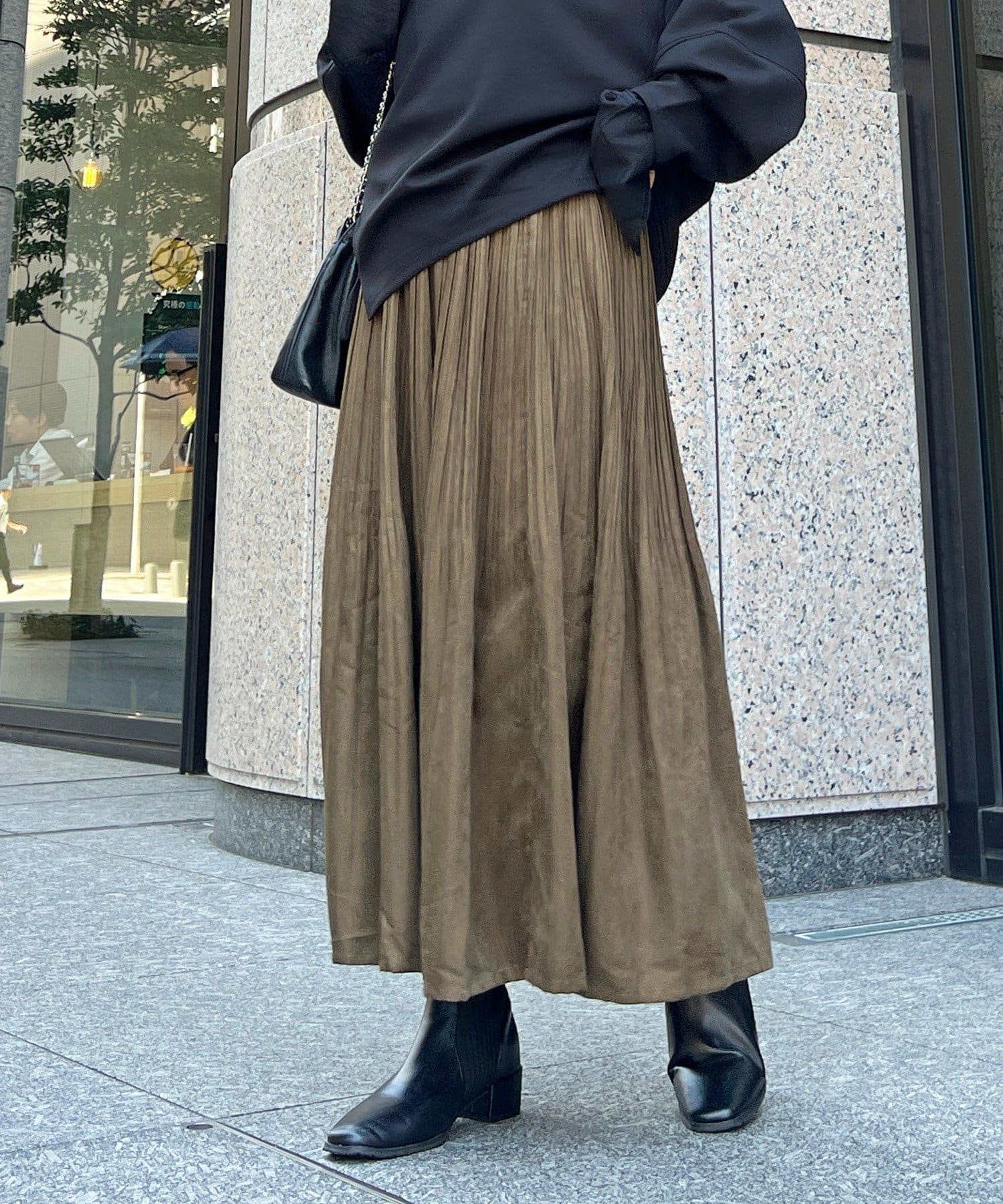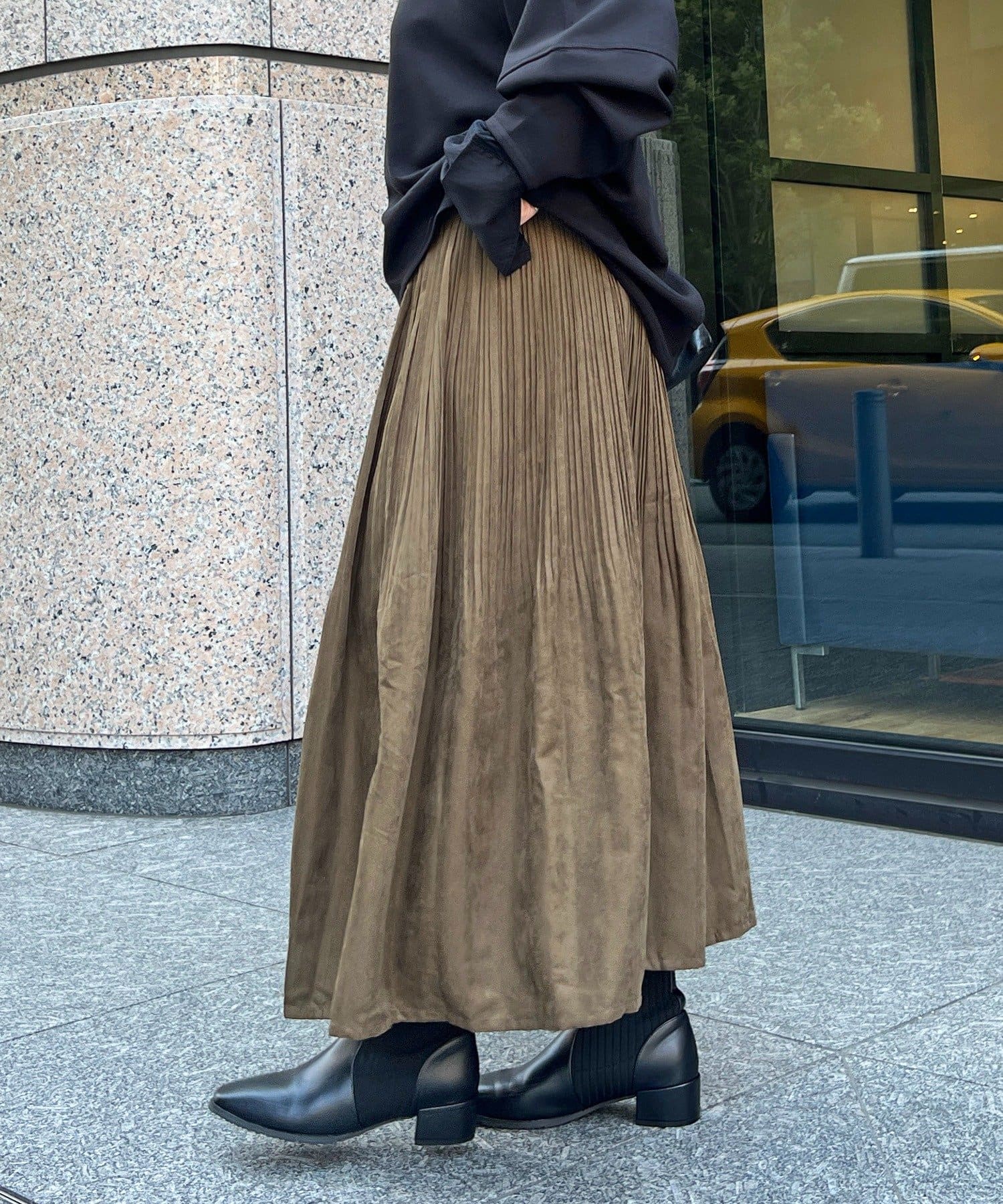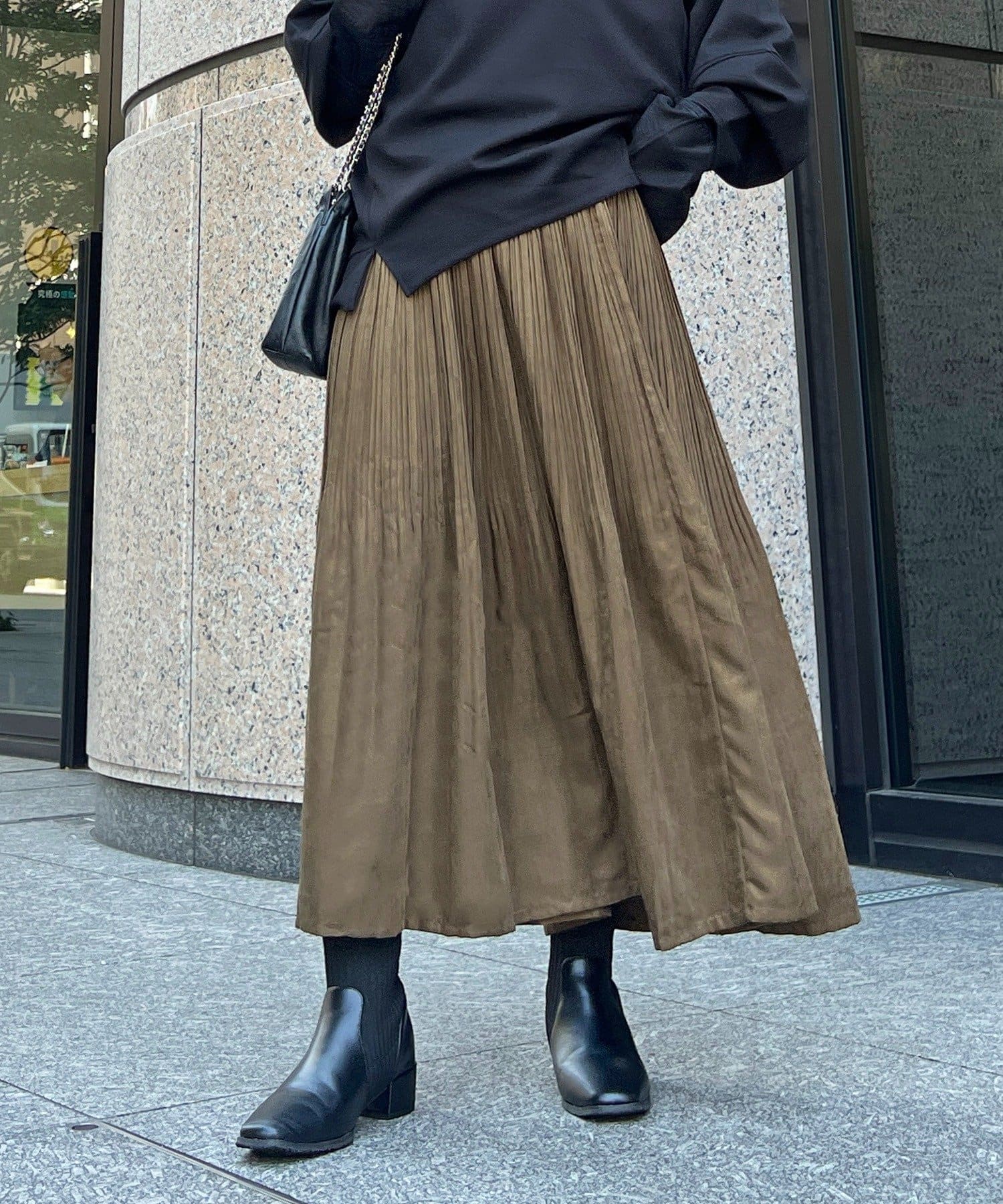 シーズンムード高まる秋カラーの消しプリーツスカート