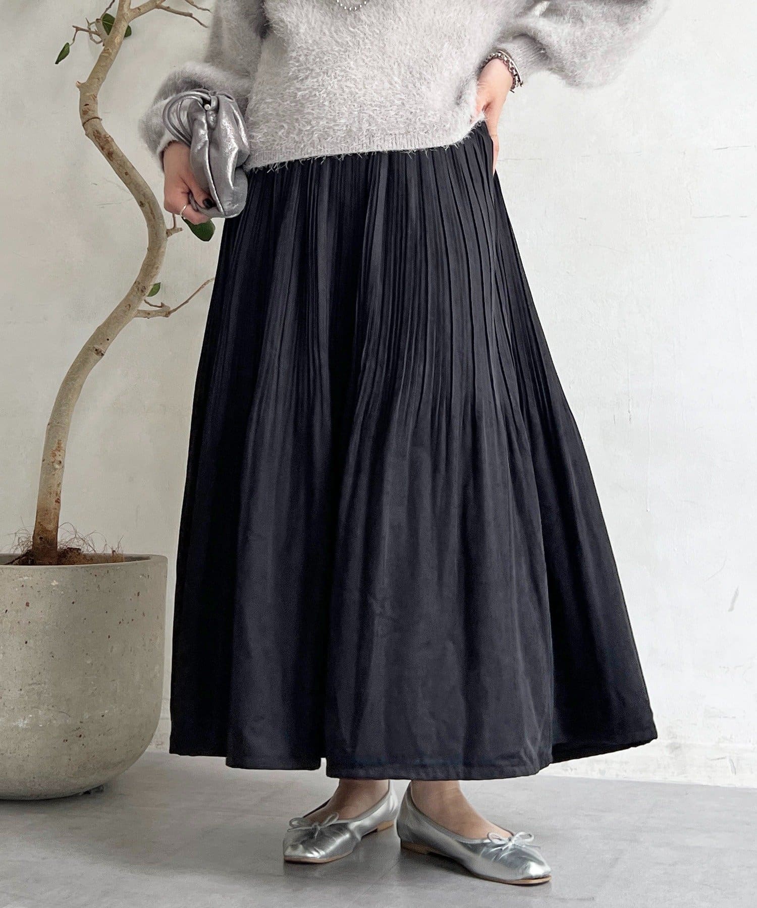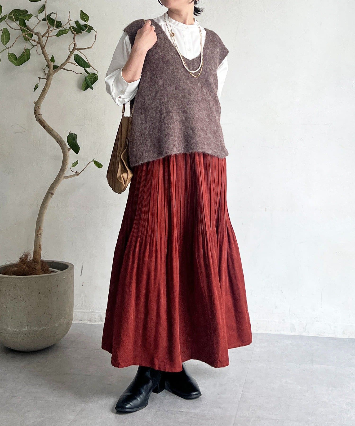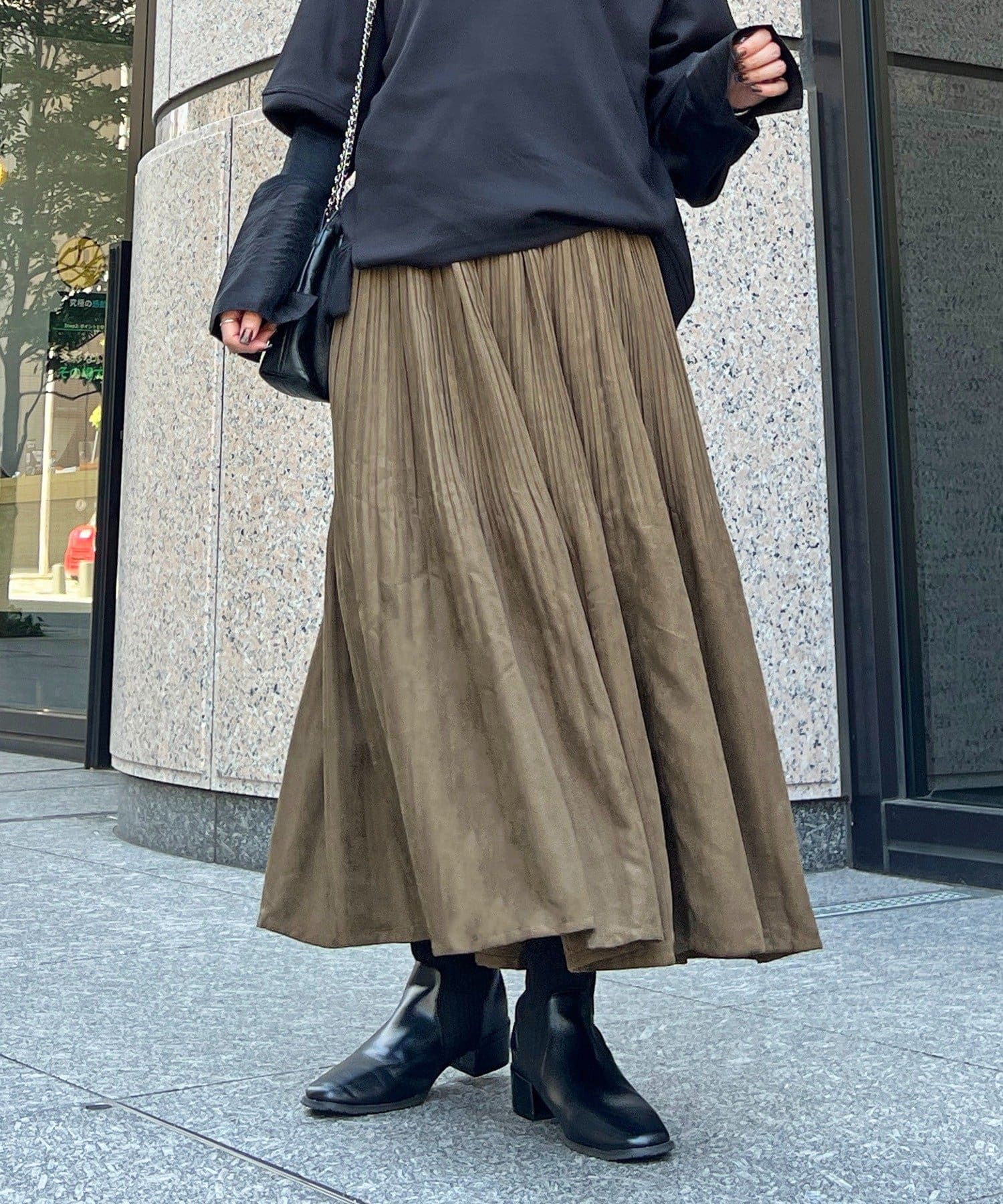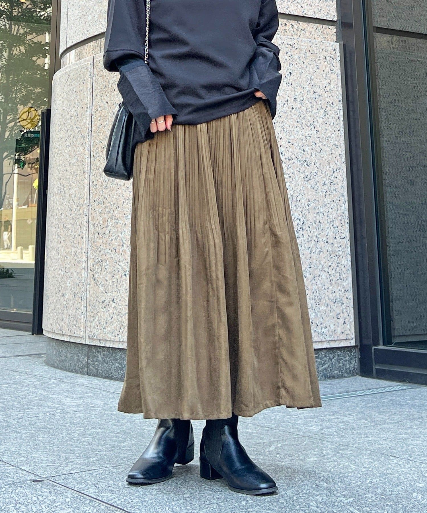 シーズンムード高まる秋カラーの消しプリーツスカート