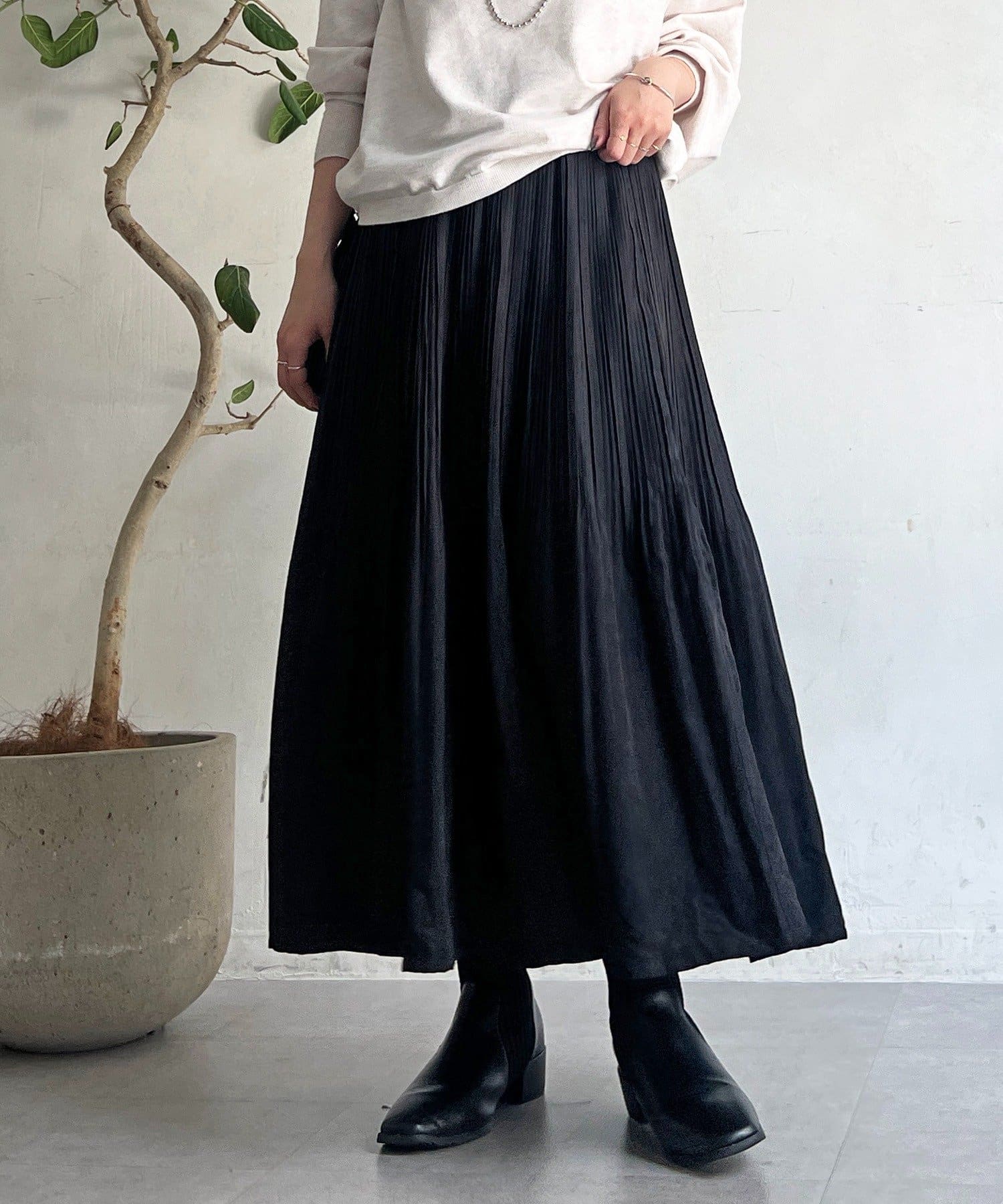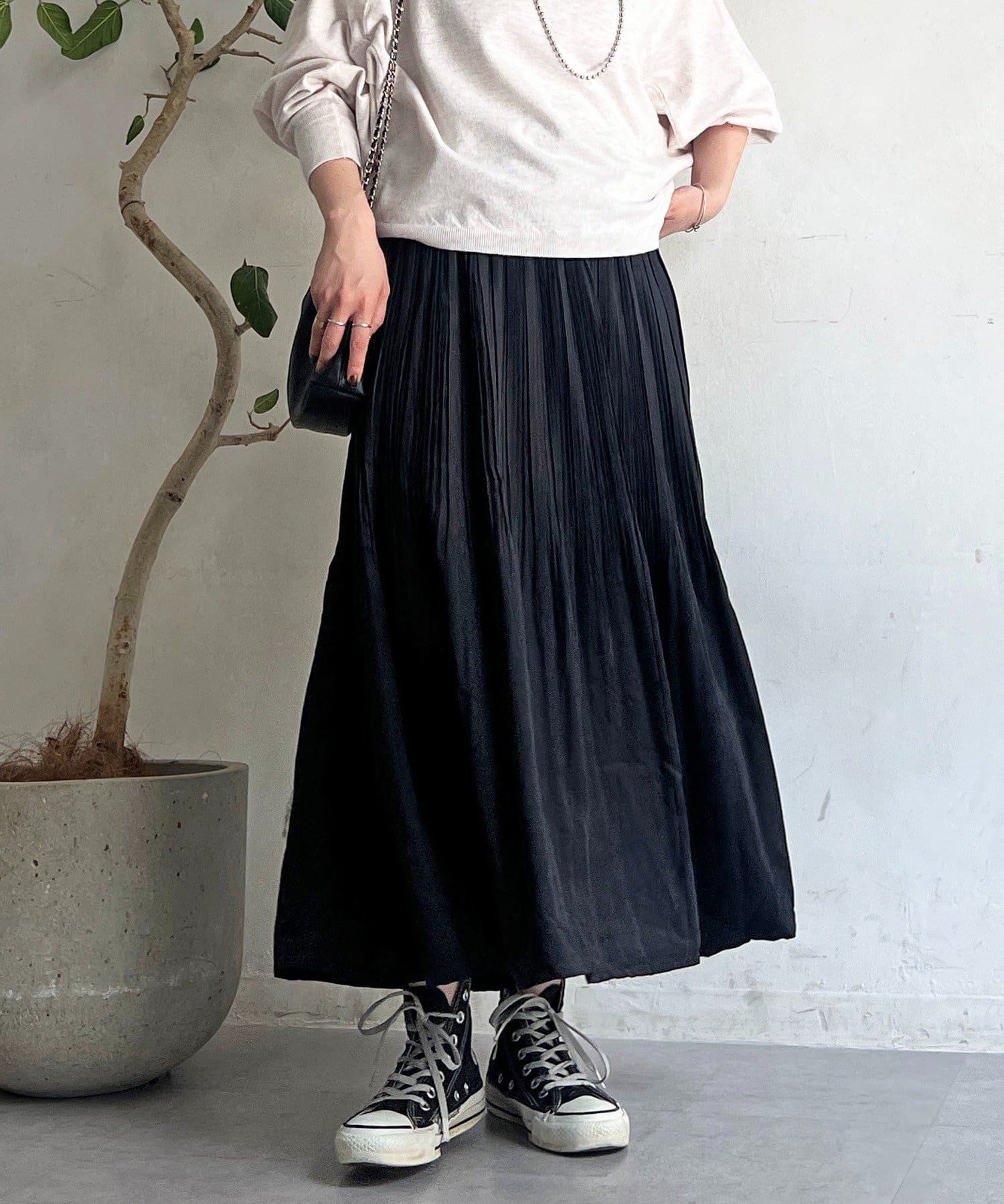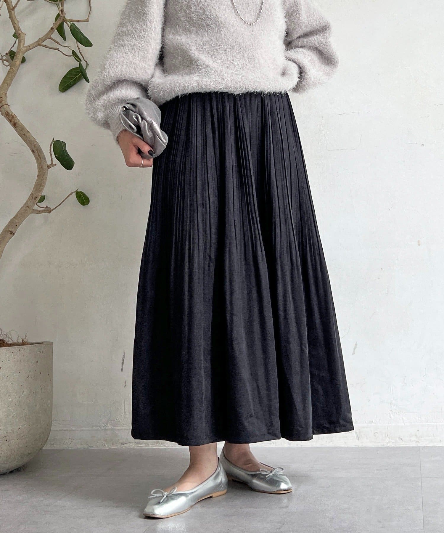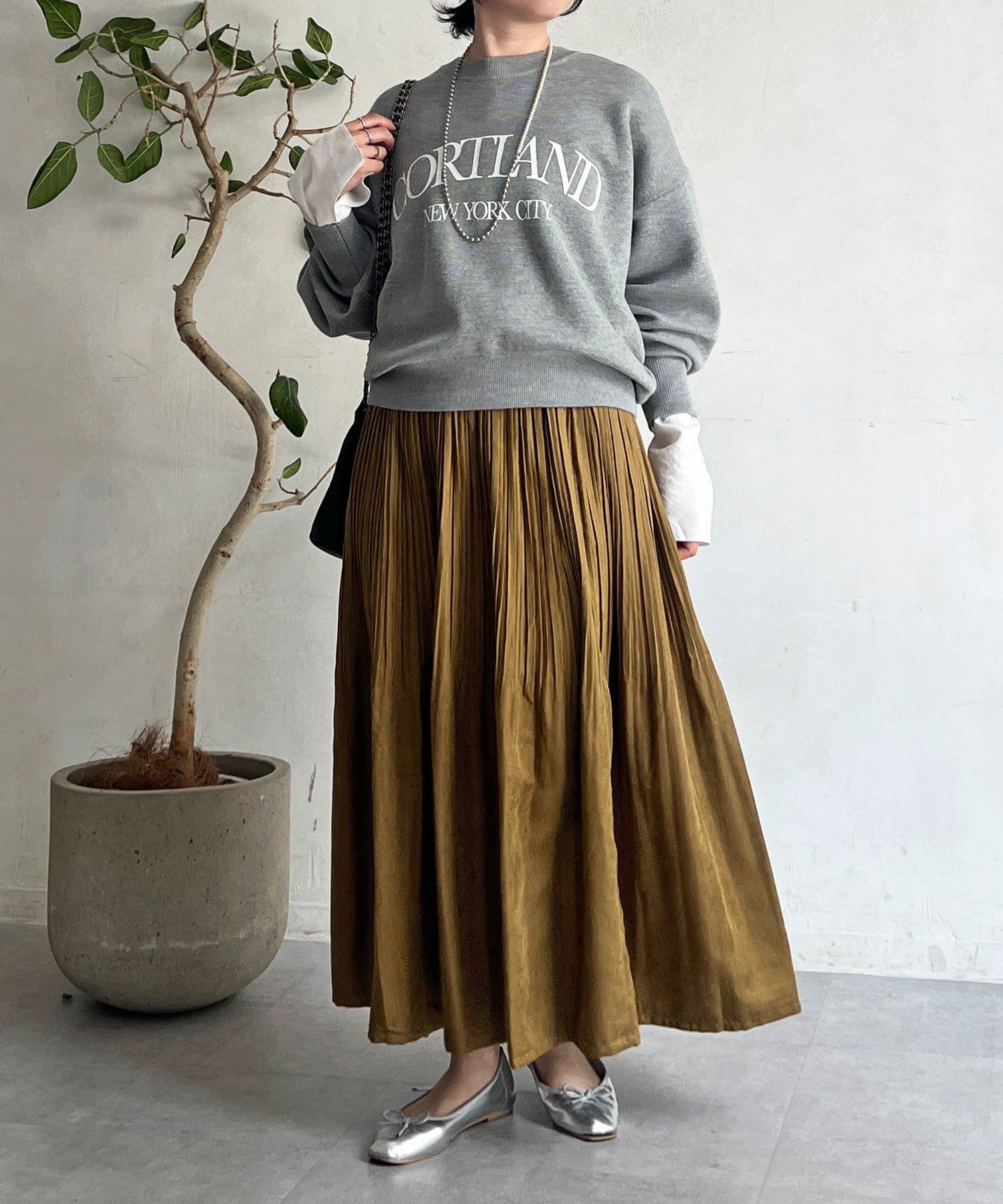 ・縦の落ち感がスッキリした印象に見えるプリーツスカート