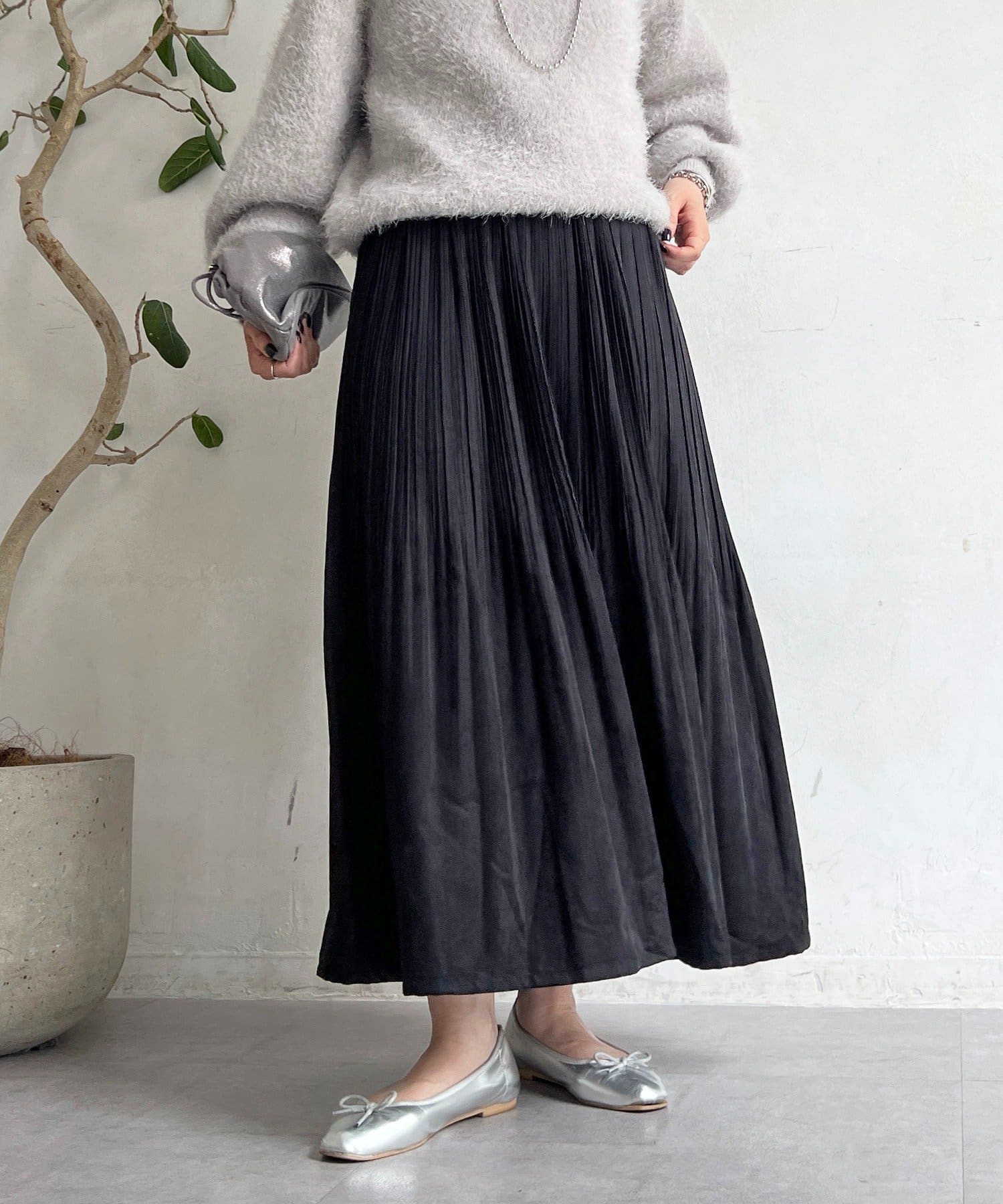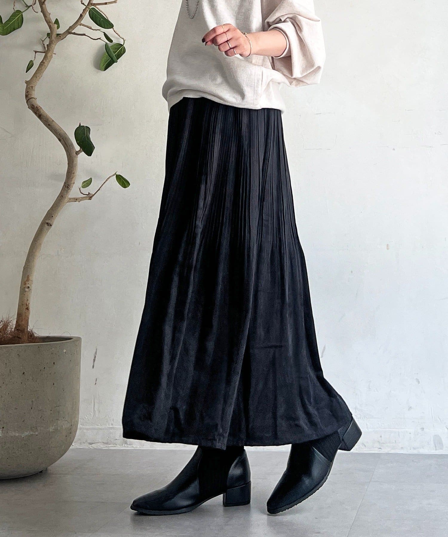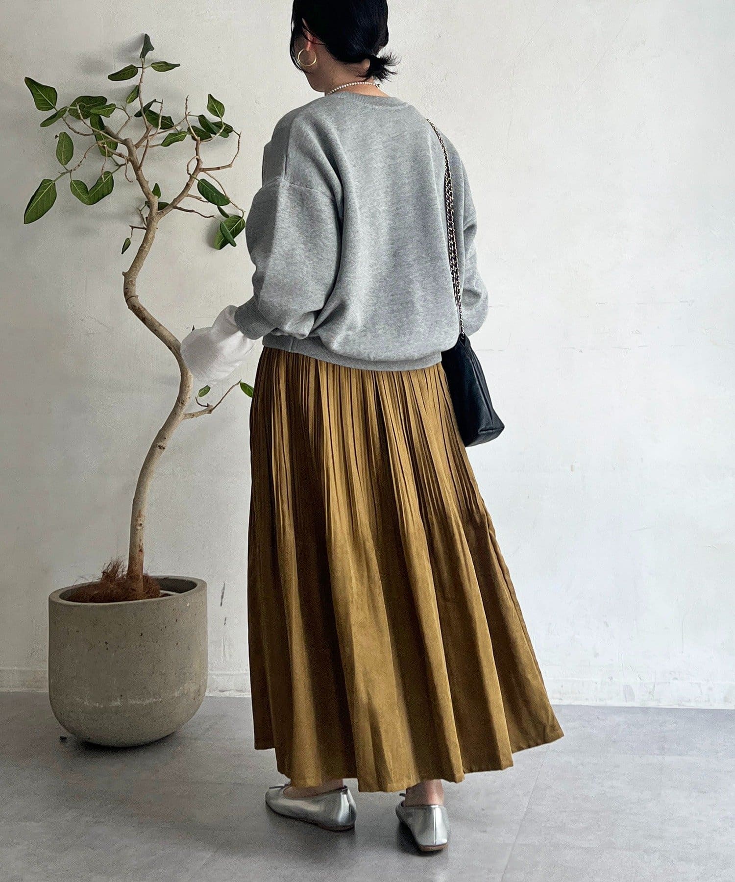 ・縦の落ち感がスッキリした印象に見えるプリーツスカート