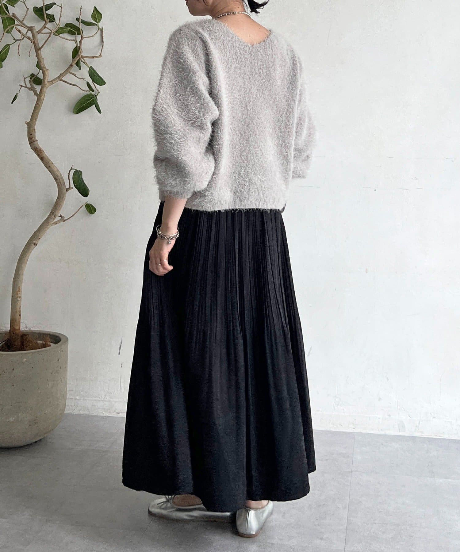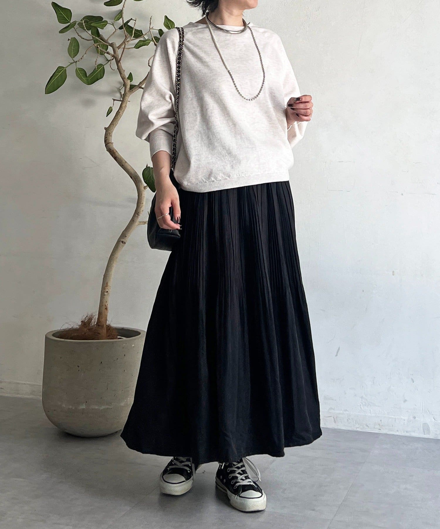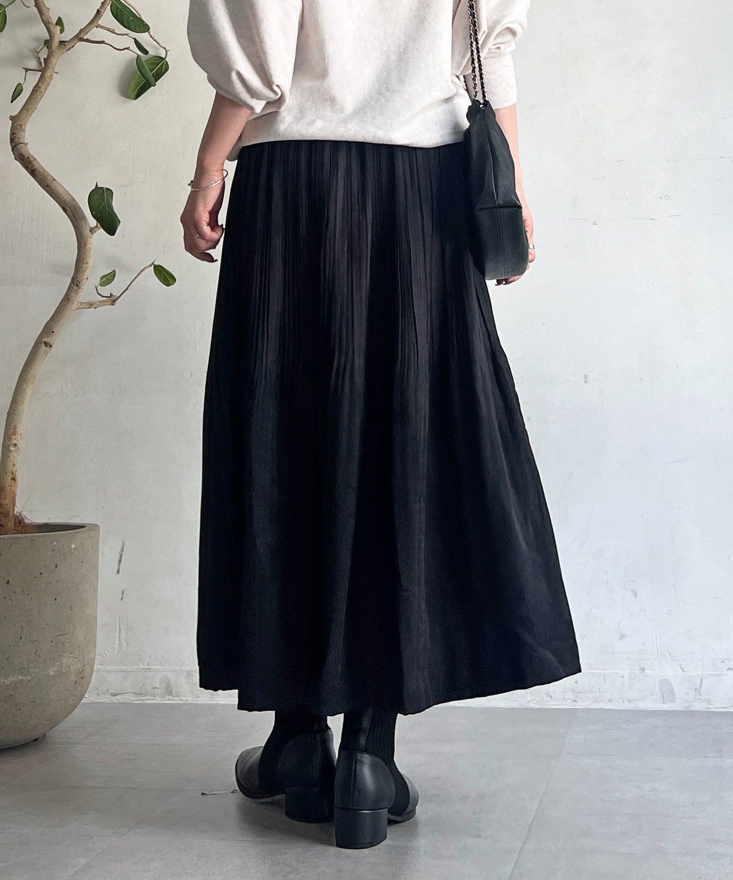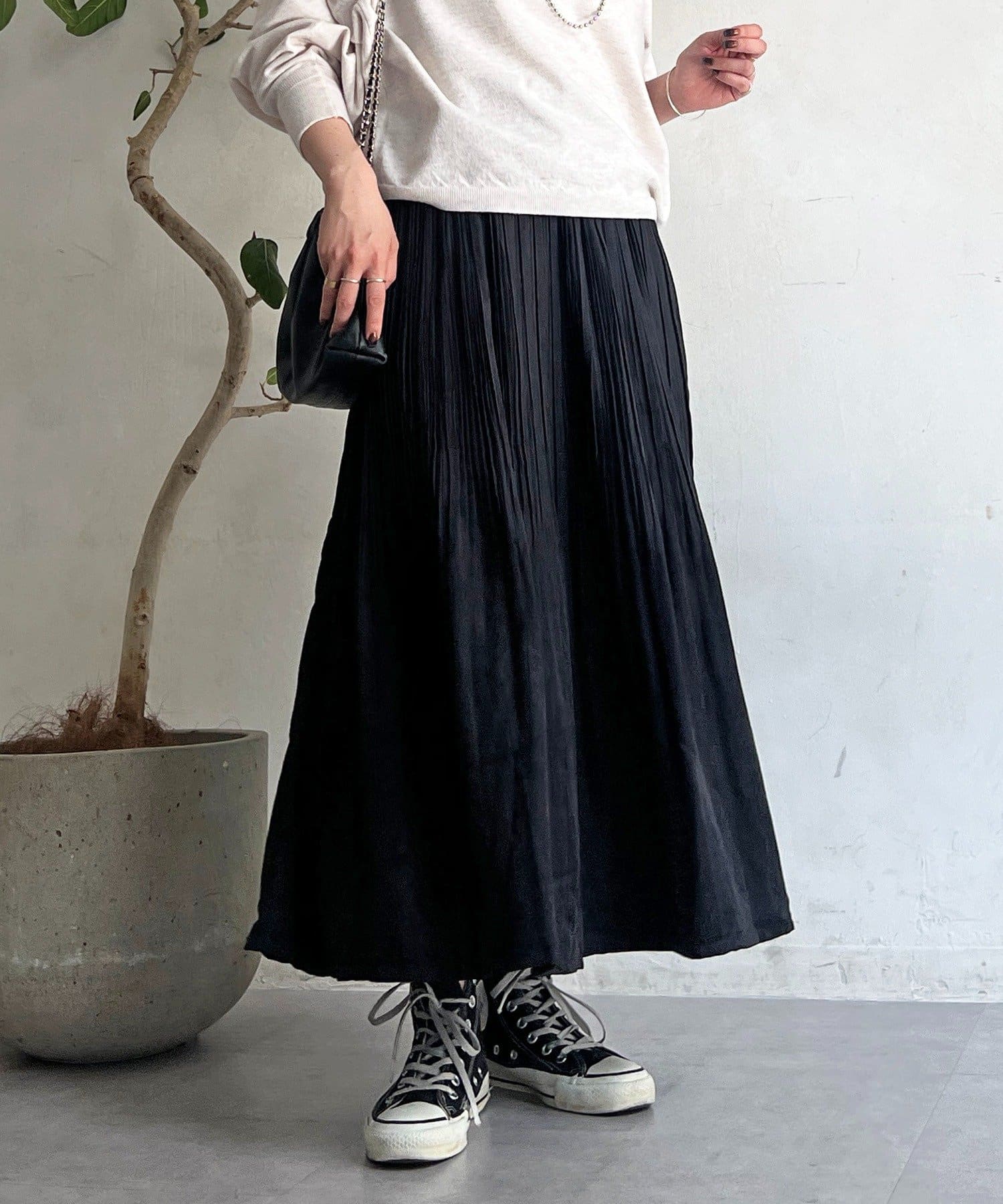 ・縦の落ち感がスッキリした印象に見えるプリーツスカート