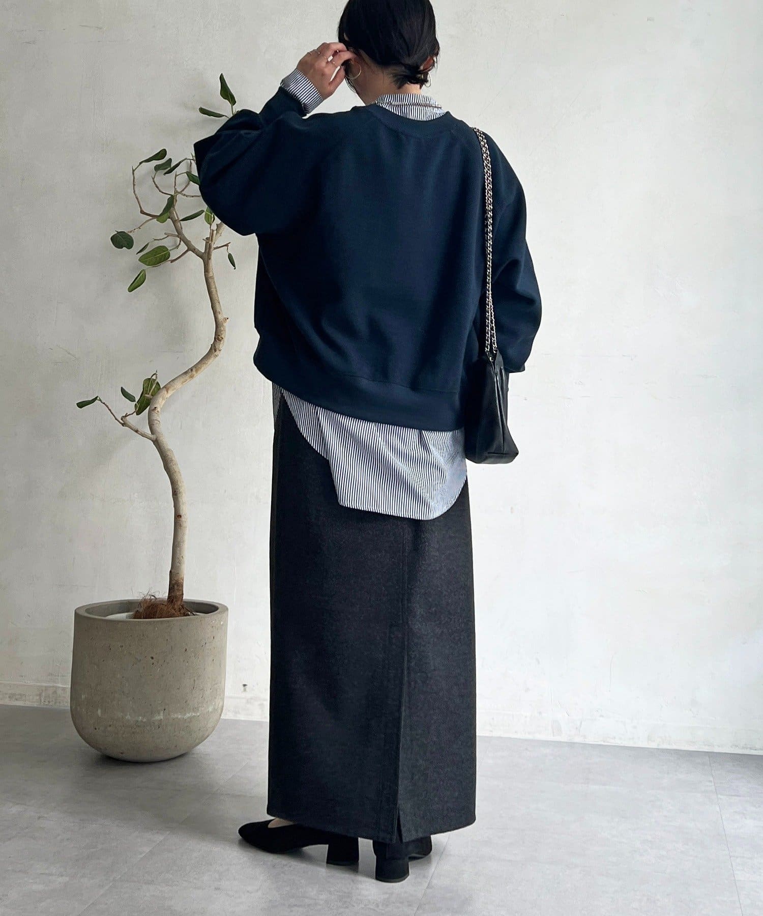 ・インナーにシャツやロンTなど、レイヤードスタイルもオススメ