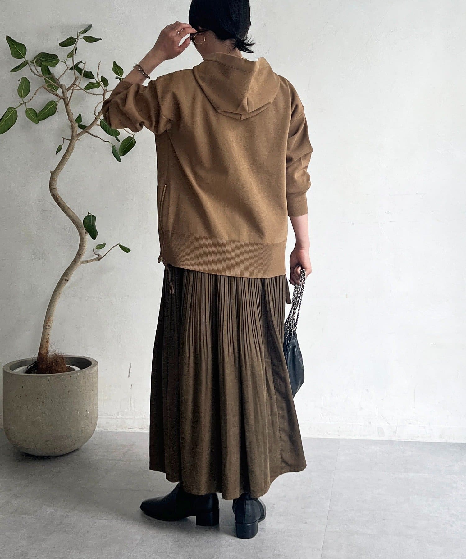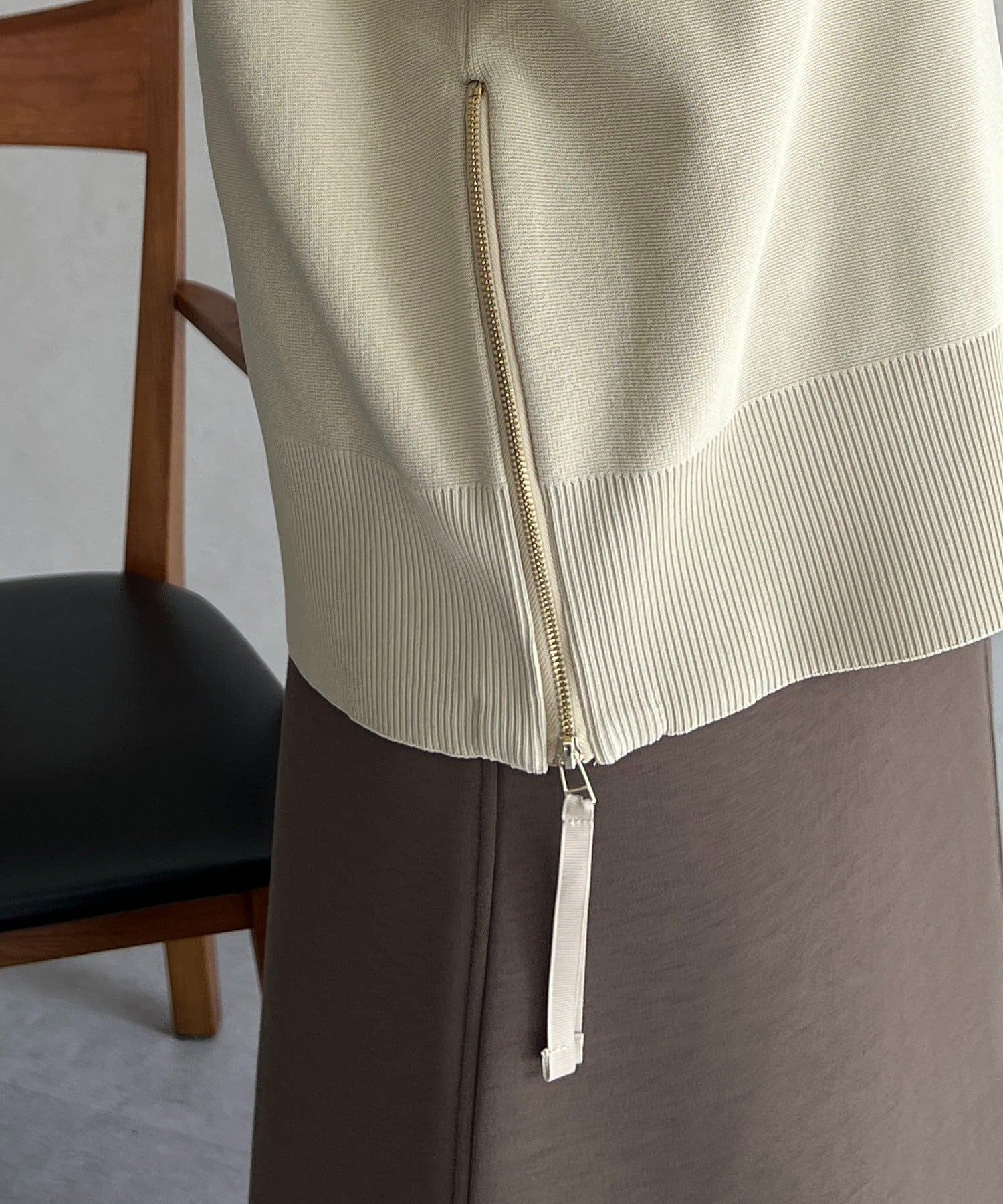 ・サイドジップがついているので、インしなくても抜け感ある着こなしに