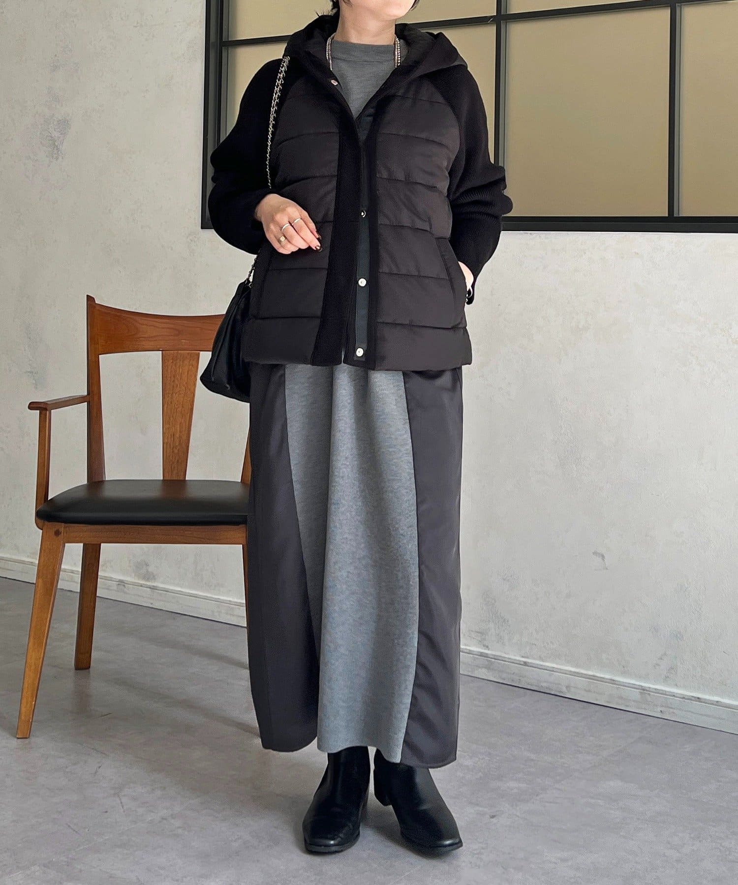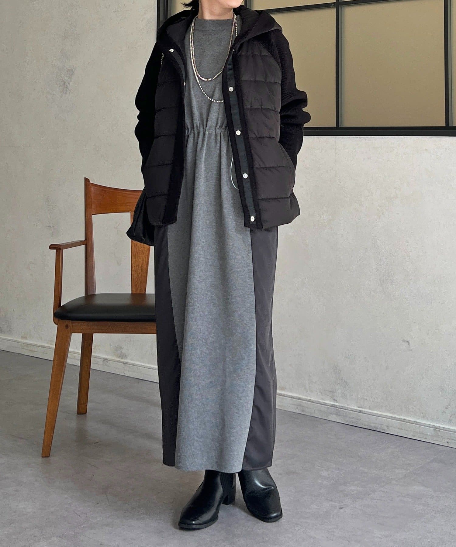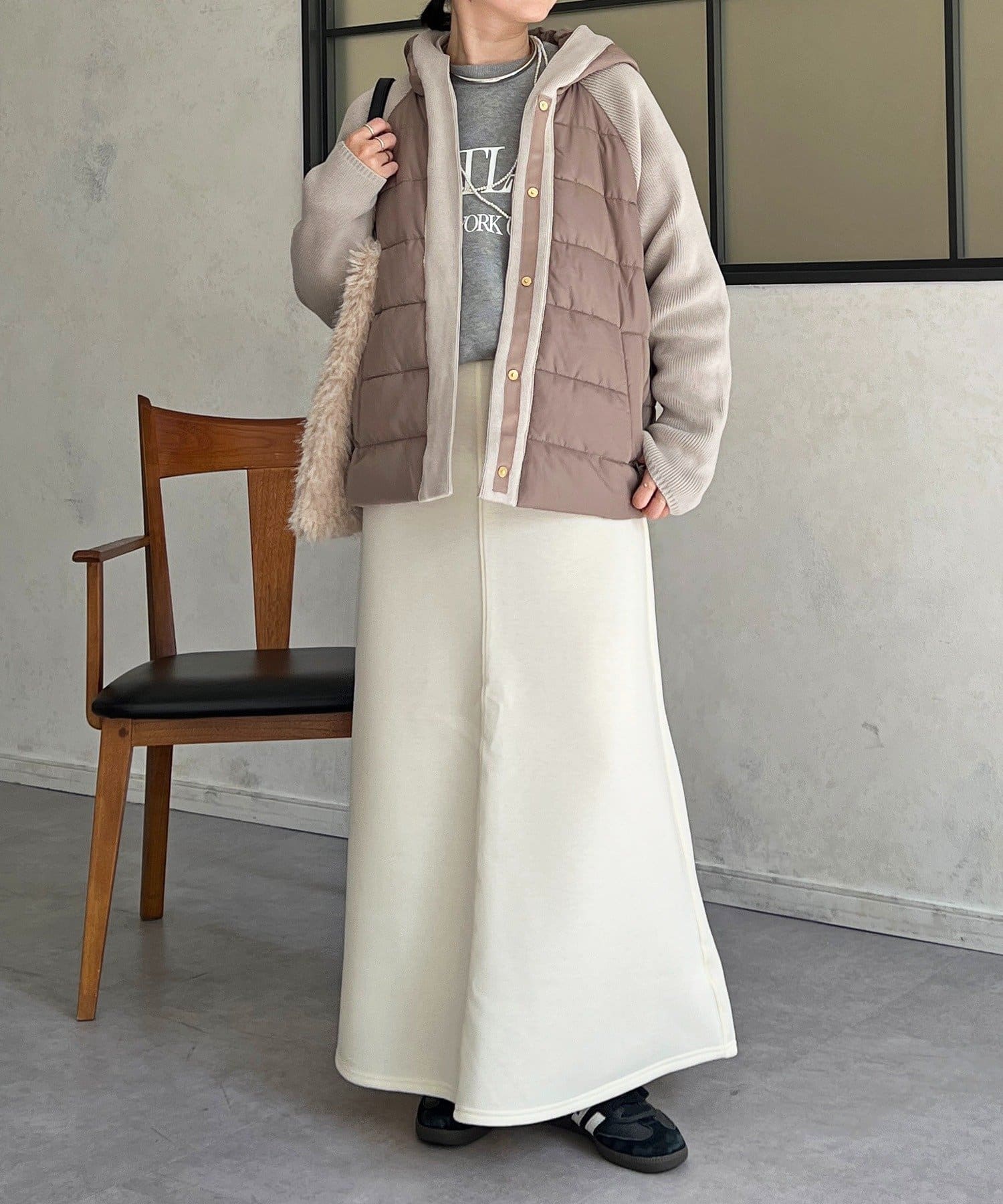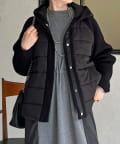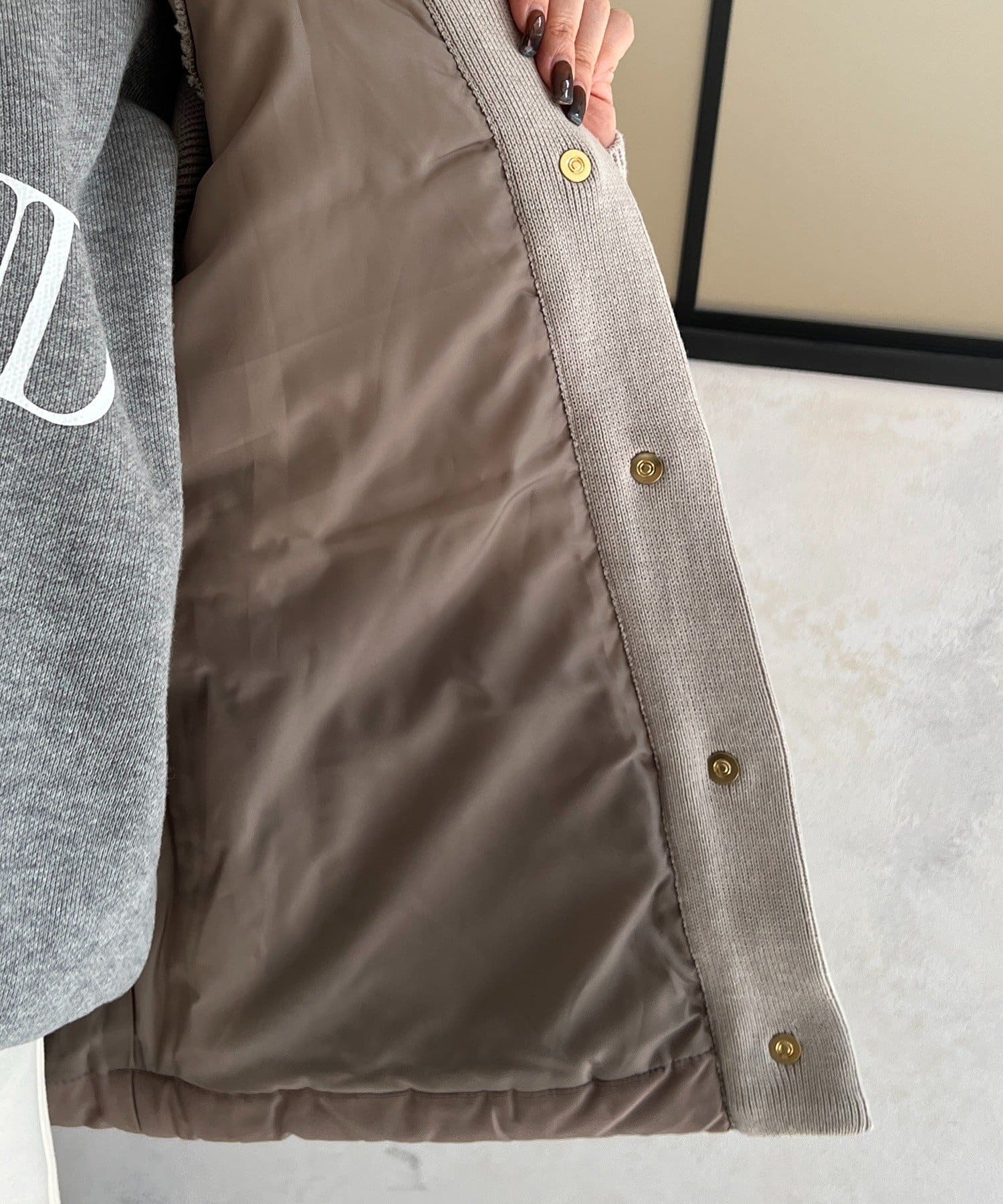 ・中綿の身頃と袖はニットの切替で、カーディガン感覚で羽織れるアウター