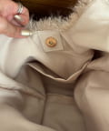 毛並みが整っていて綺麗です。大きさも丁度良かったです。グレーを購入しましたが、内布はベージュで中の荷物が見易いです。バッグの真ん中が窪んでいる事で肩掛けもしやすくなっています。