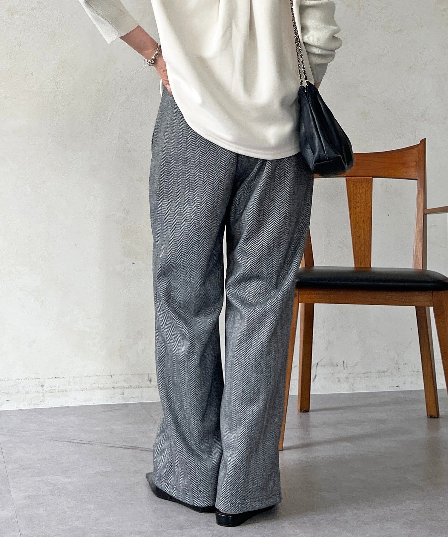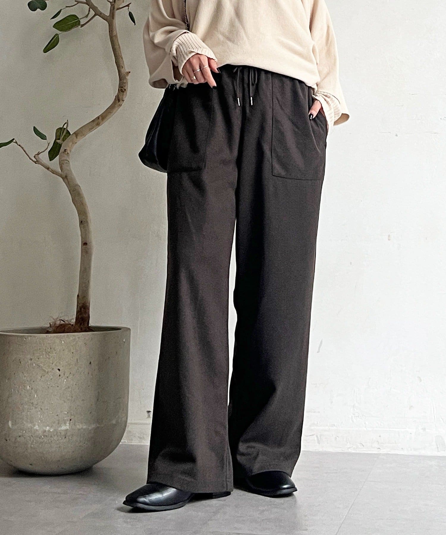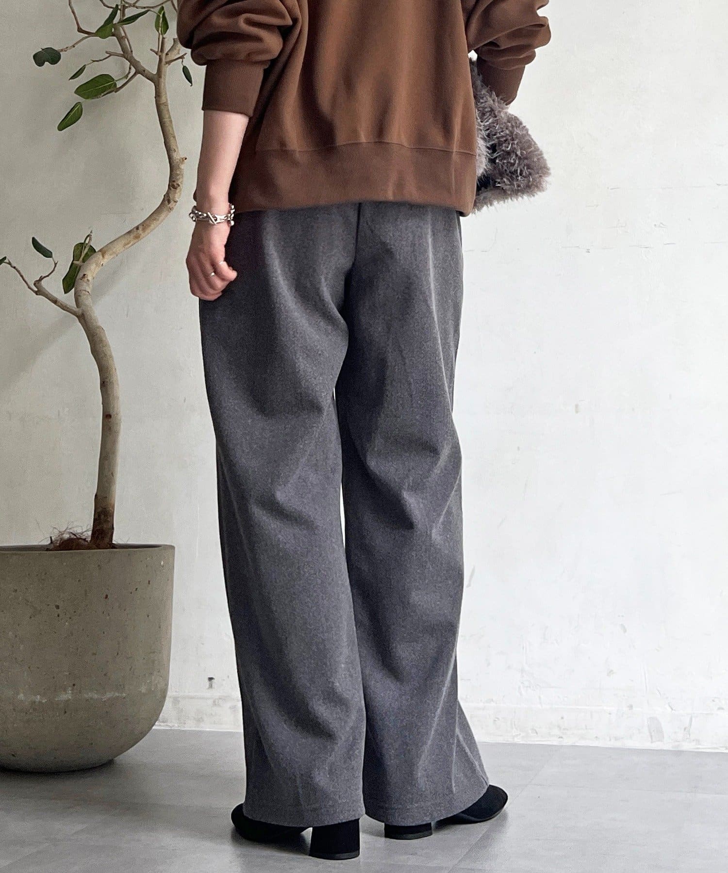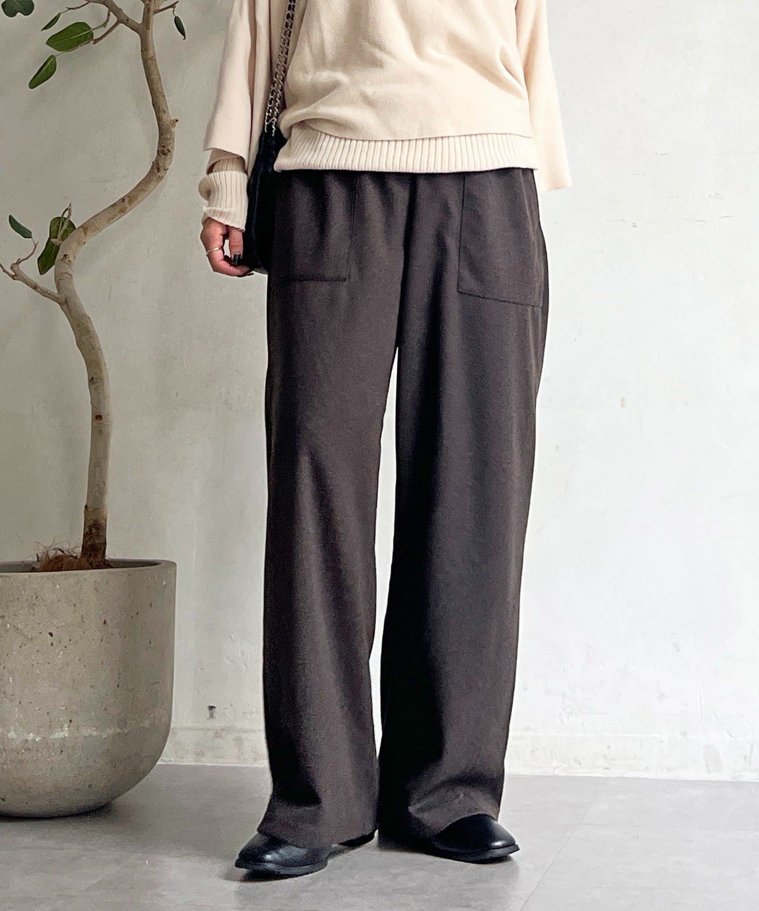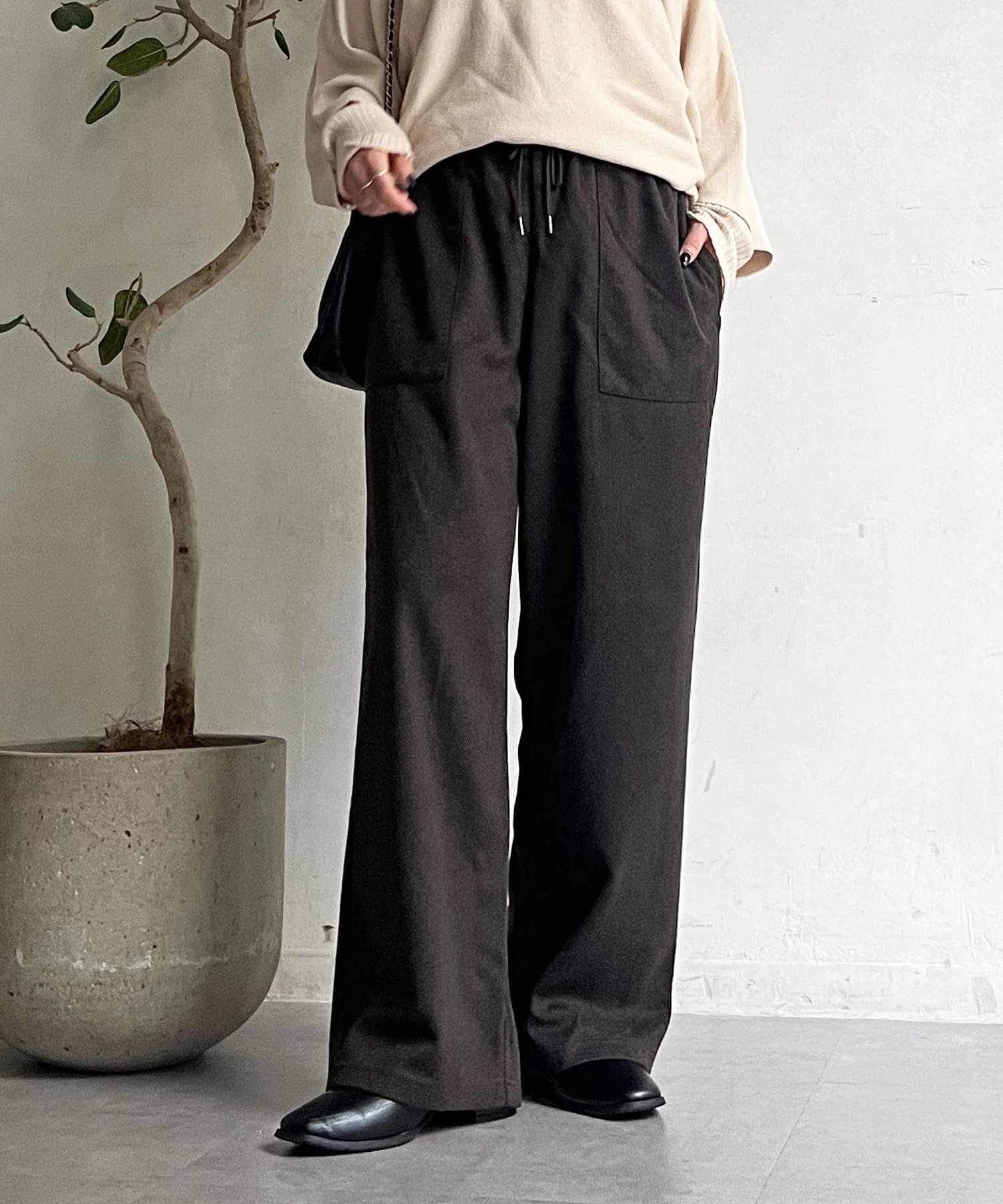・ウエストゴム仕様でリラクシーな温かみのあるストレートパンツ