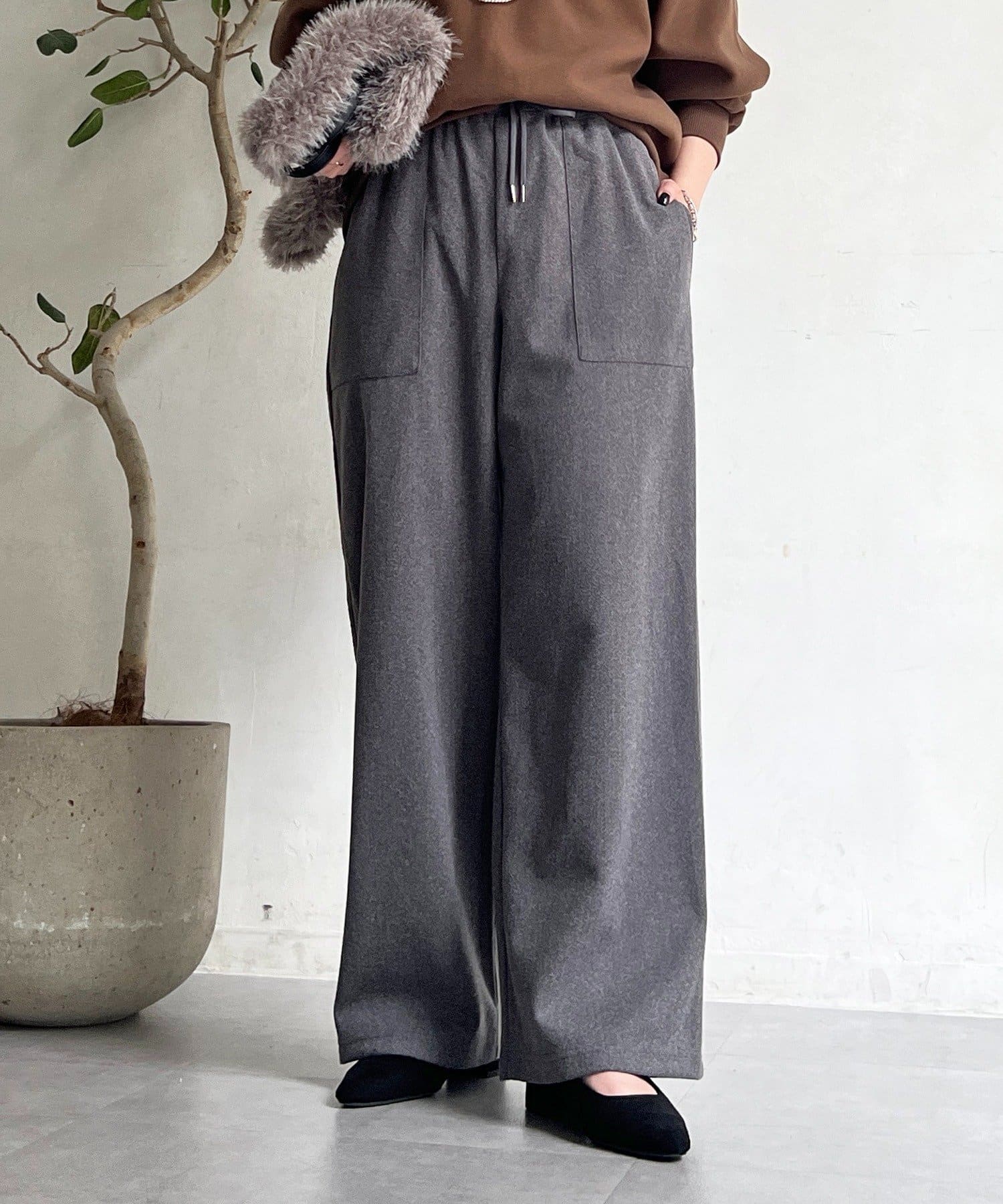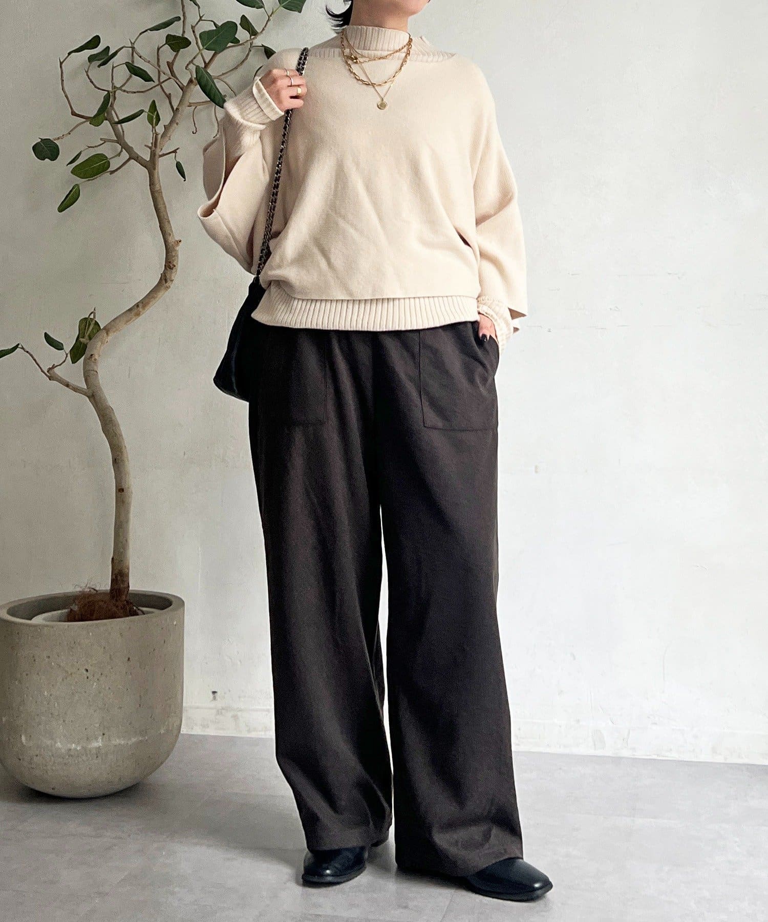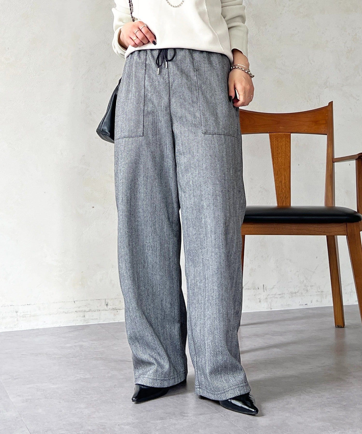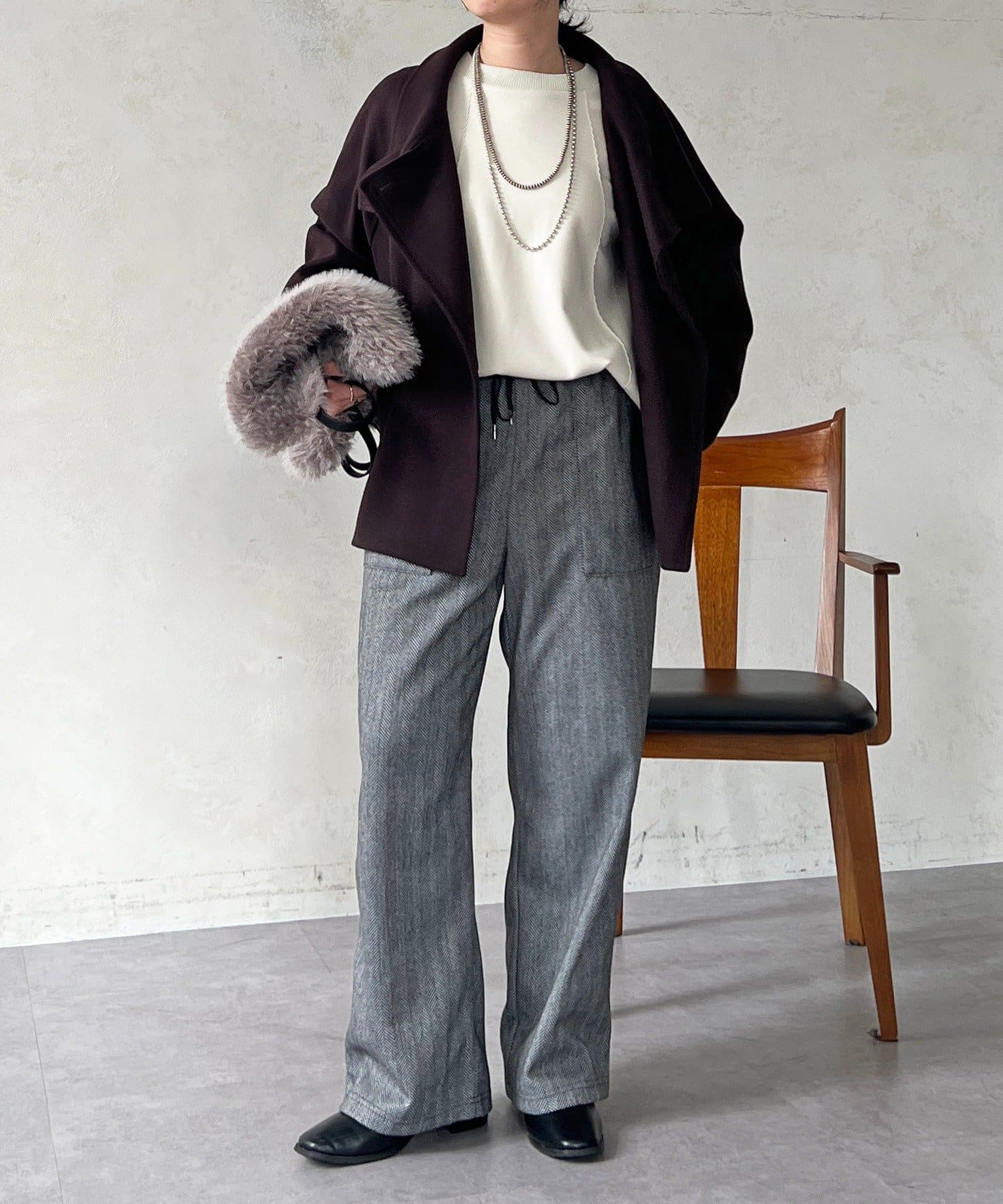 ・ウエストゴム仕様でリラクシーな温かみのあるストレートパンツ