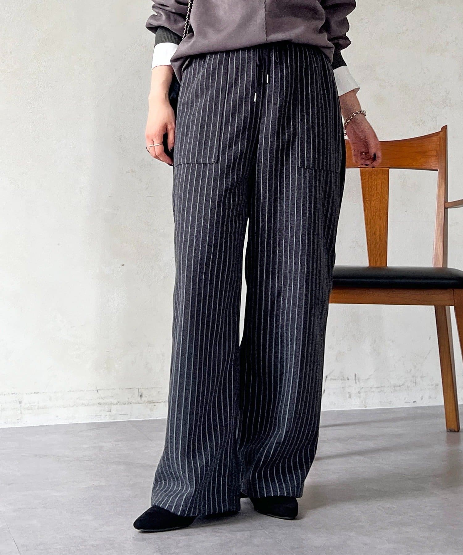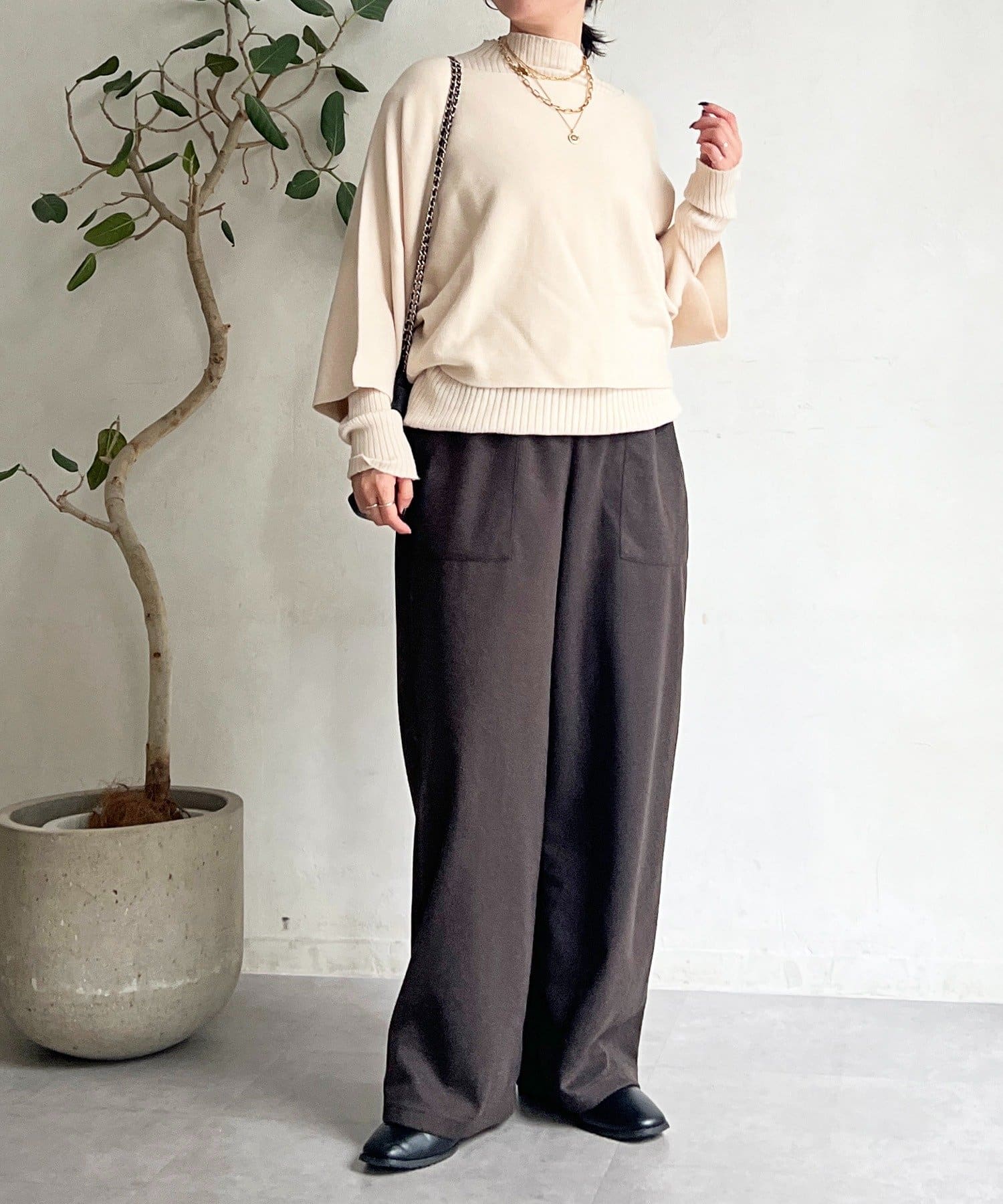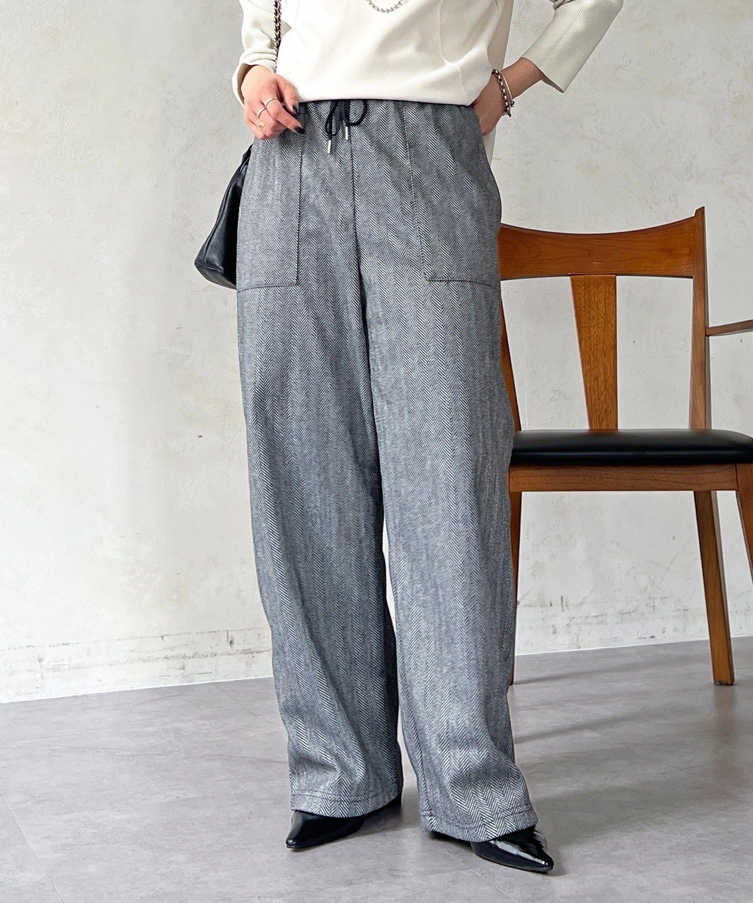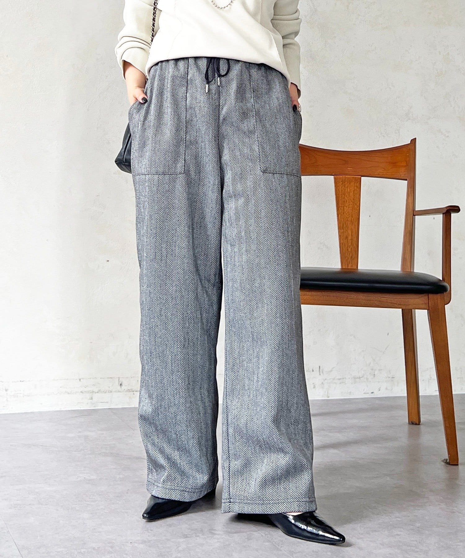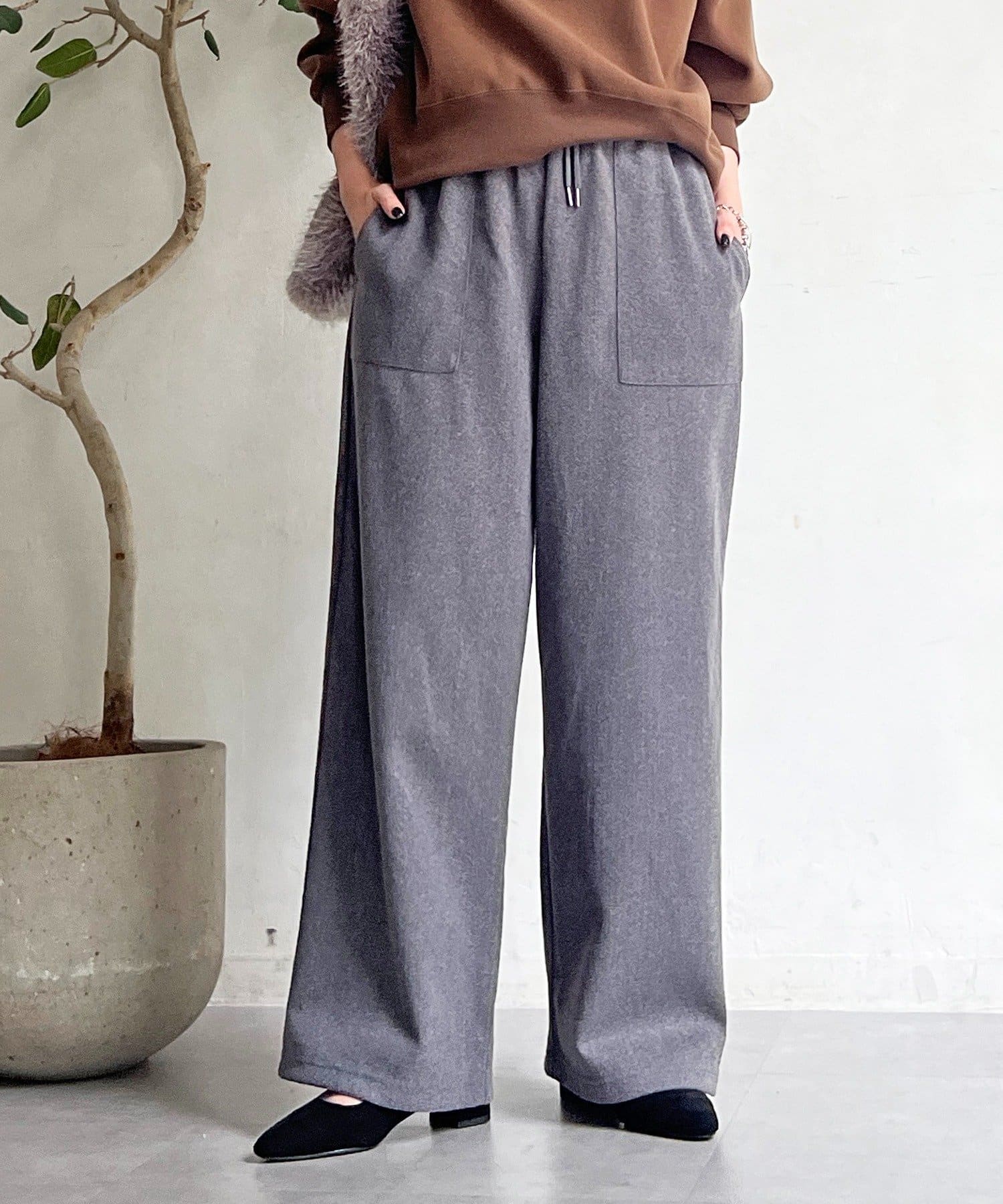 ・ウエストゴム仕様でリラクシーな温かみのあるストレートパンツ